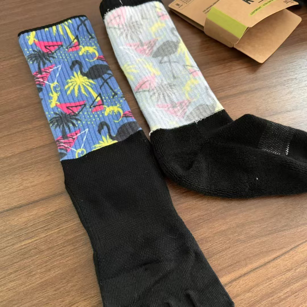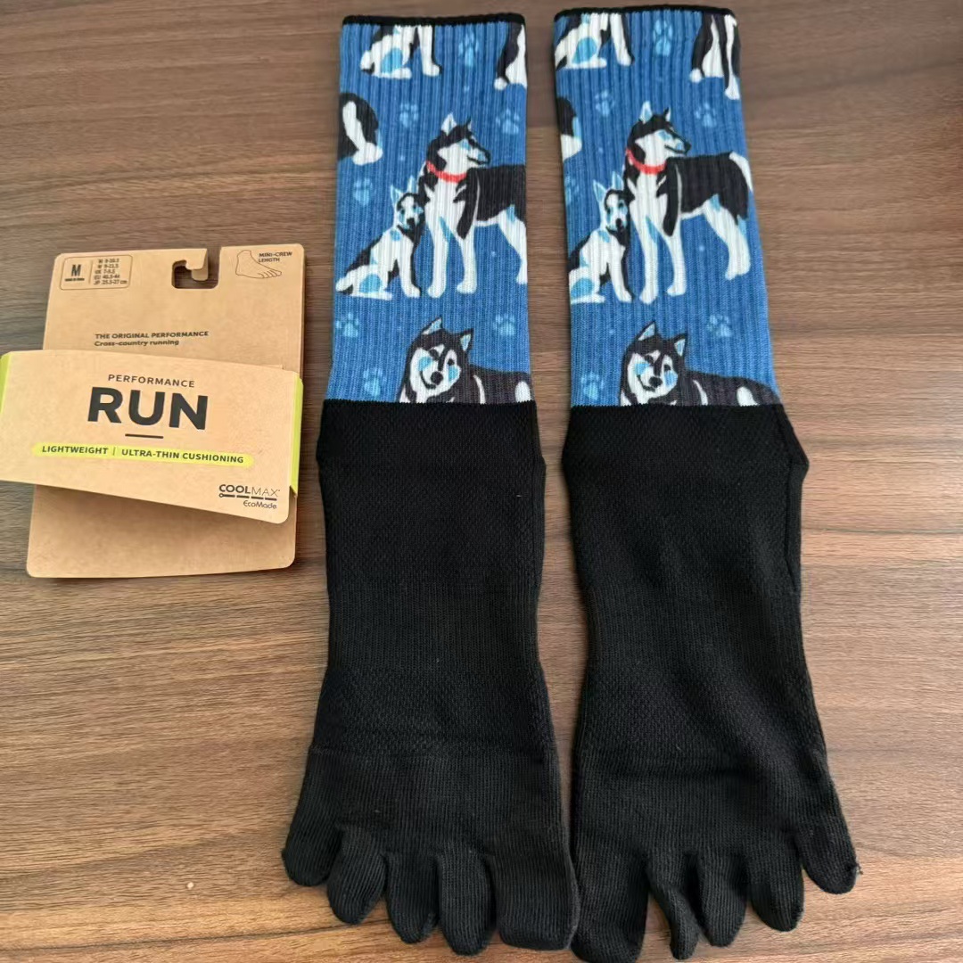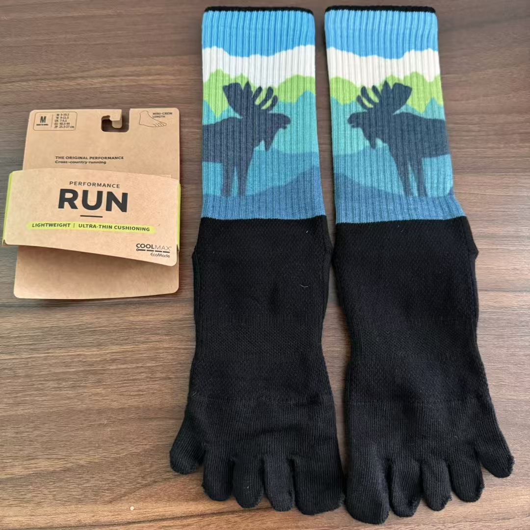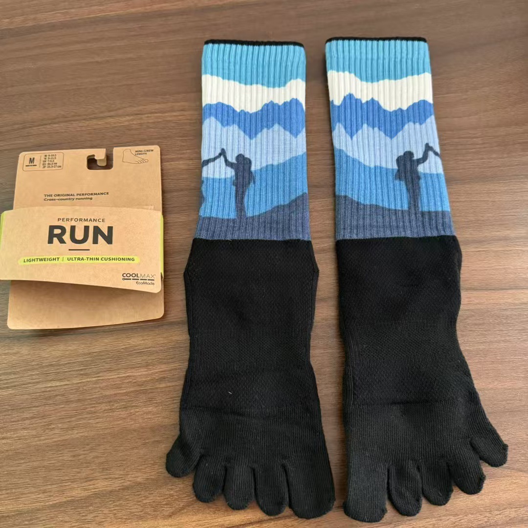 스포츠 5 손가락 양말 긴 두꺼운 쿨 맥스 야외 인쇄 타월 바닥 하이킹 마라톤 크로스 컨트리 양말