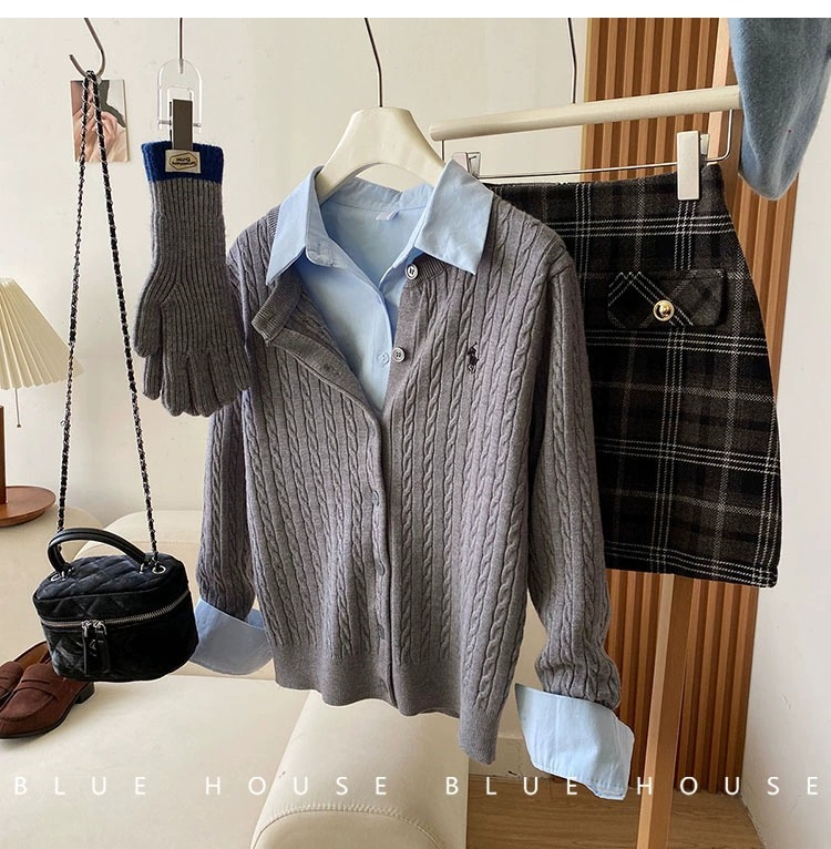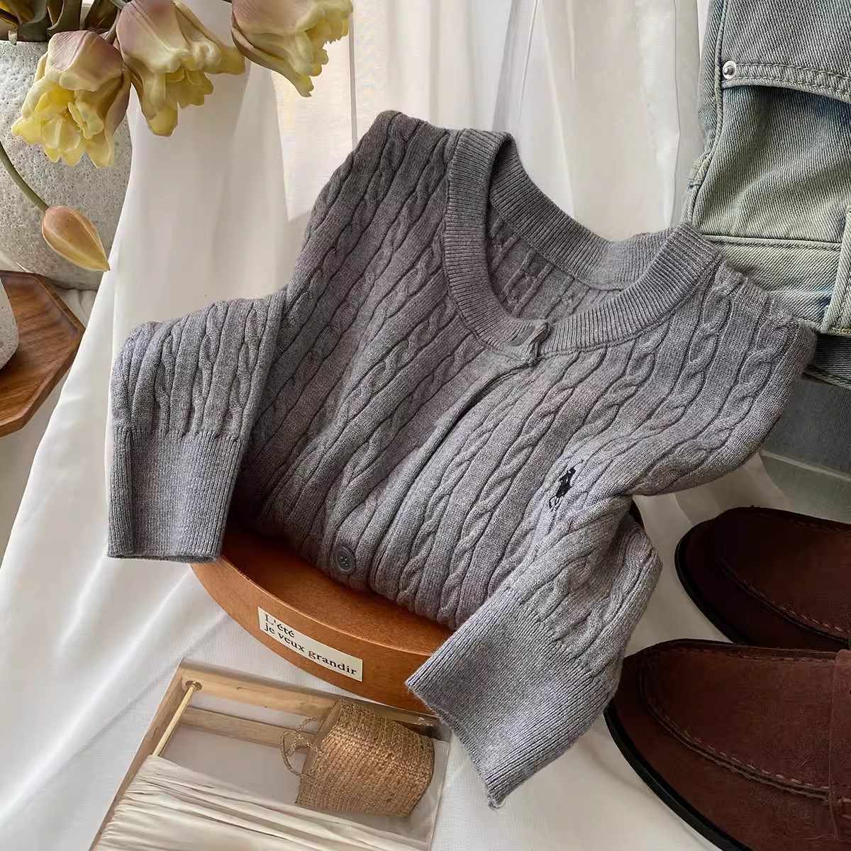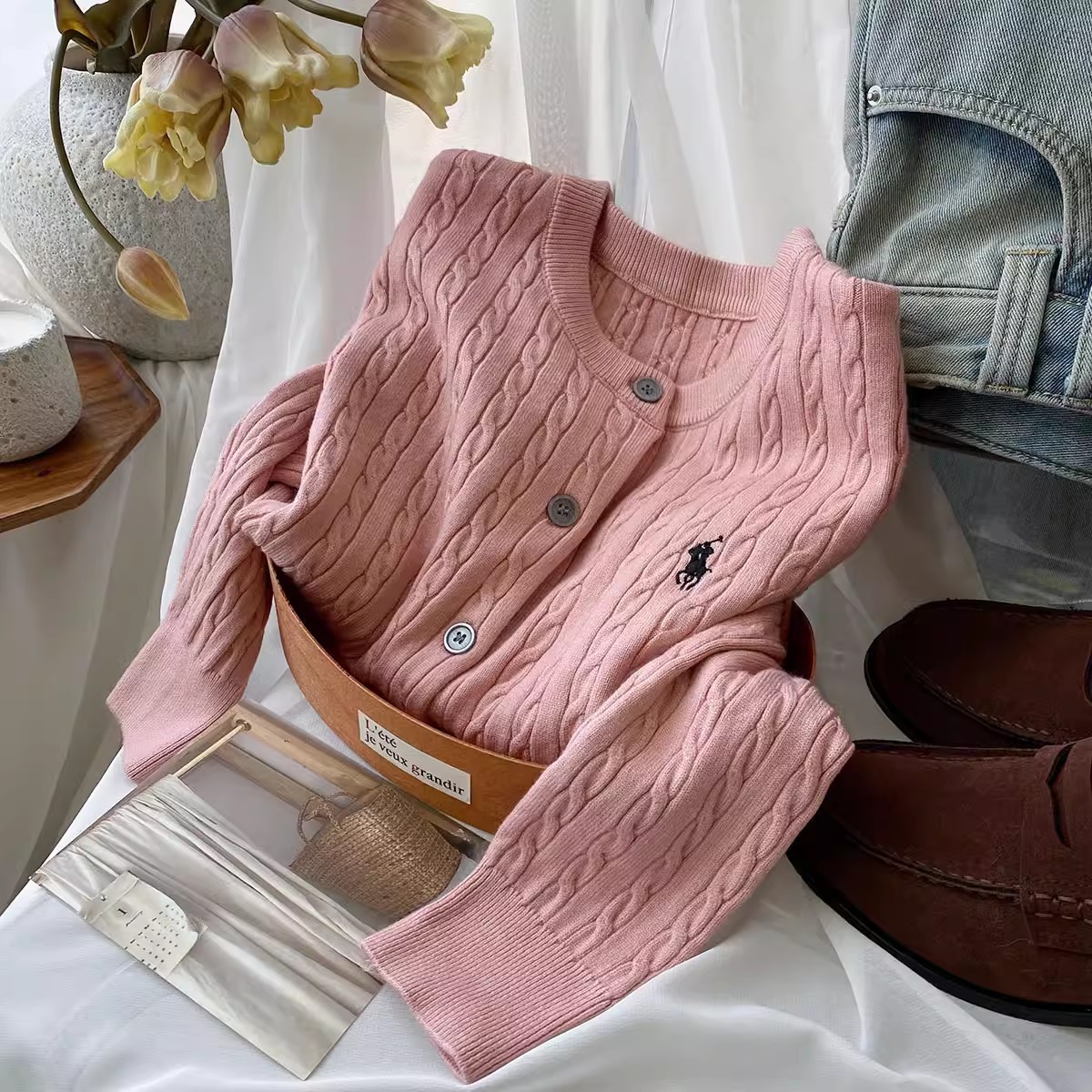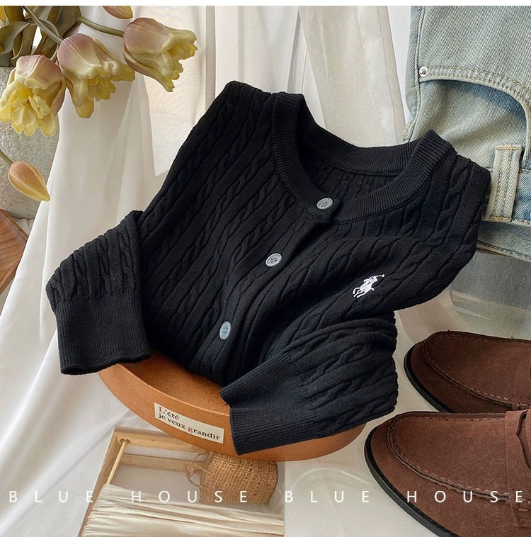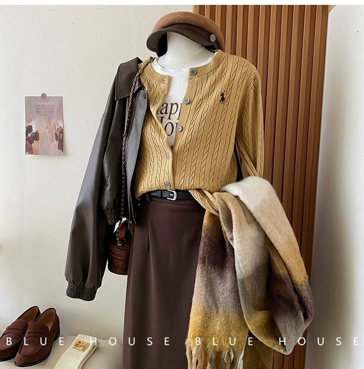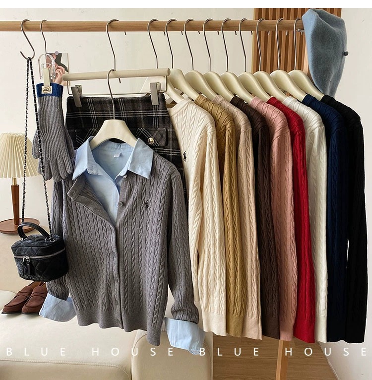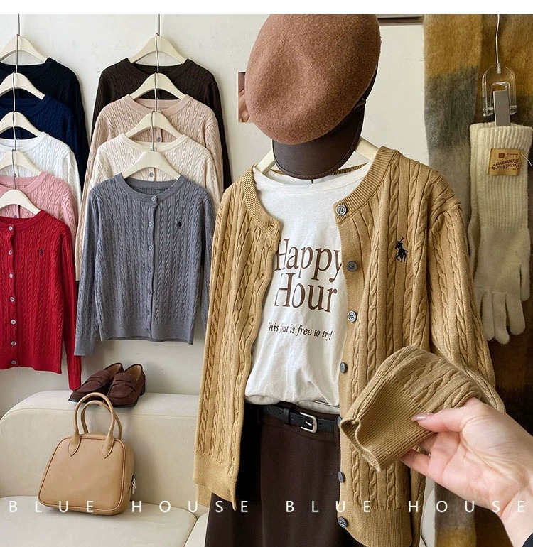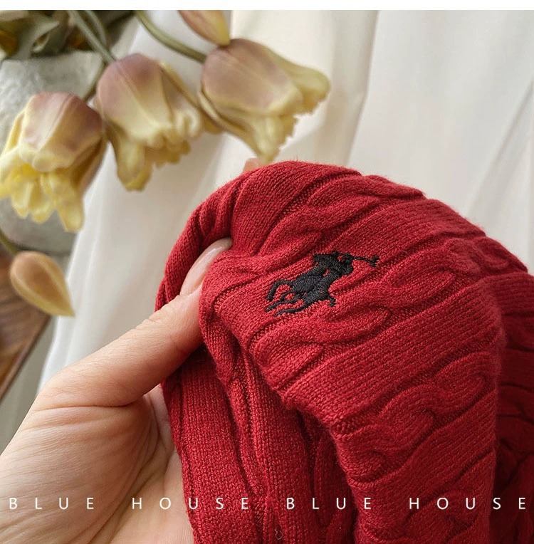 두꺼운 오래된 Qian Feng Pony 자수 트위스트 니트 카디건 여성 가을 및 겨울 초가을 빈티지 라운드 넥 레드 스웨터 재킷스토어 가기