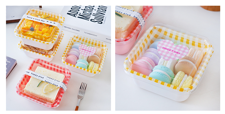 스퀘어 격자 무늬 케이크 상자 컷 티라미수 피크닉 도시락 손으로 그린 디저트 마카롱 굽기 Heng Ming