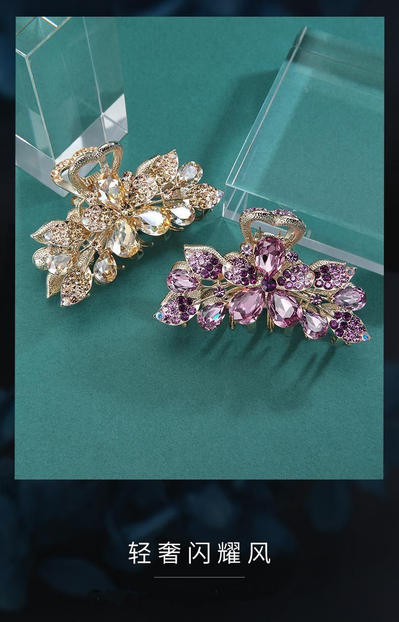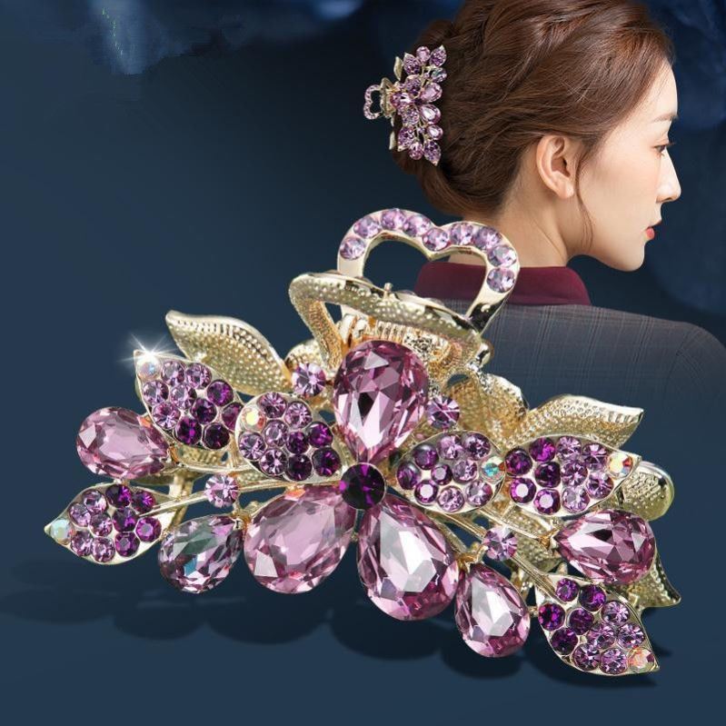 대형 클립 헤드웨어 여성 탑 클립 한국 빛나는 라인스톤 어머니 헤어핀 여성 클립 머리 매달려 비문스토어 가기
