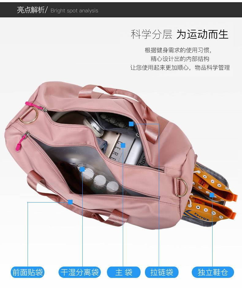 스포츠 가방 여자 체육관 가방 건조하고 젖은 분리 수영 훈련 가방 수하물 가방 핸드백 남자의 유행 어깨 여행 Heng Ming스토어 가기
