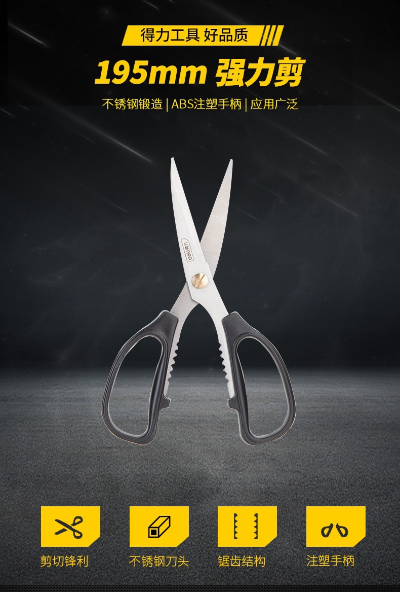 델리 (델리) 홈 강한 가위 주방 스테인레스 스틸 다기능 가위 민간 가위 대형 학생 수제스토어 가기