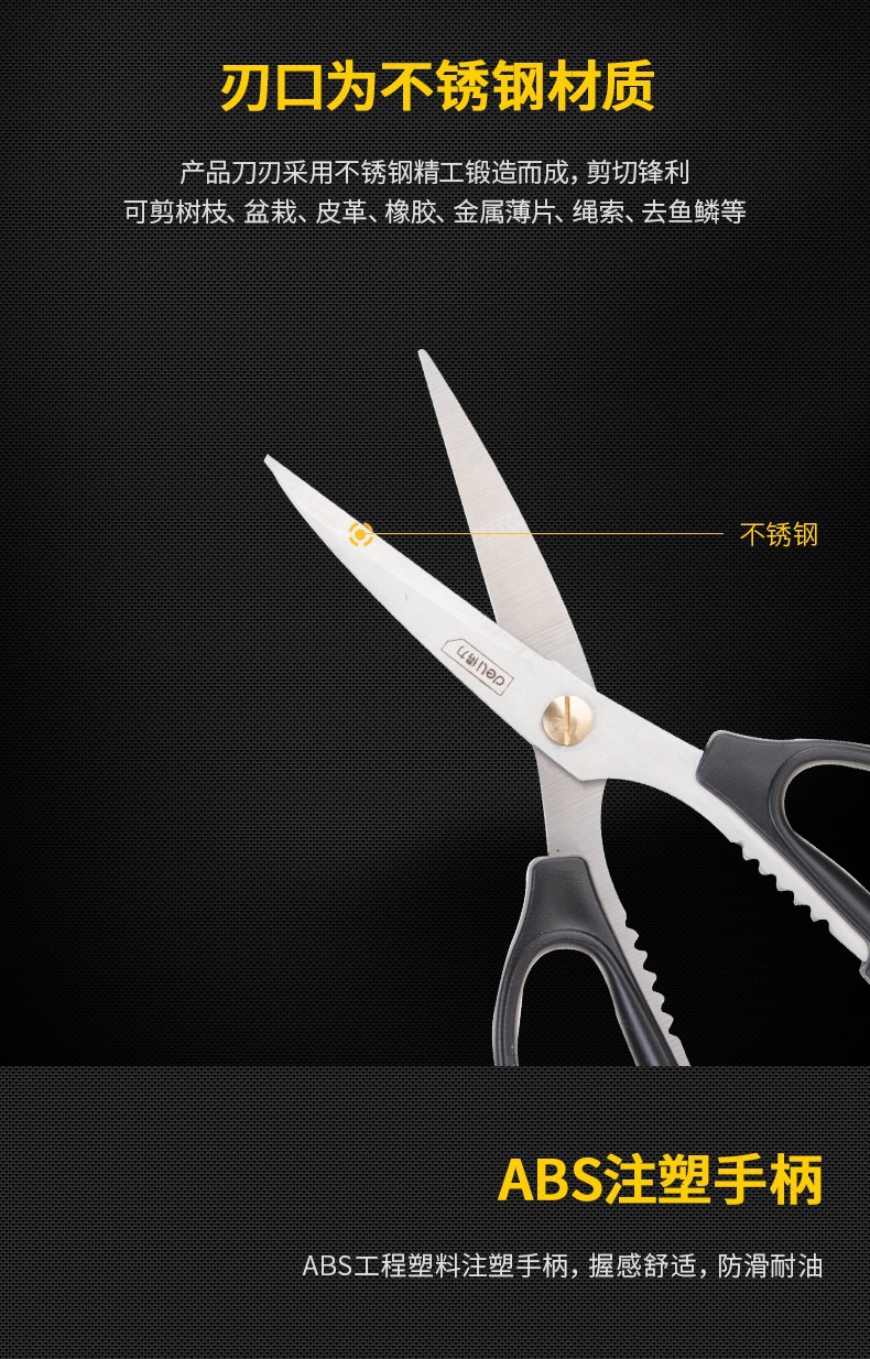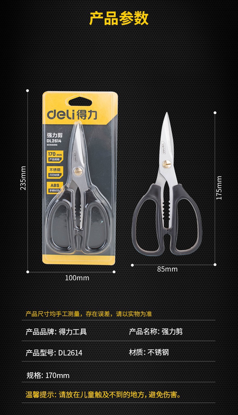 델리 (델리) 홈 강한 가위 주방 스테인레스 스틸 다기능 가위 민간 가위 대형 학생 수제