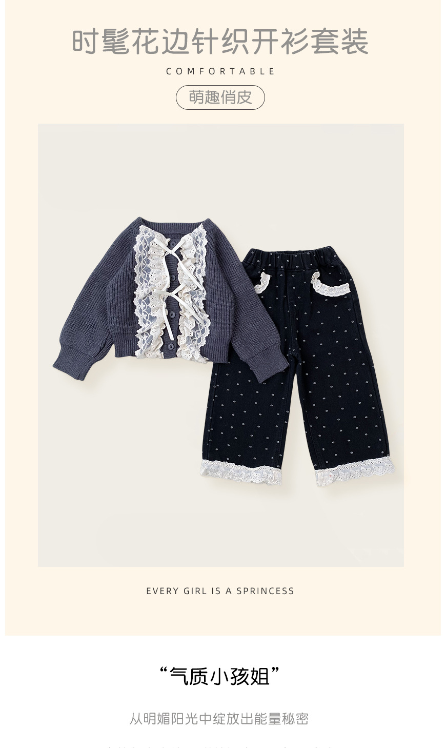 Cherrycoco Girl의 24 가을 새로운 스타일 레이스 니트 카디건 플로라 청바지 투피스 세트