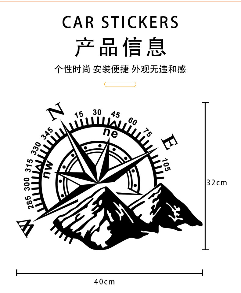 산 후드 바디 스티커 산 나침반 내비게이션 자동차 스티커 나침반 자동차 도어 스티커가 같은 떨림