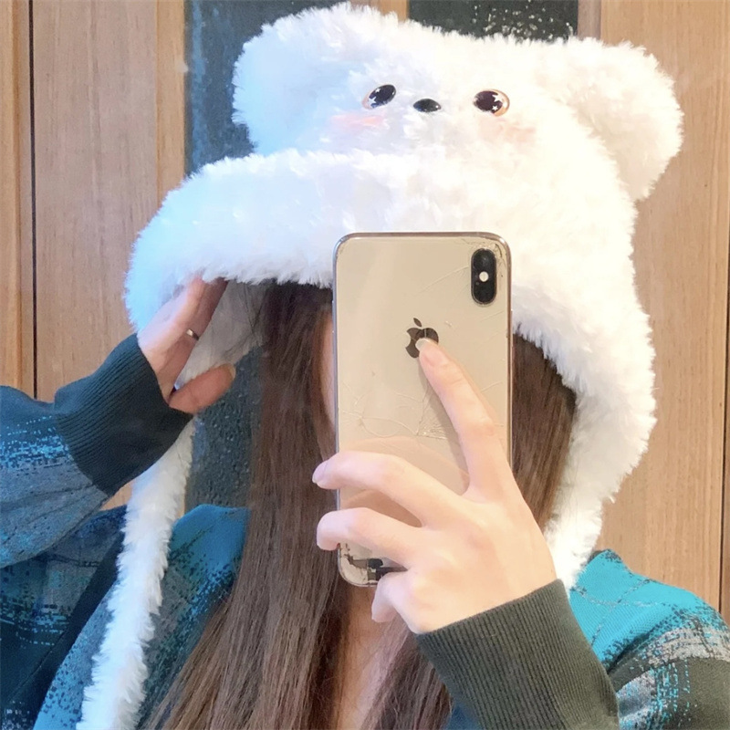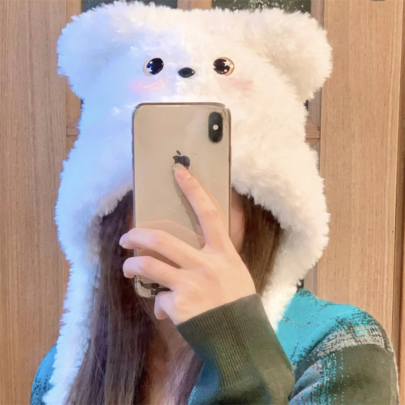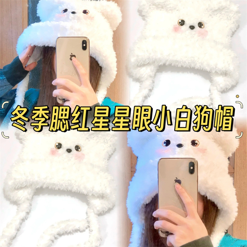 가을과 겨울 스타 눈 블러시 강아지 머리 모자 사이클링 방진 기모 귀 보호 니트 모자 모자스토어 가기