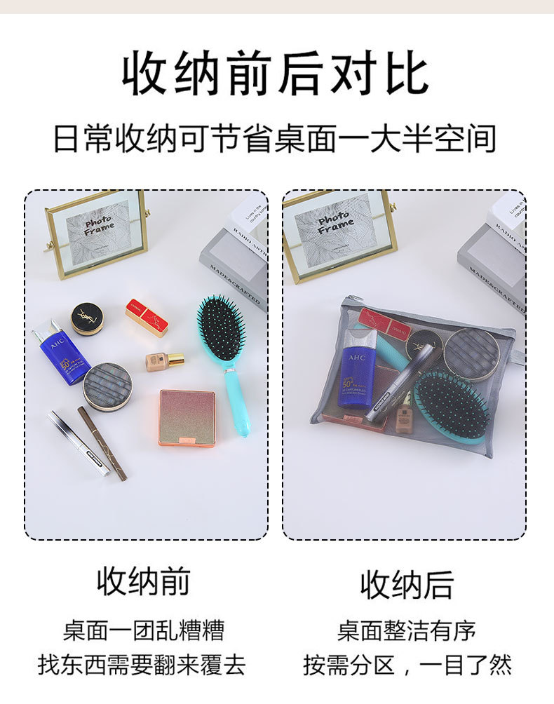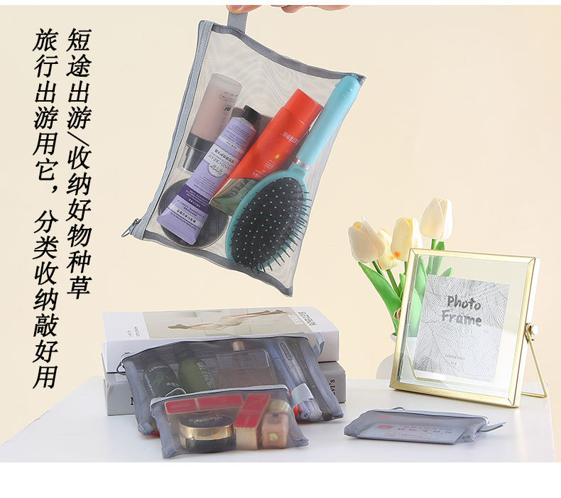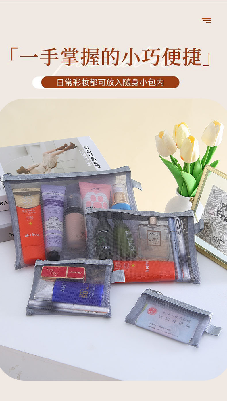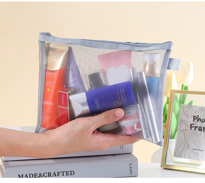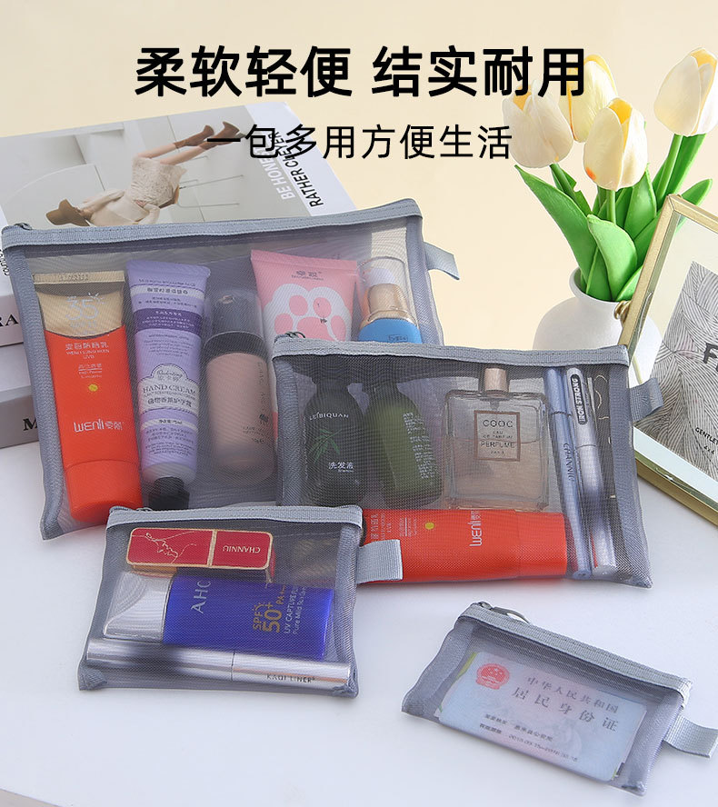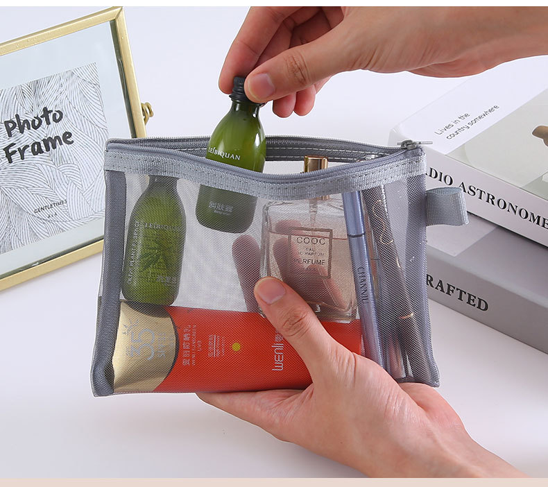 새로운 간단한 한국 스타일 메쉬 메이크업 가방 립스틱 에어 쿠션 내부 가방 대용량 휴대용 여행 운반 보관 가방