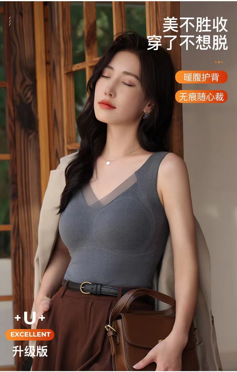 그래 핀 벨벳 열 속옷 여성의 착용 없는 브래지어 고정 컵 아름다운 백베이스 코트 겨울 열 조끼 8803스토어 가기