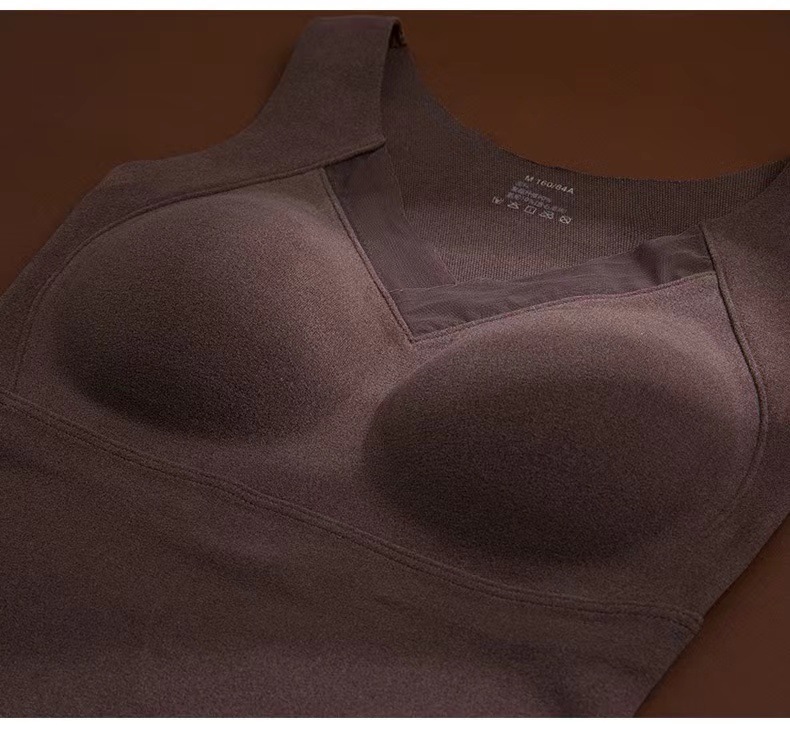 그래 핀 벨벳 열 속옷 여성의 착용 없는 브래지어 고정 컵 아름다운 백베이스 코트 겨울 열 조끼 8803