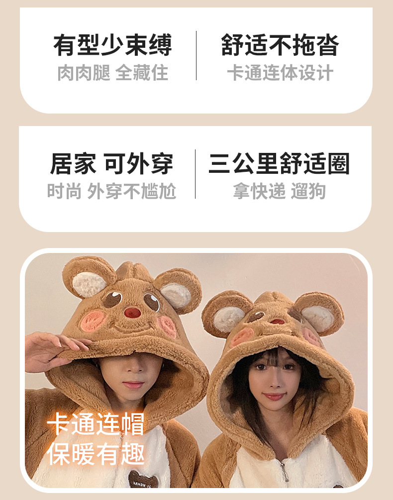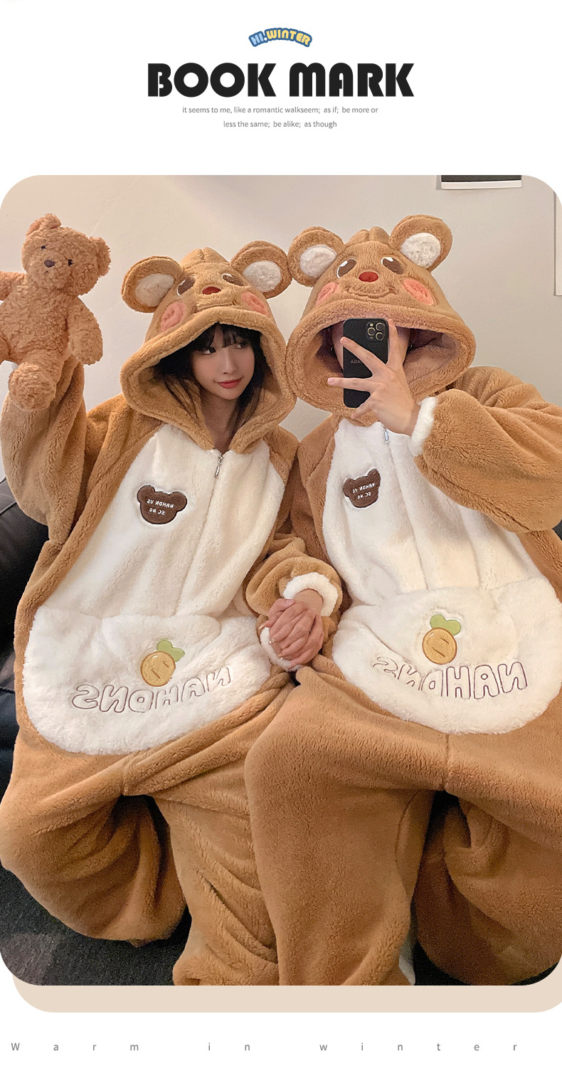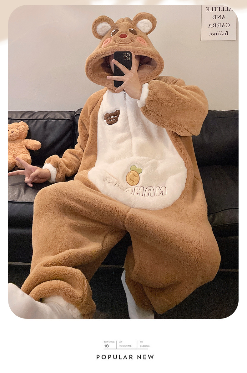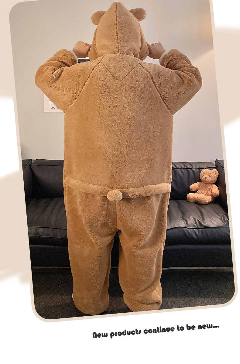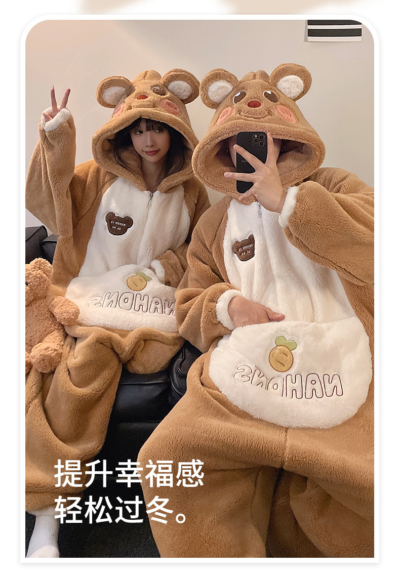 커플 잠옷 여성 패딩 산호 양털 가을과 겨울에 결합 된 다크 브라운 곰 200kg 플러스 사이즈 느슨한 남성 매일 집 옷