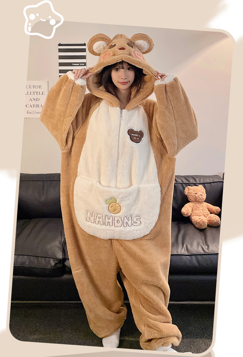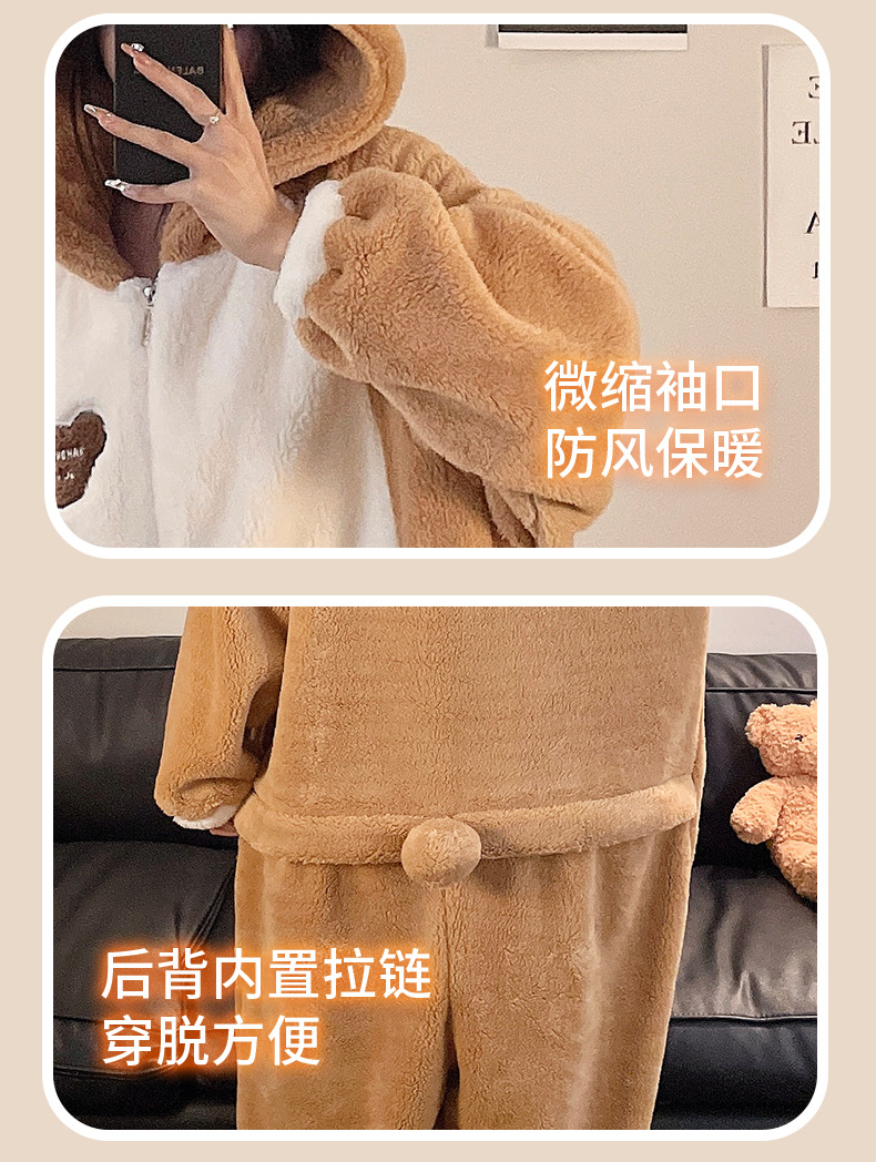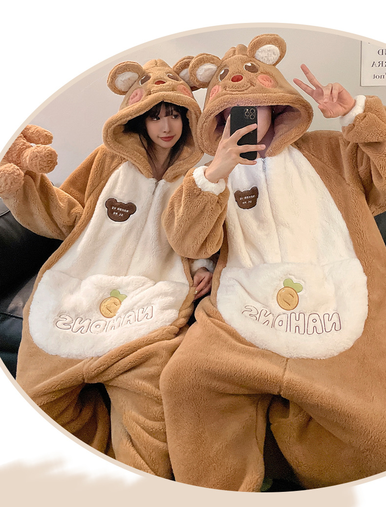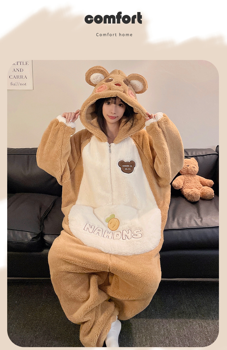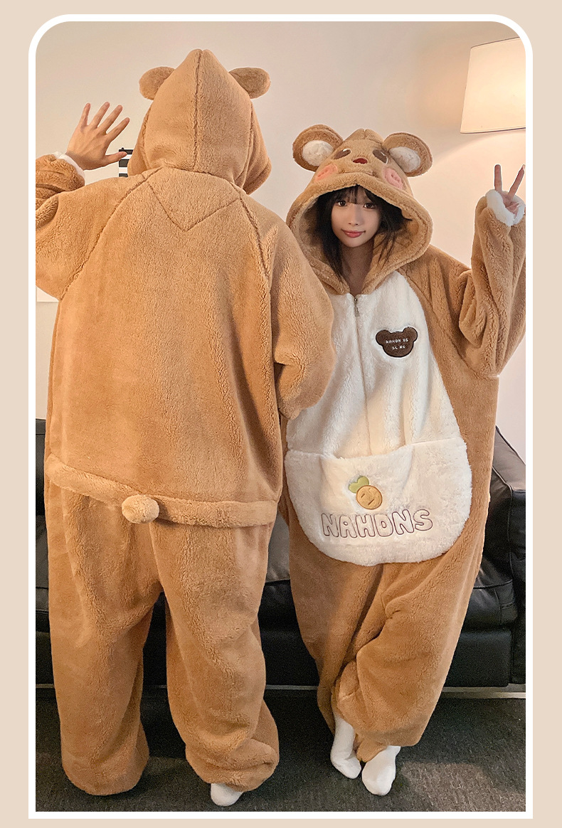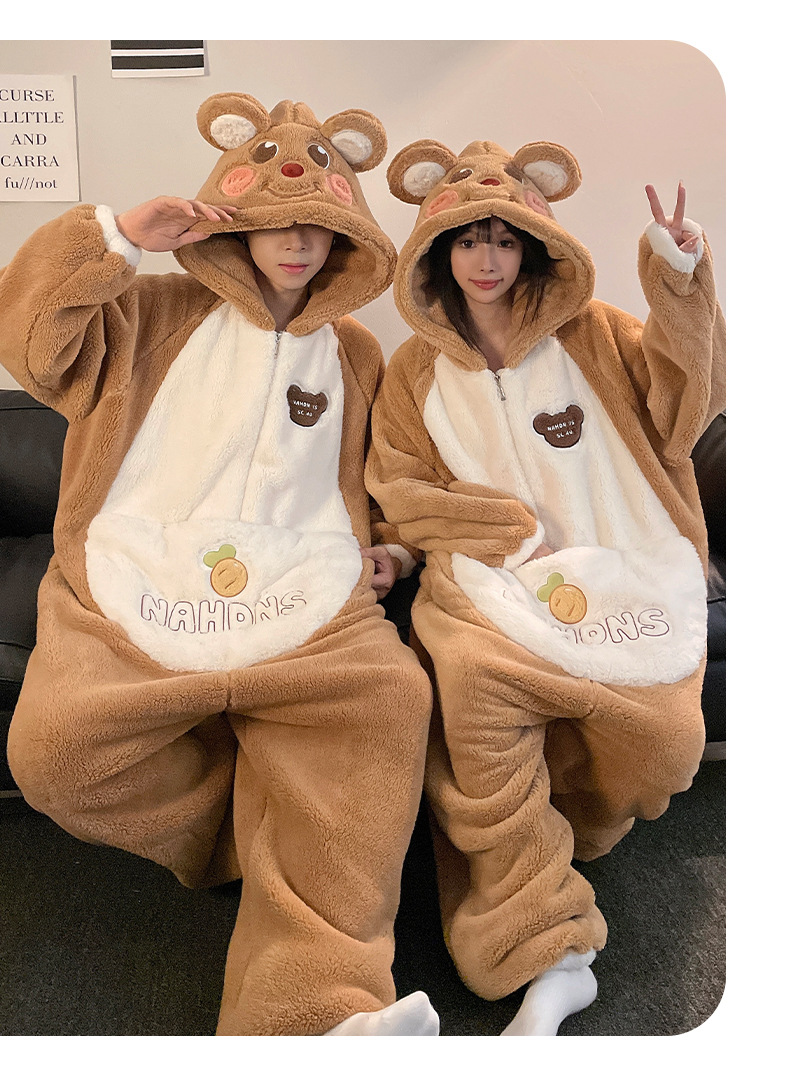 커플 잠옷 여성 패딩 산호 양털 가을과 겨울에 결합 된 다크 브라운 곰 200kg 플러스 사이즈 느슨한 남성 매일 집 옷