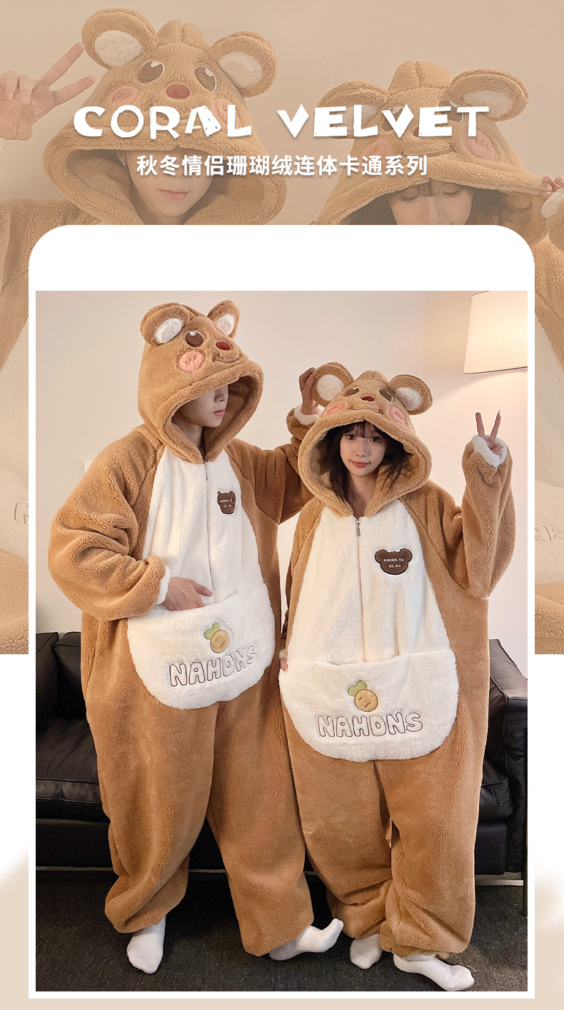 커플 잠옷 여성 패딩 산호 양털 가을과 겨울에 결합 된 다크 브라운 곰 200kg 플러스 사이즈 느슨한 남성 매일 집 옷스토어 가기