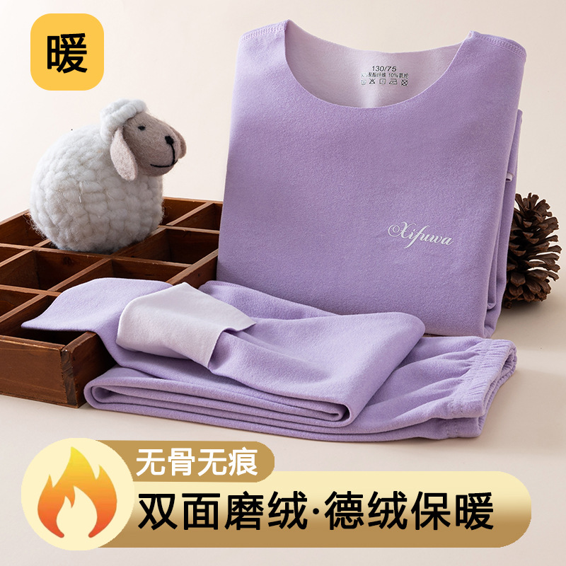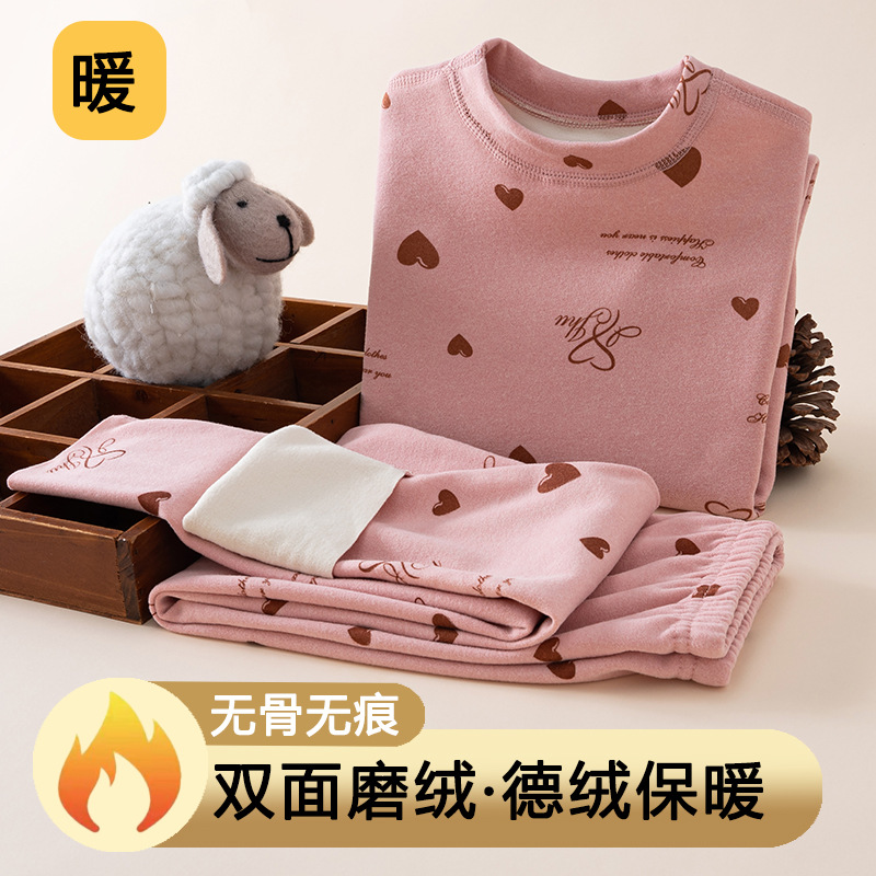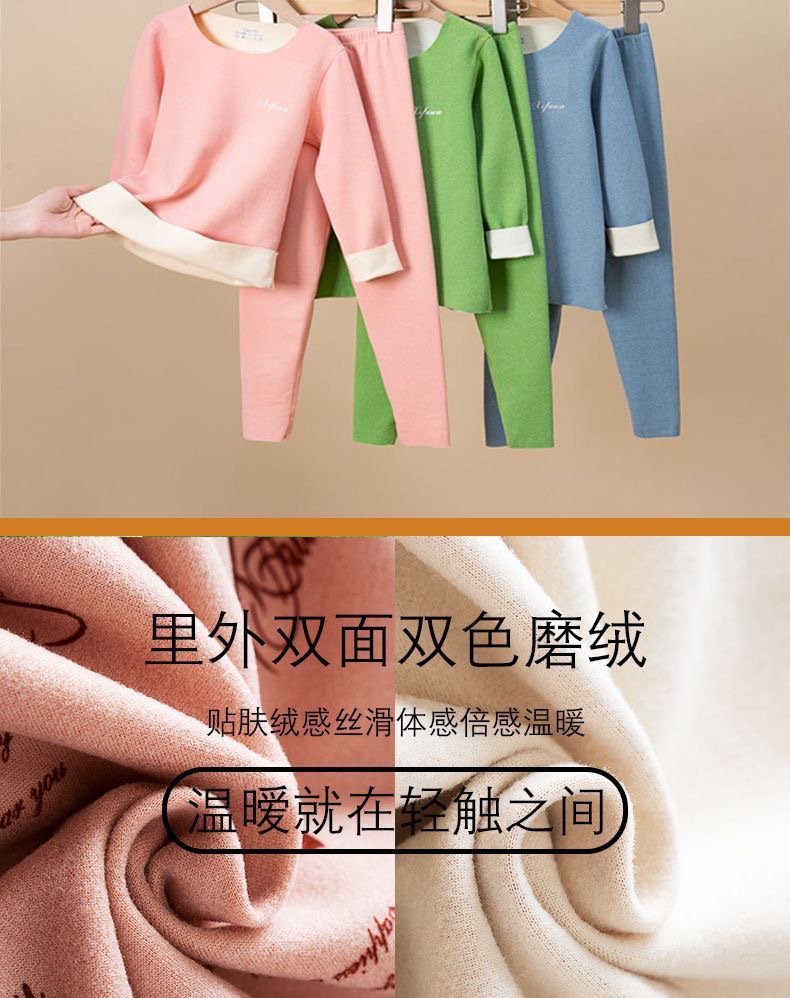 남학생과 여학생의 따뜻한 세트 벨벳 속옷 어린이 가을 옷과 바지 큰 어린이 소녀와 소년 겨울 기모 두껍게