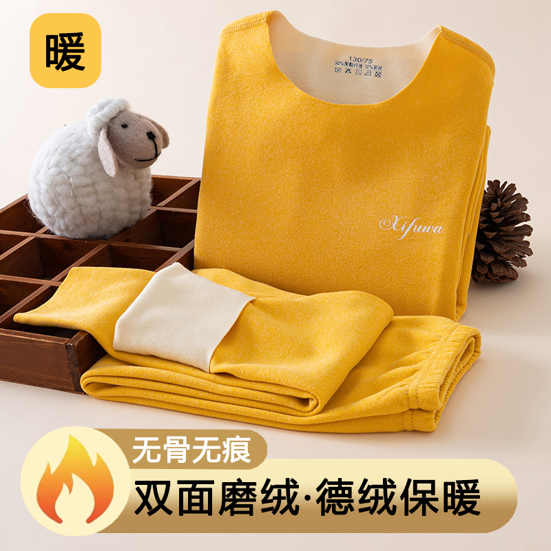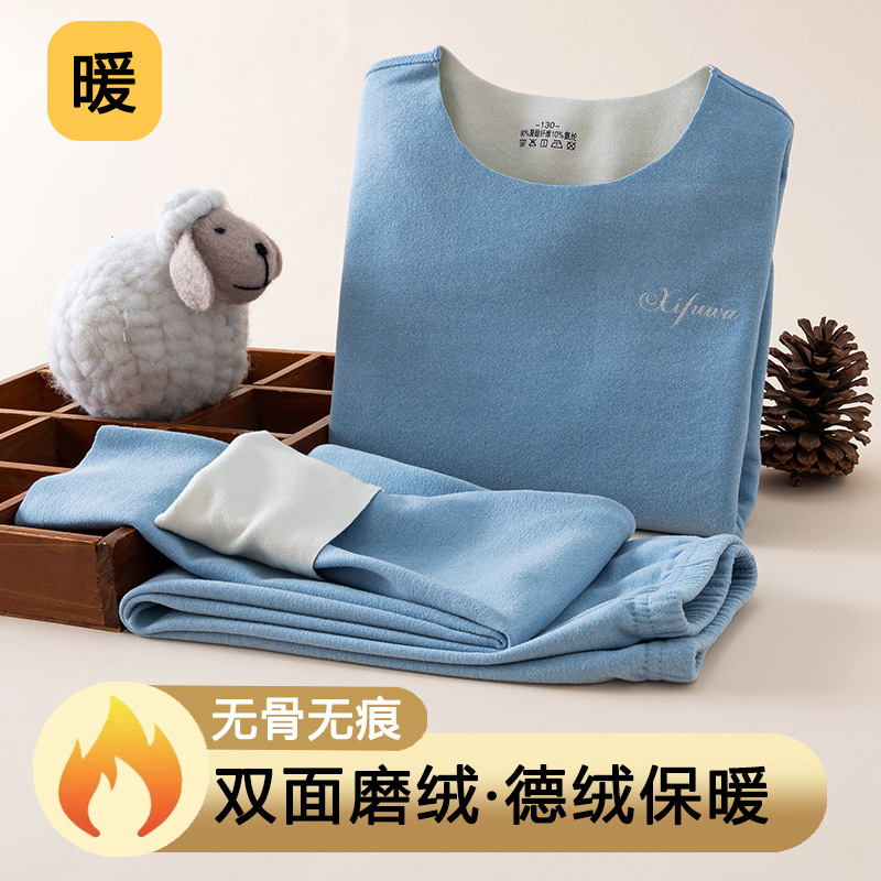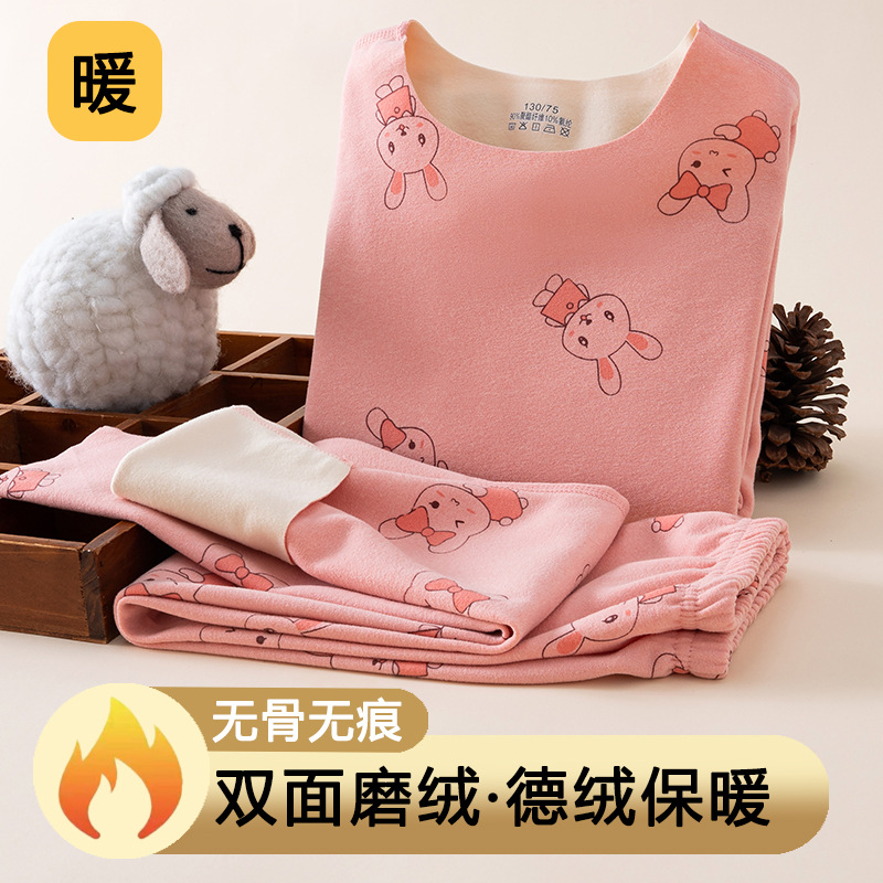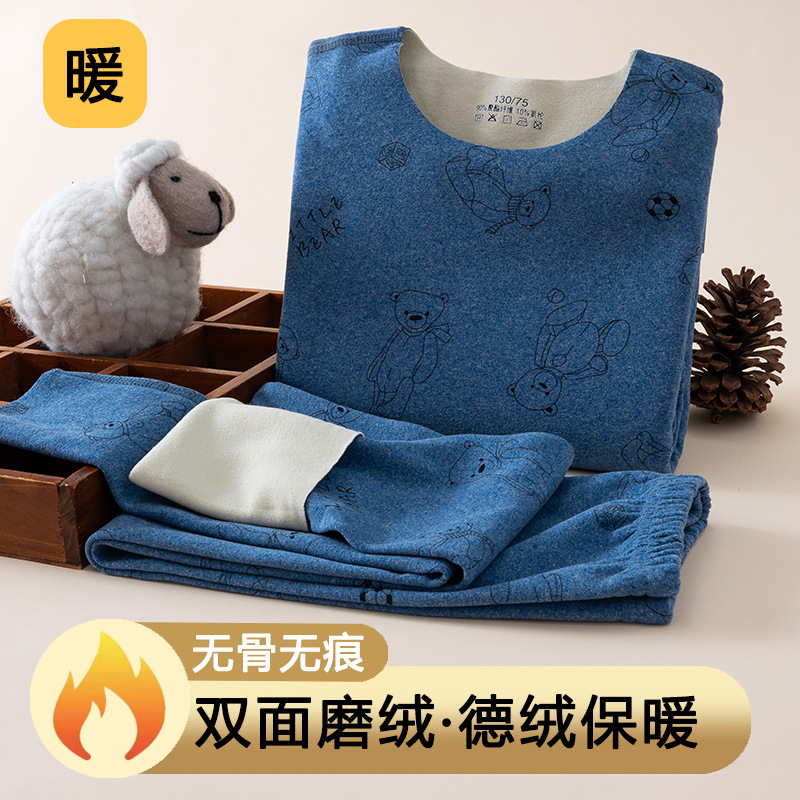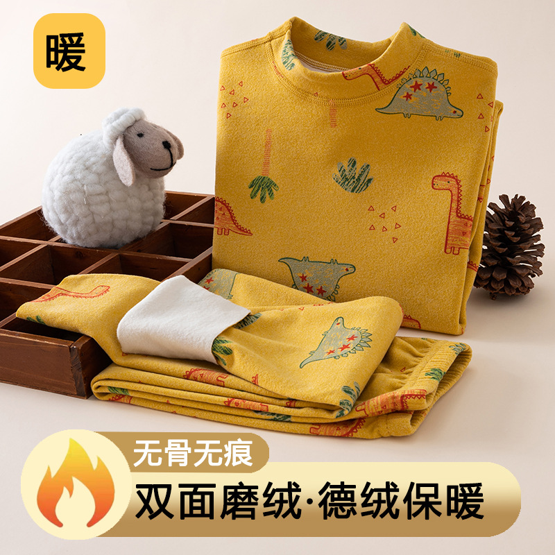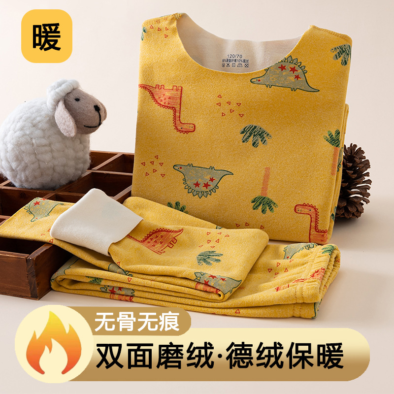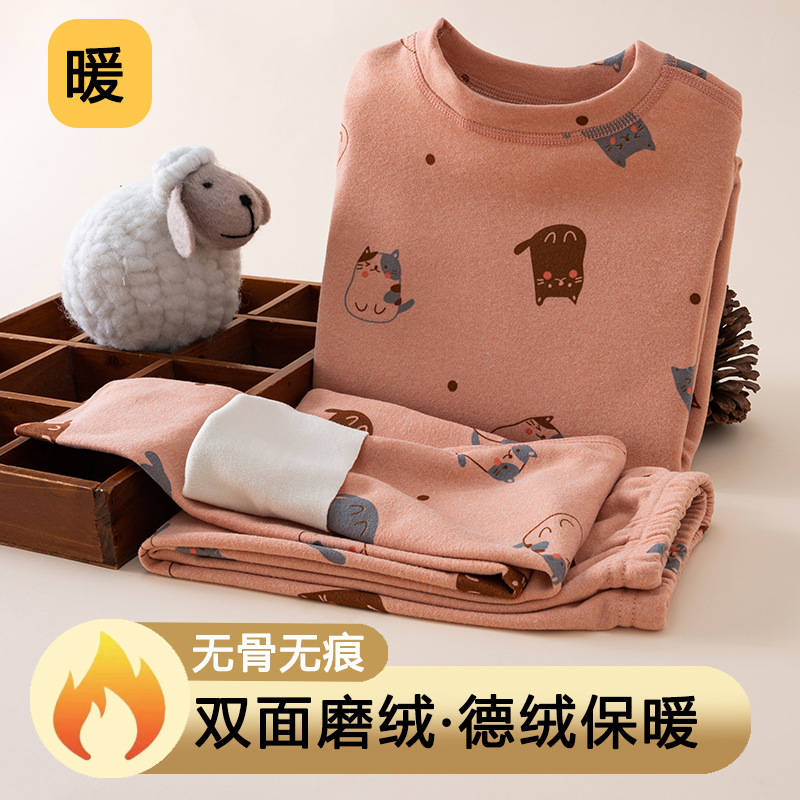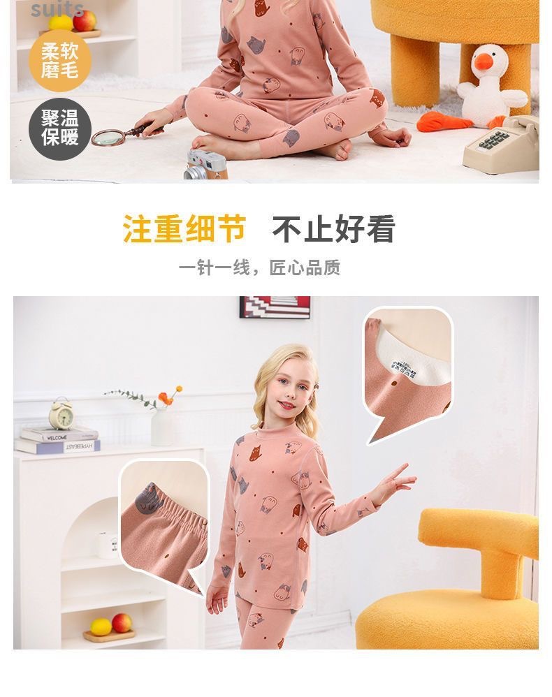 남학생과 여학생의 따뜻한 세트 벨벳 속옷 어린이 가을 옷과 바지 큰 어린이 소녀와 소년 겨울 기모 두껍게스토어 가기