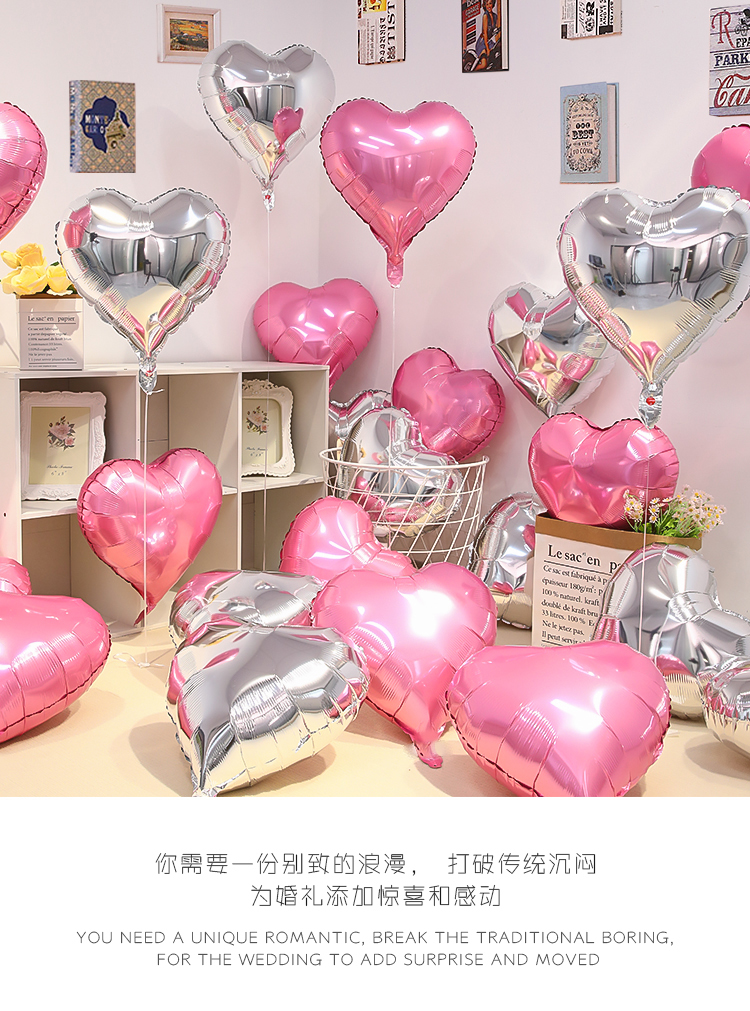 사랑 모양의 핑크 실버 낭만적 인 생일 풍선을 떠있는 분위기의 감각을 표현하기 위해 빈 장식 장면 제안 배열 Ji Heng Ming스토어 가기
