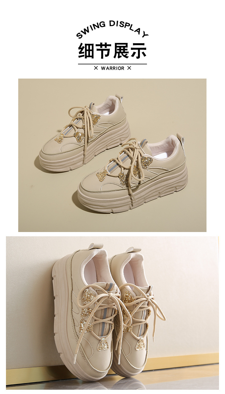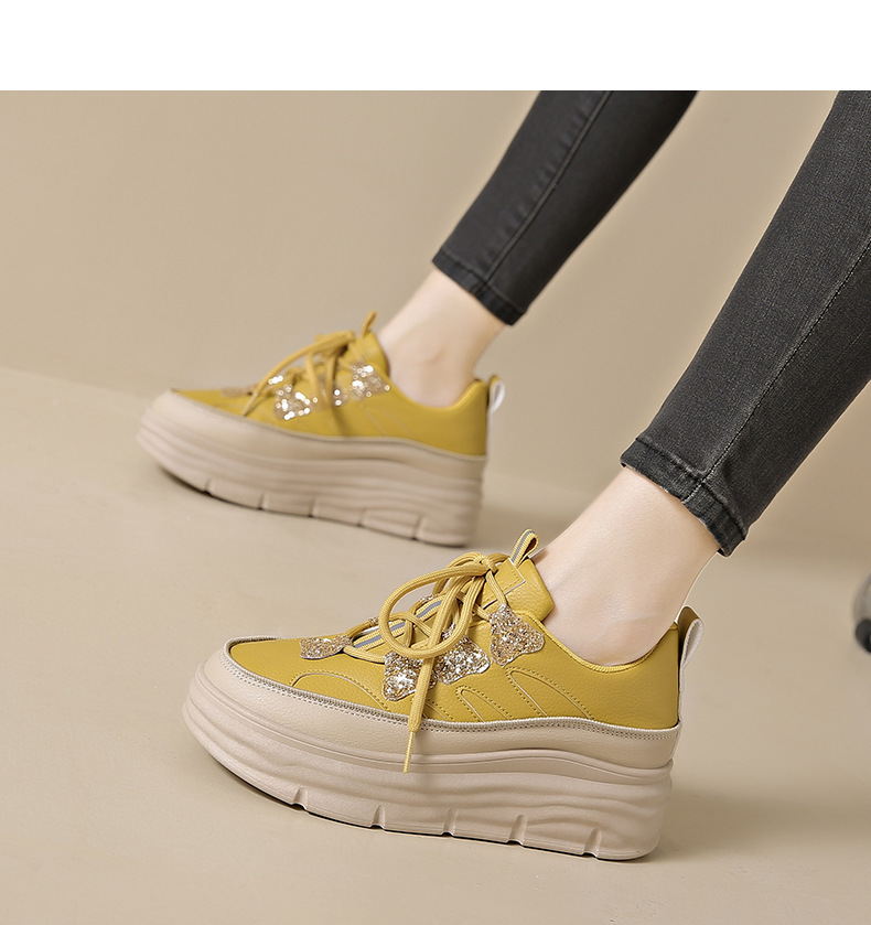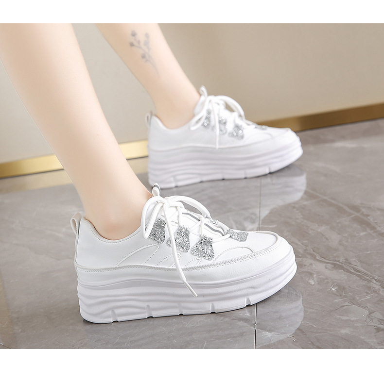 W3615 새로운 스타일 보드 신발 Sequin 2024 가을 유행 흰색 신발 두꺼운 단독 내부 높이 증가 패션 캐주얼 신발 학생 신발스토어 가기
