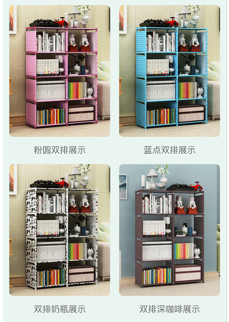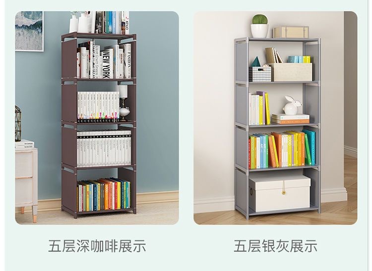 책장 선반 간단한 이중 행 다층 바닥형 철제 조립 책장 선반 학생 어린이용 간단한 책장