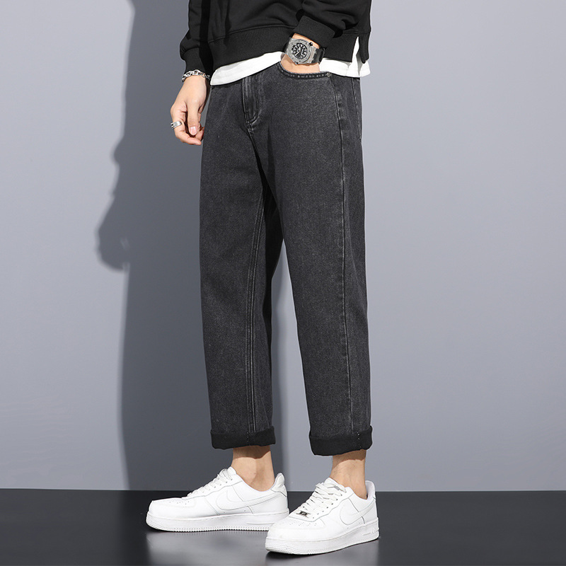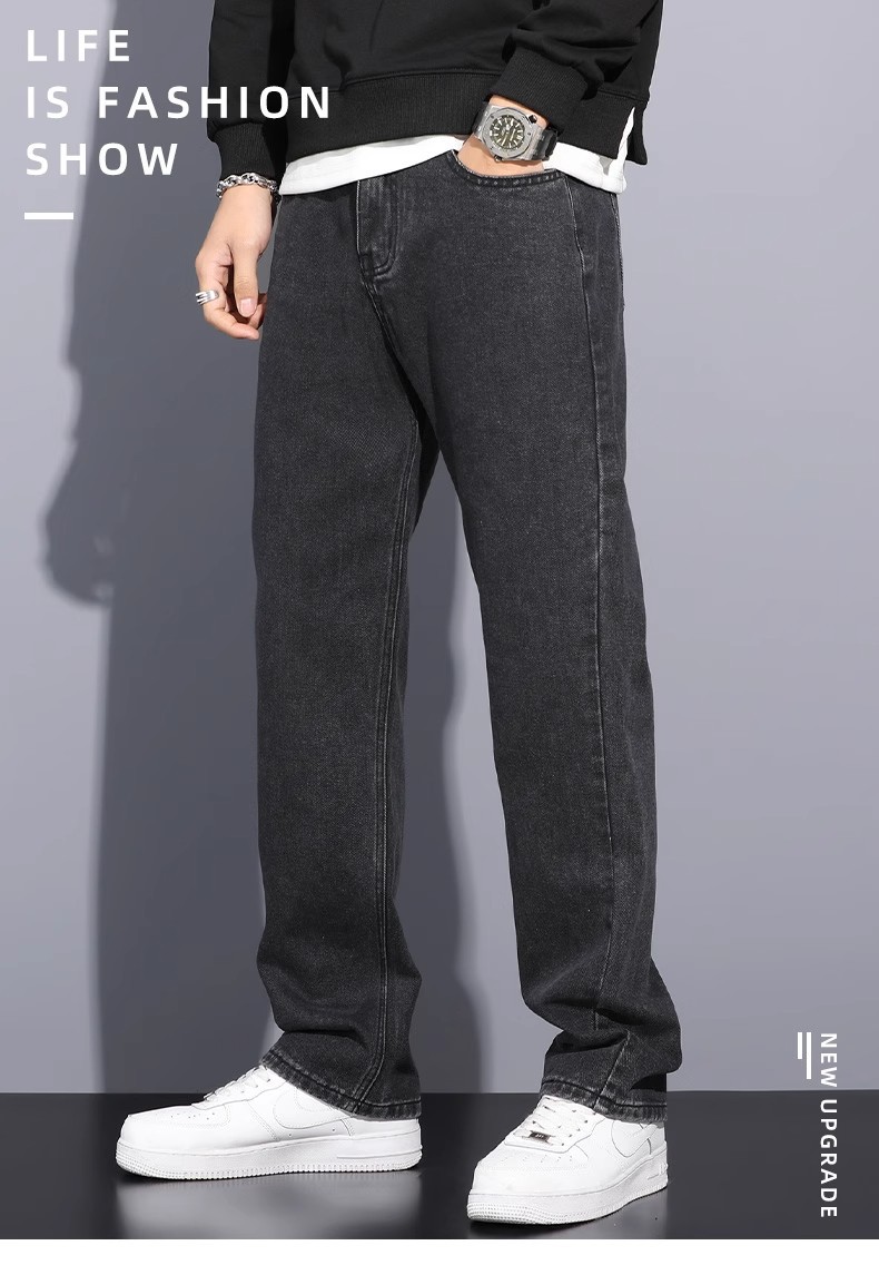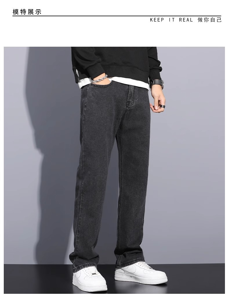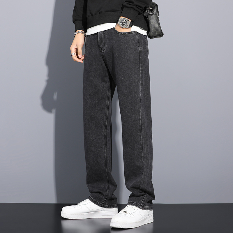 가을과 겨울 새로운 검은 회색 청바지 남자의 느슨한 스트레이트 바지 하이 스트리트 강아지 잘 생긴 키 큰 다리 바지 남자스토어 가기