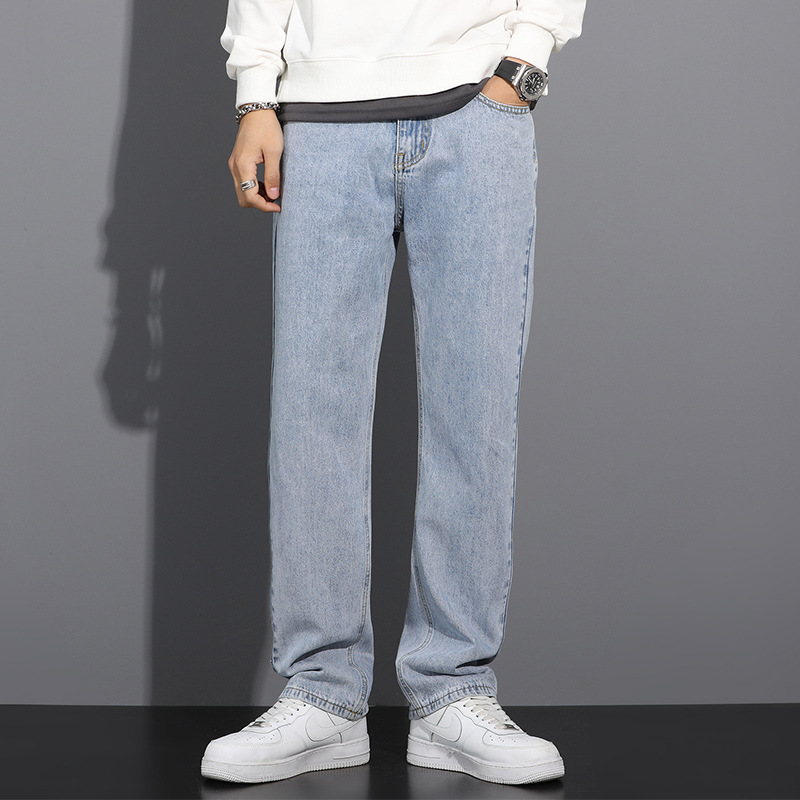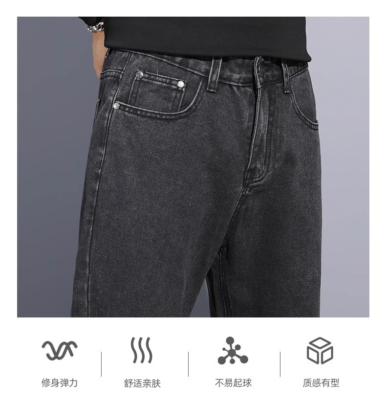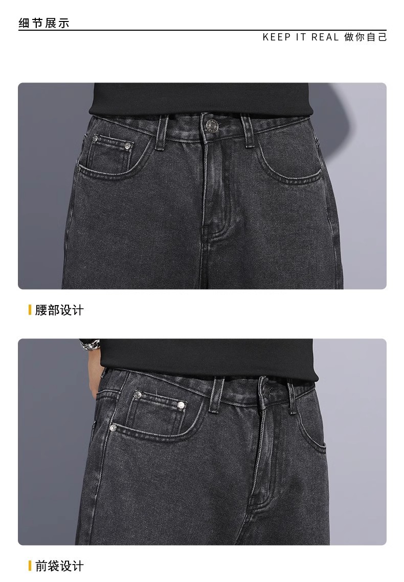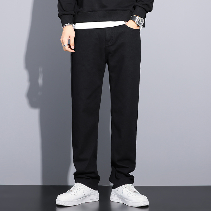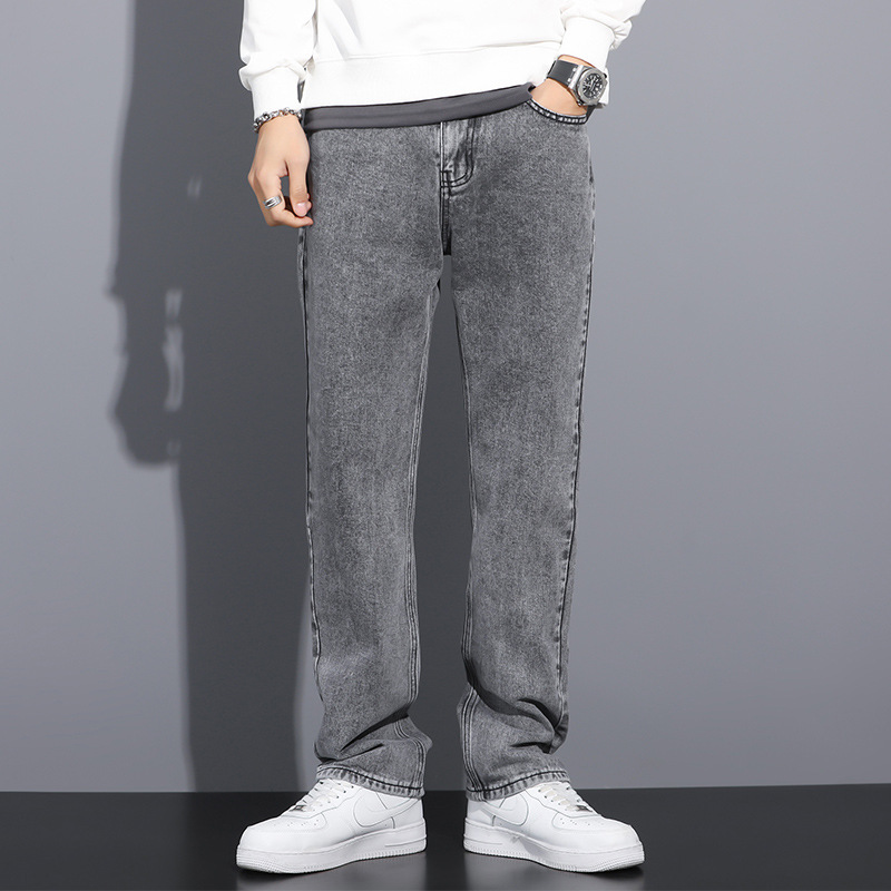가을과 겨울 새로운 검은 회색 청바지 남자의 느슨한 스트레이트 바지 하이 스트리트 강아지 잘 생긴 키 큰 다리 바지 남자스토어 가기