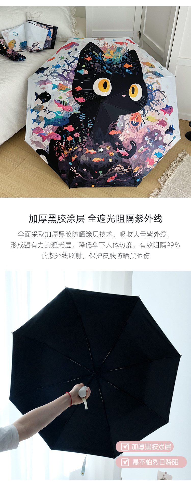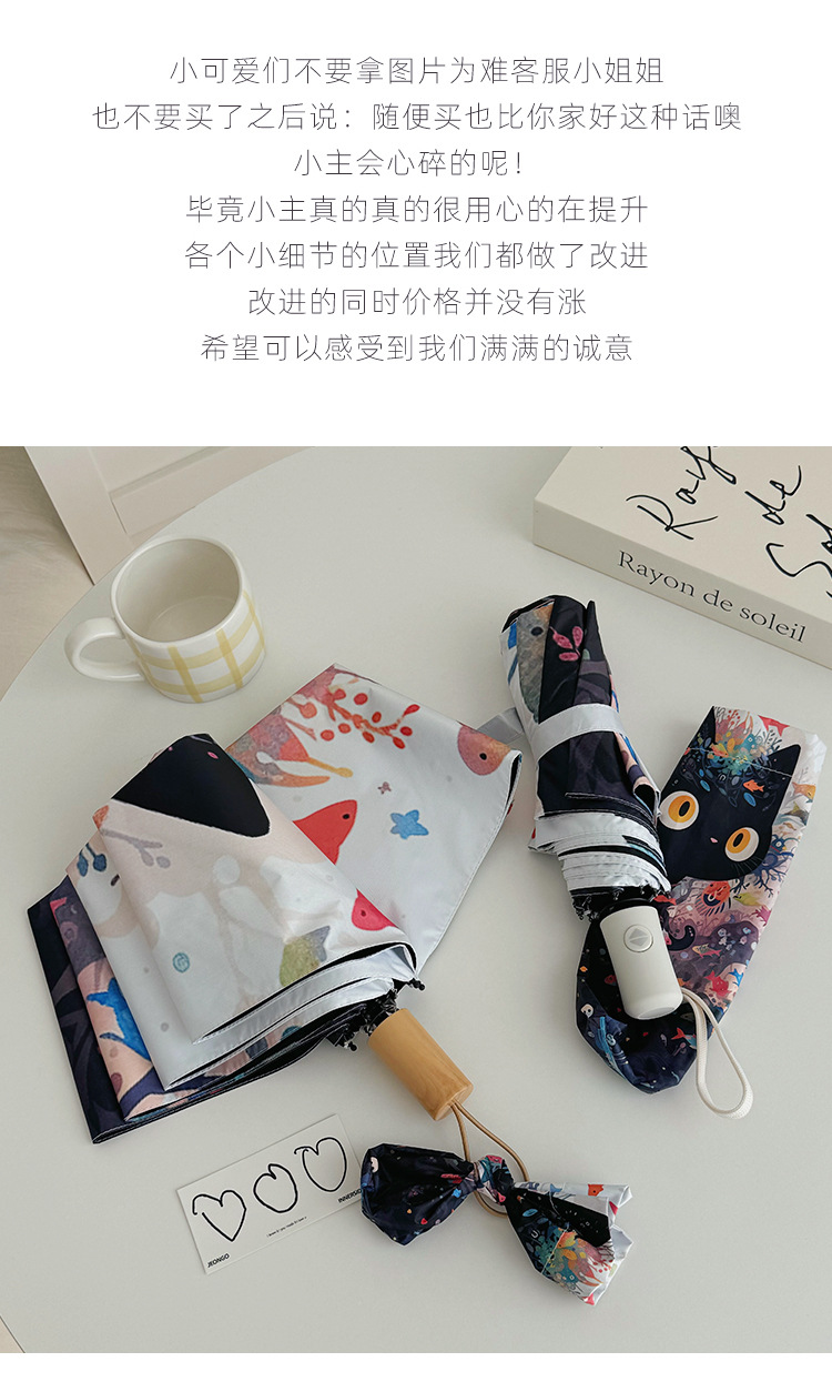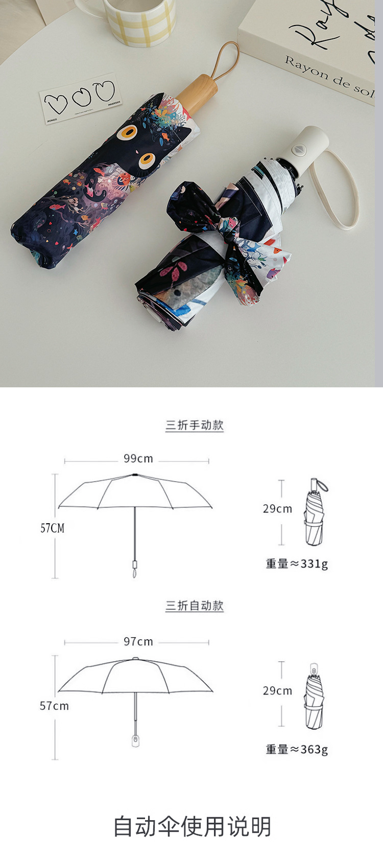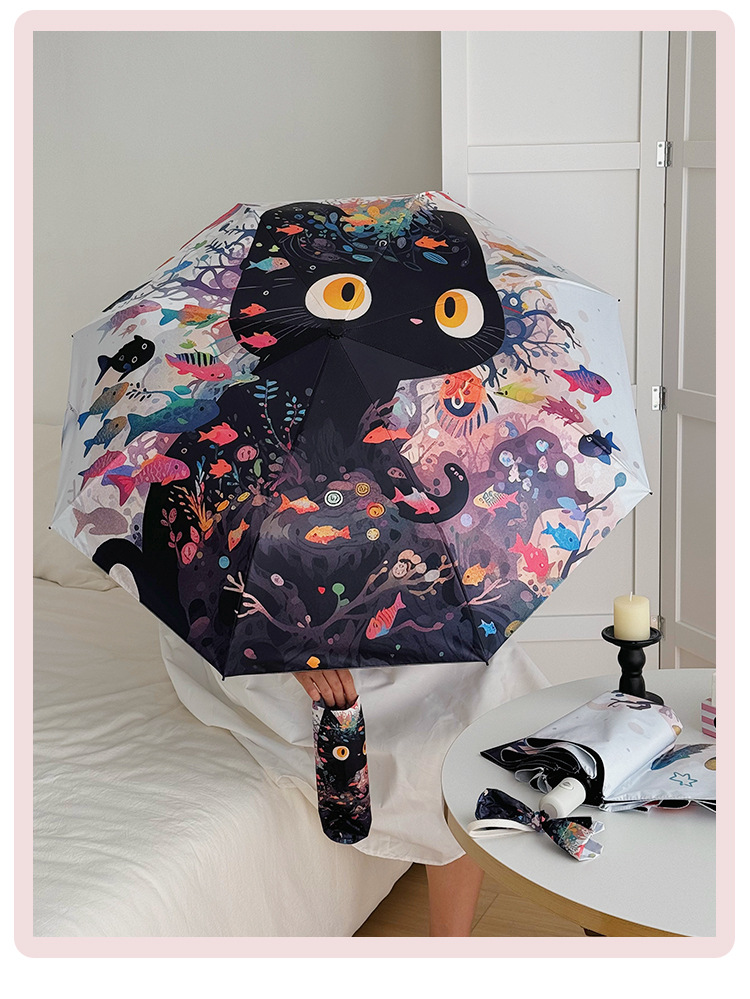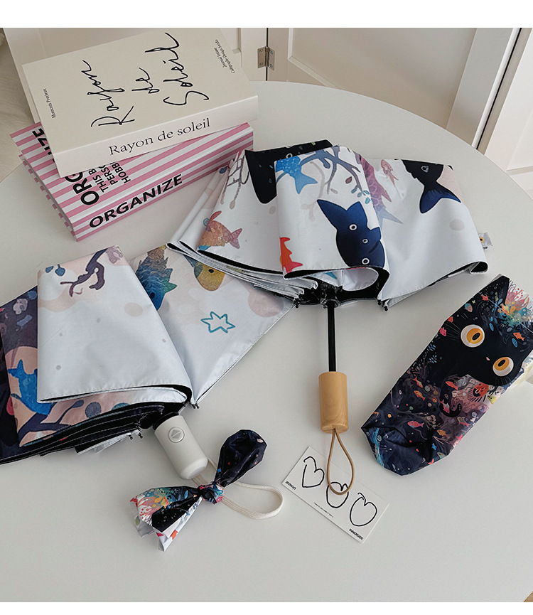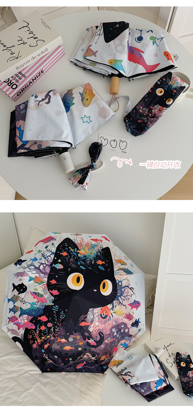 귀여운 만화 고양이 접히는 우산 태양 보호 UV 보호 검은 우산 맑고 비 이중 목적 자동 양산 우산스토어 가기