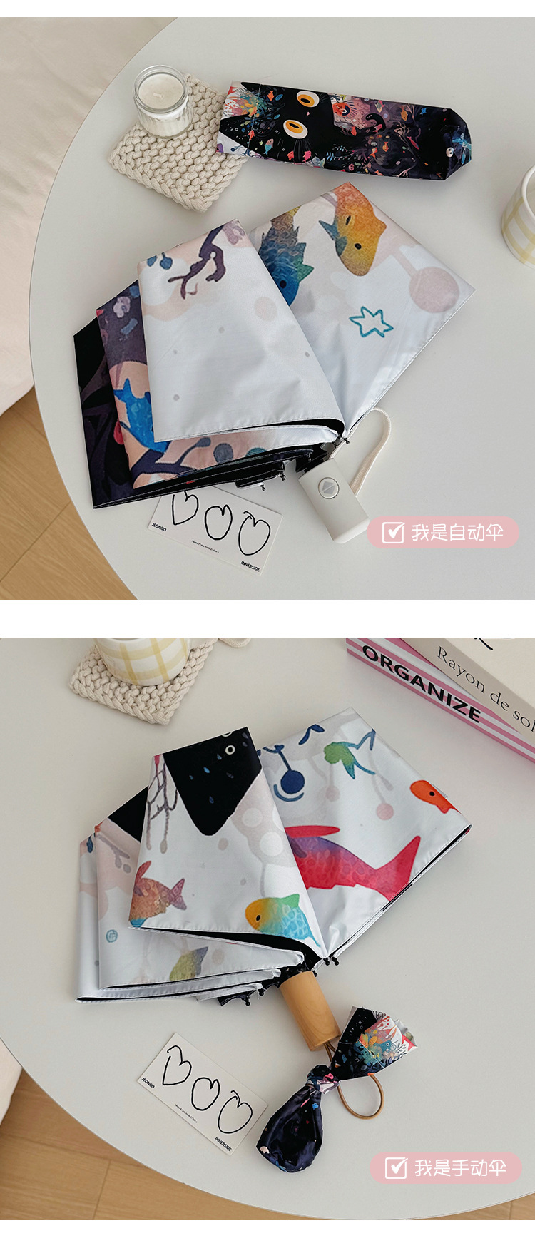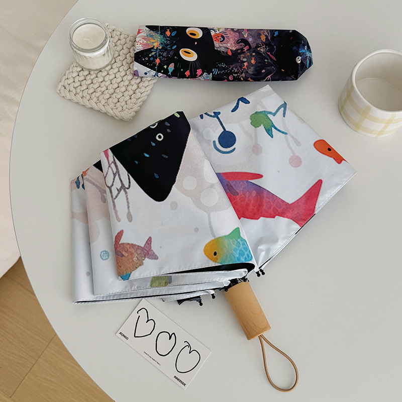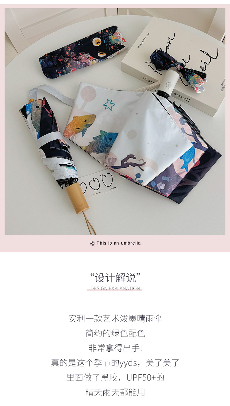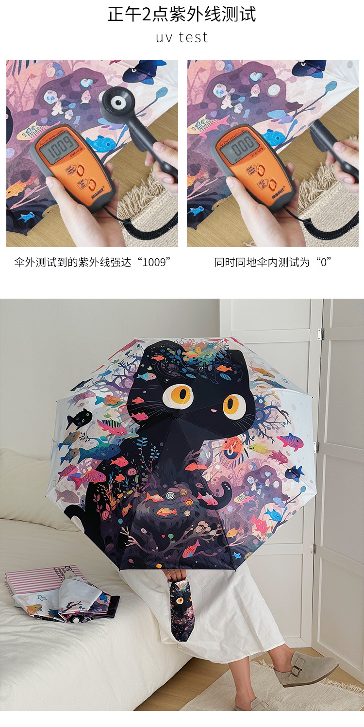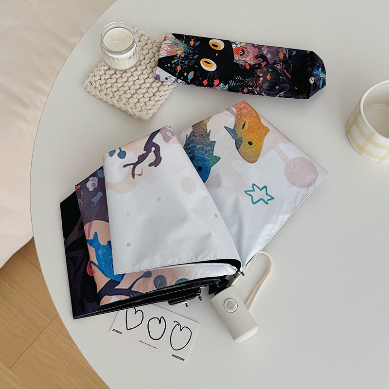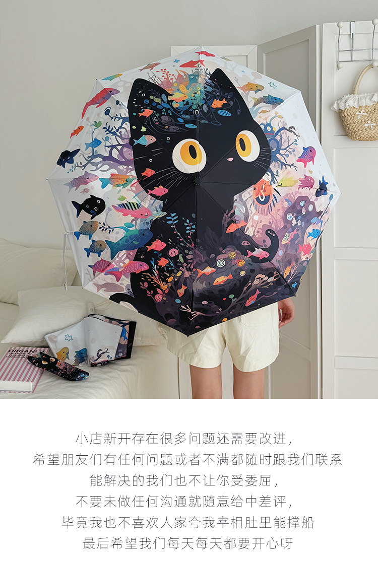 귀여운 만화 고양이 접히는 우산 태양 보호 UV 보호 검은 우산 맑고 비 이중 목적 자동 양산 우산스토어 가기