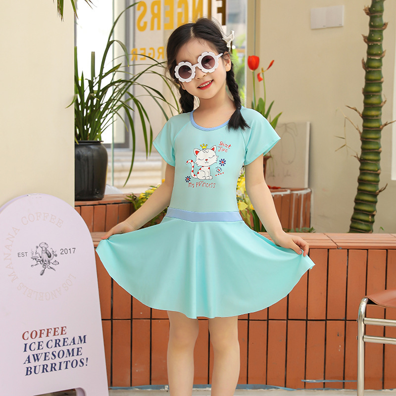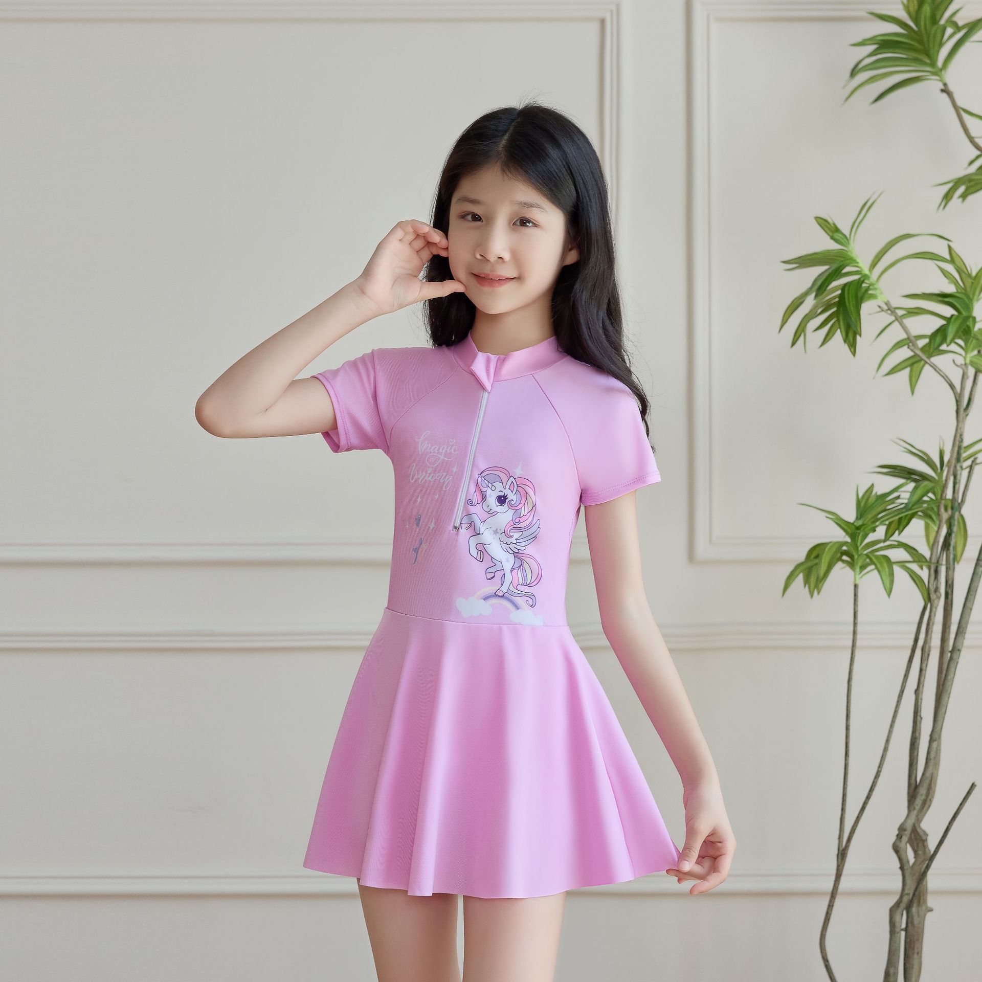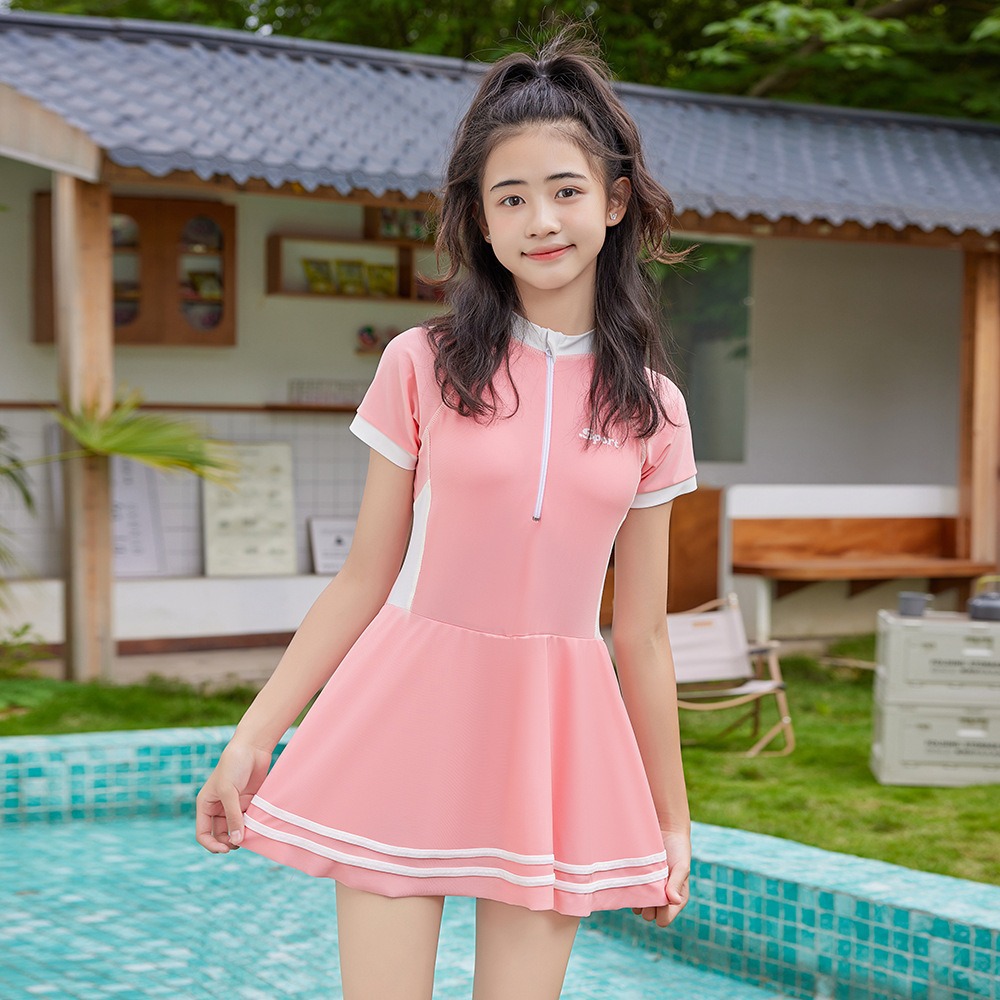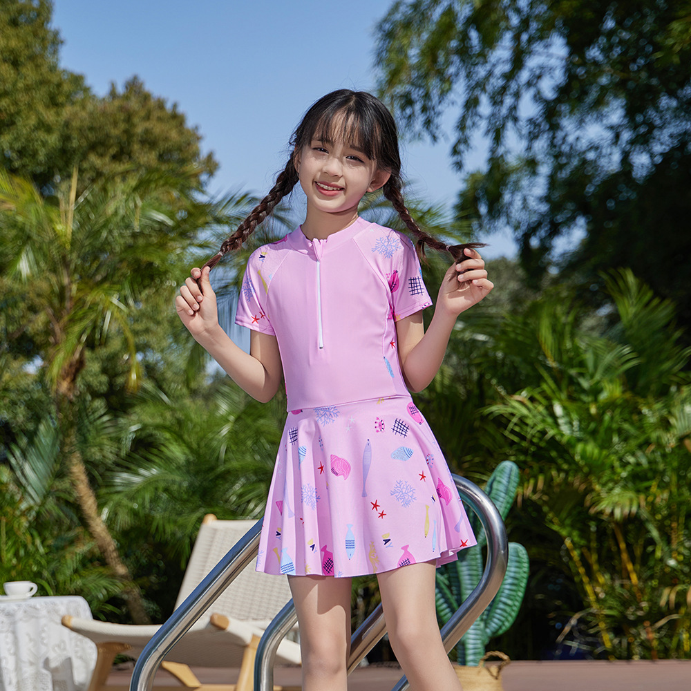 어린이 수영복 작고 큰 소녀 시아만 스커트 수영복 어린 소녀 학생 온천 보수적 태양 보호 수영복