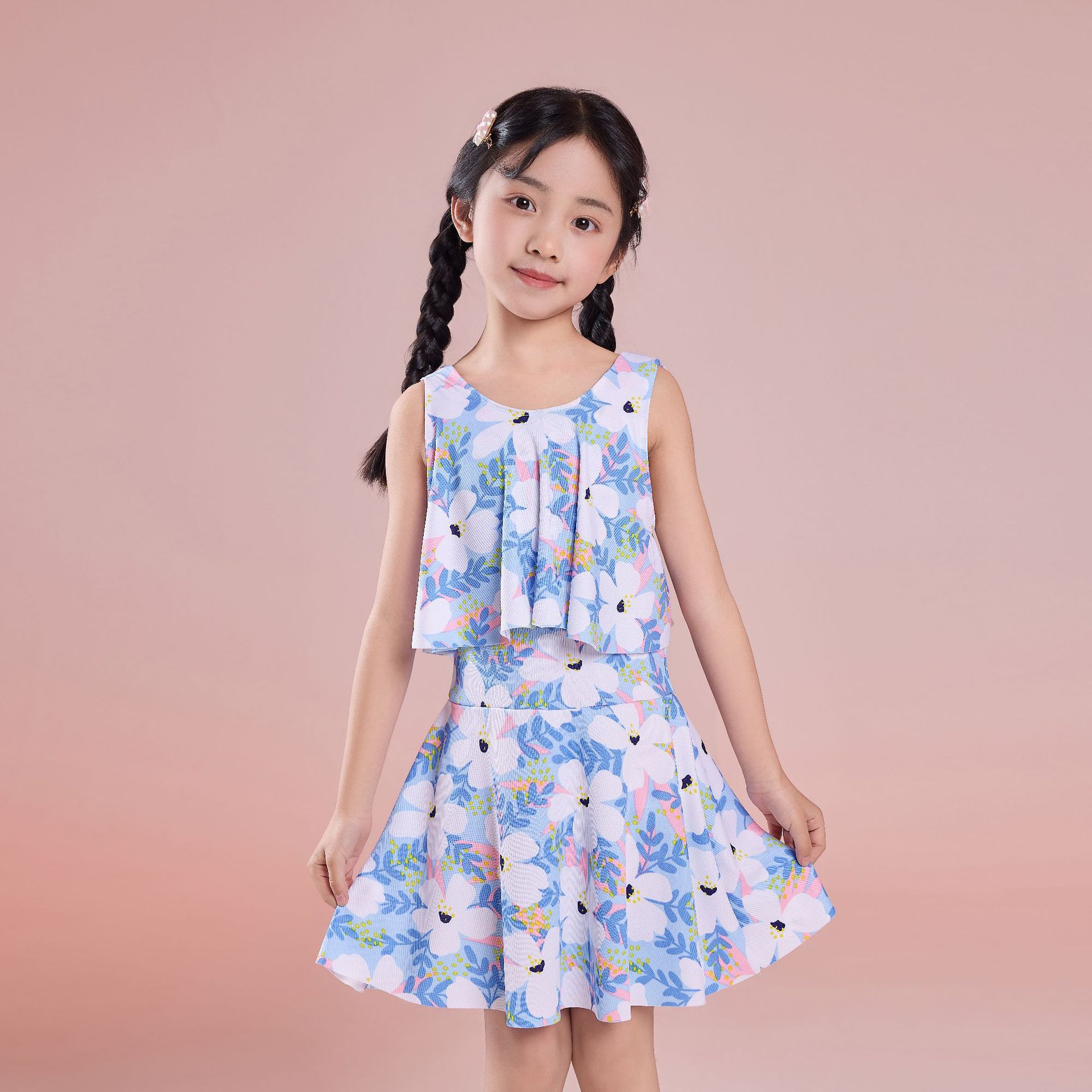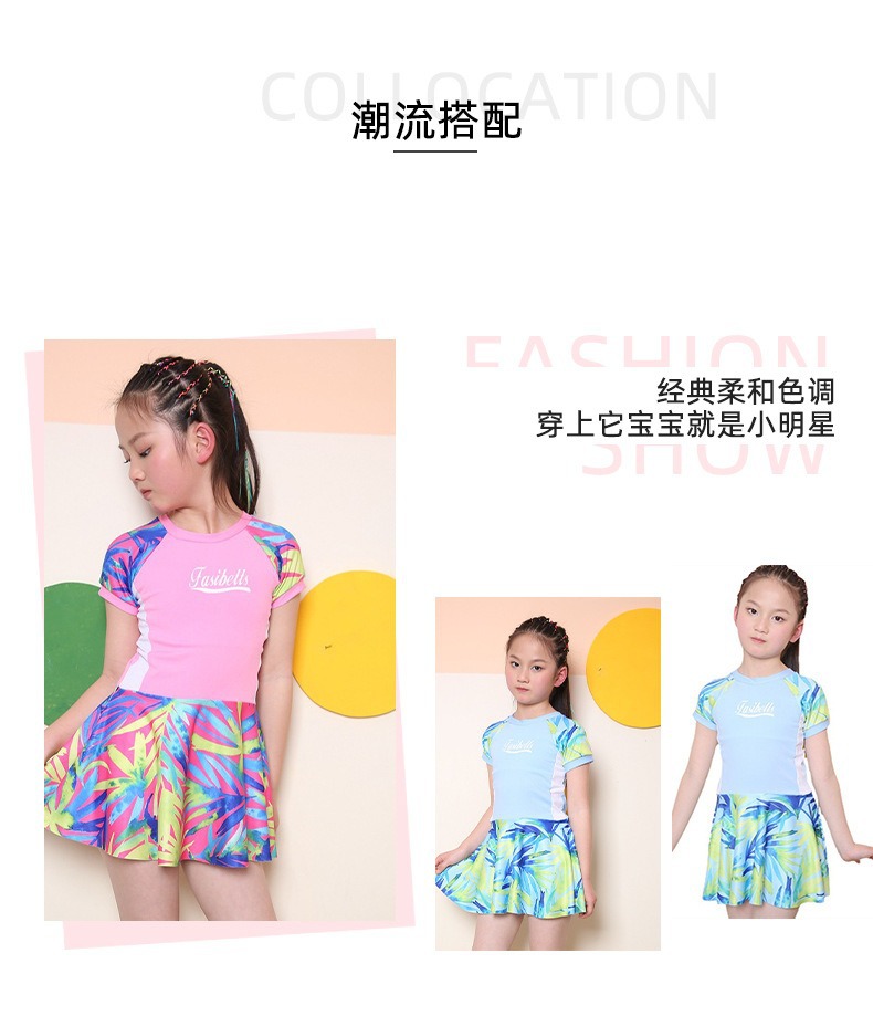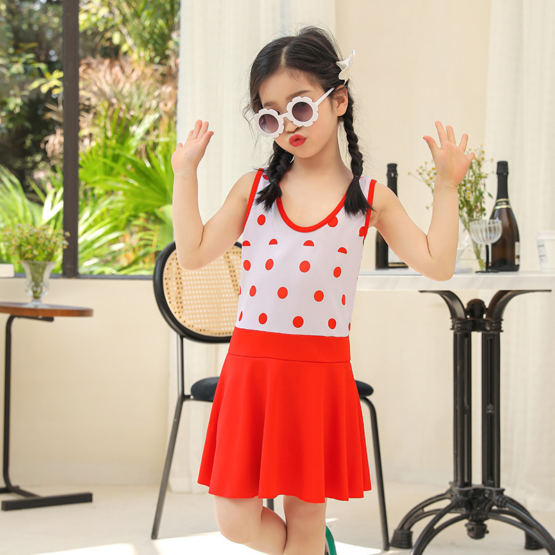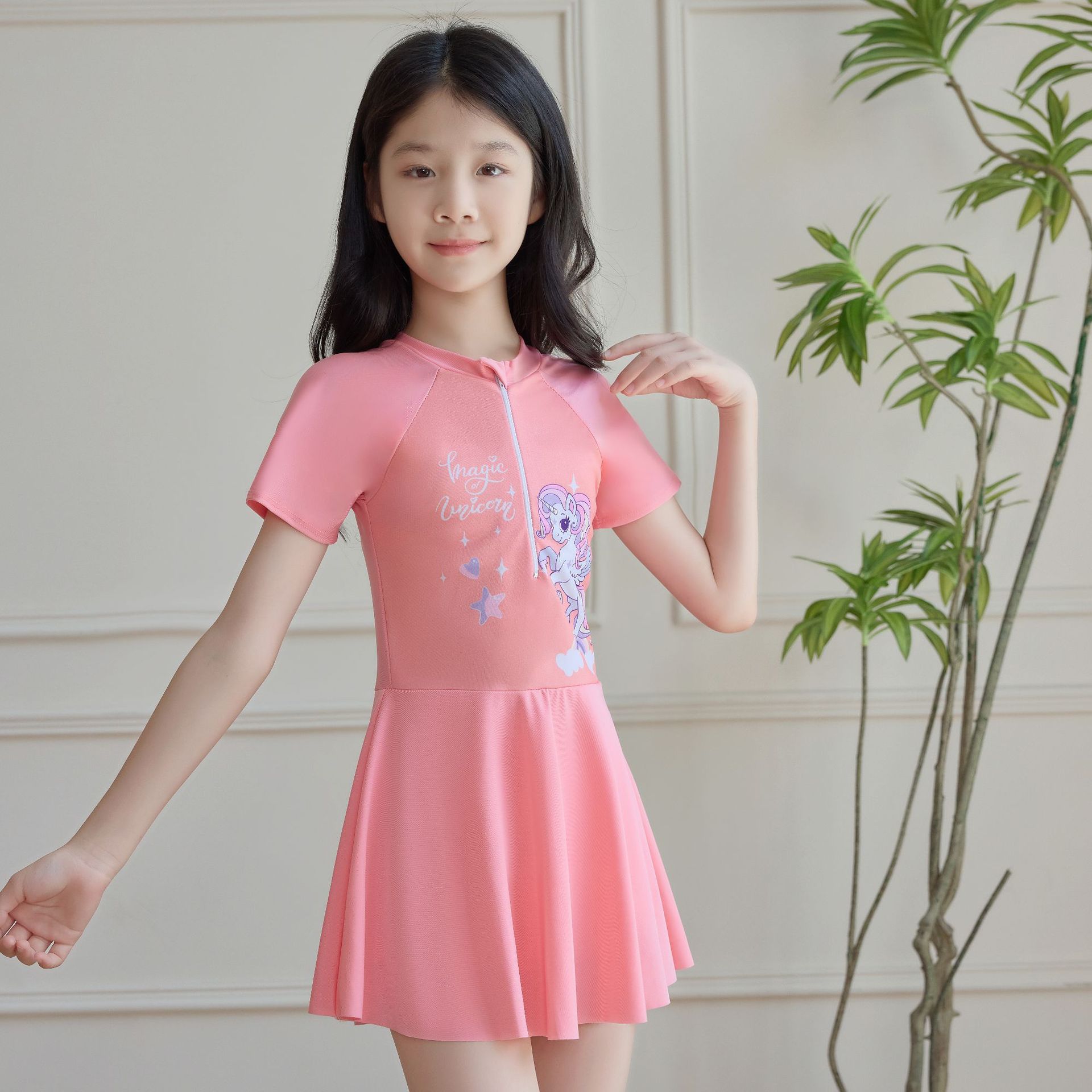 어린이 수영복 작고 큰 소녀 시아만 스커트 수영복 어린 소녀 학생 온천 보수적 태양 보호 수영복