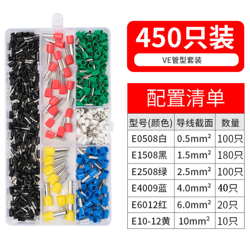 VE 튜브 유형 냉간 프레스 터미널 세트 구리 터미널 저장 상자 와이어 커넥터 압착 펜치 스위치 패널