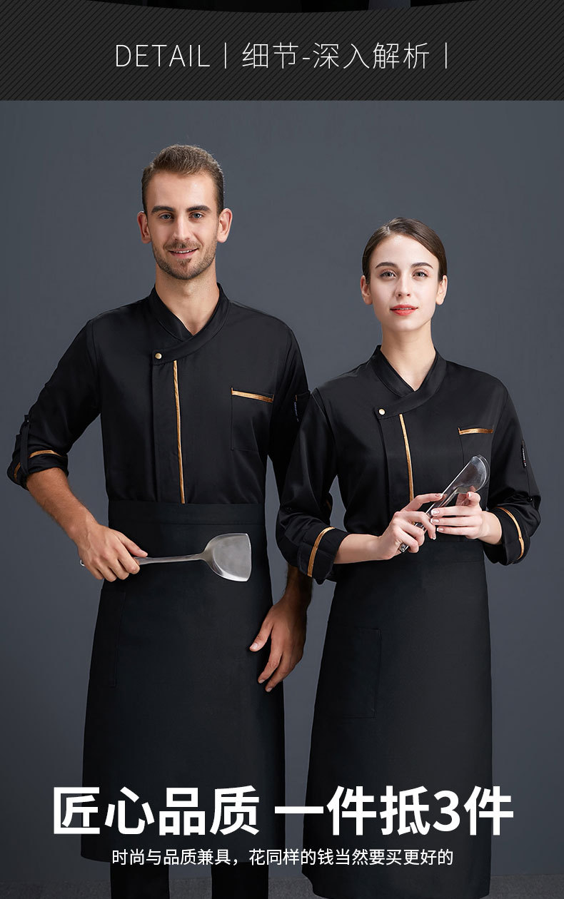 高档餐厅餐饮厨师工作服长袖男女酒店食堂后厨秋冬厨师服工装西餐