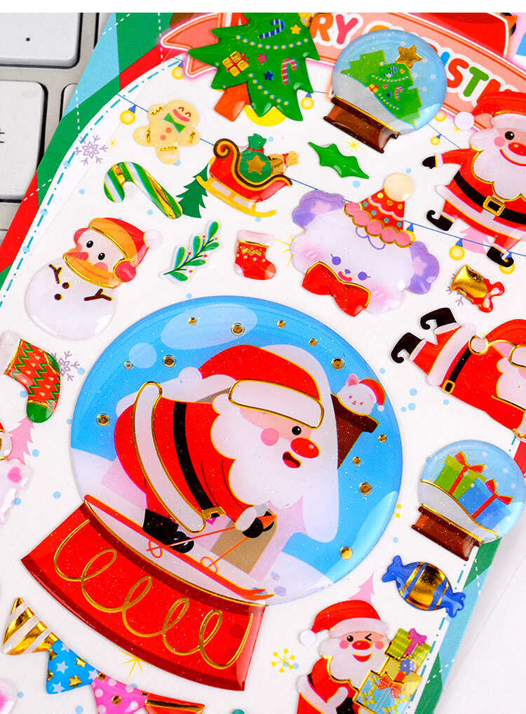 산타 엘크 눈송이 어린이 카토 스티커 국경 새 크리스마스 크리스탈 드롭 접착제 스티커