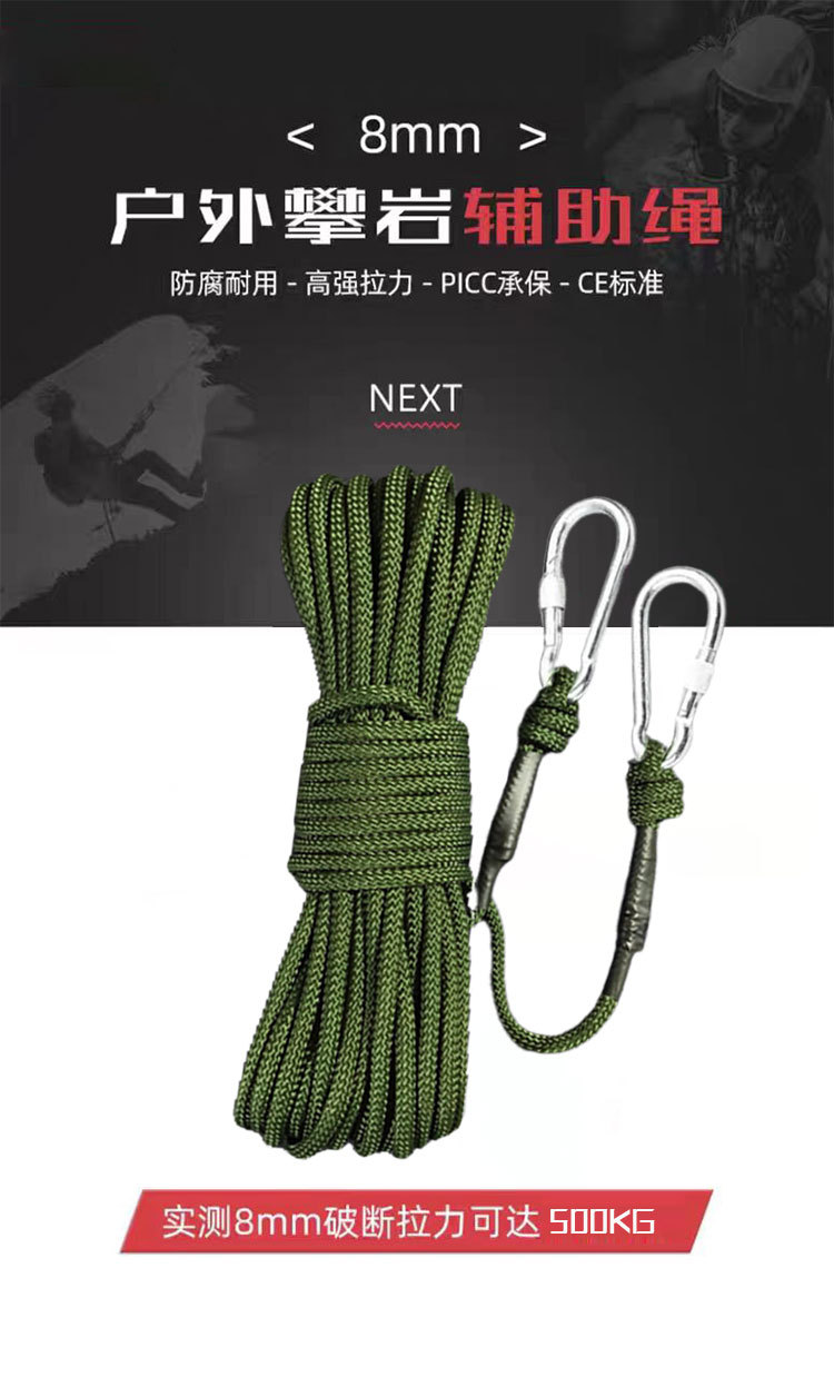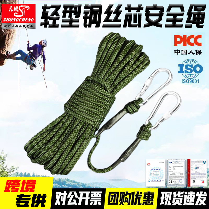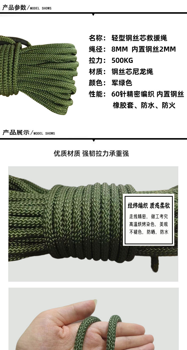 8mm 군용 녹색 강철심 안전 로프, 화재 및 홍수 구조용 로프, 나일론 빨랫줄, 고층 낙하 방지용 로프스토어 가기