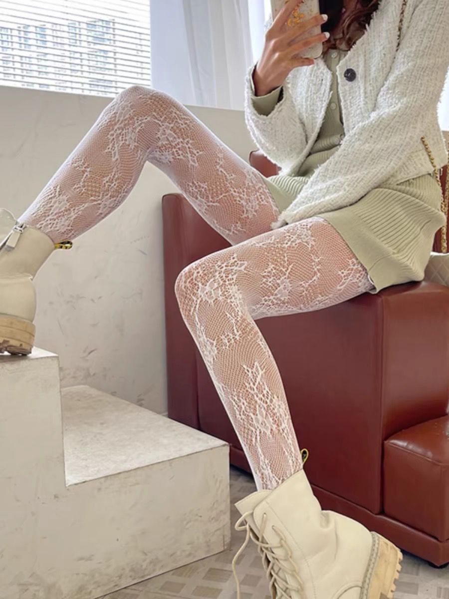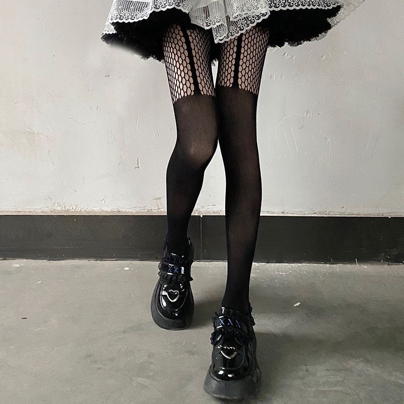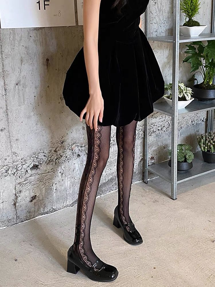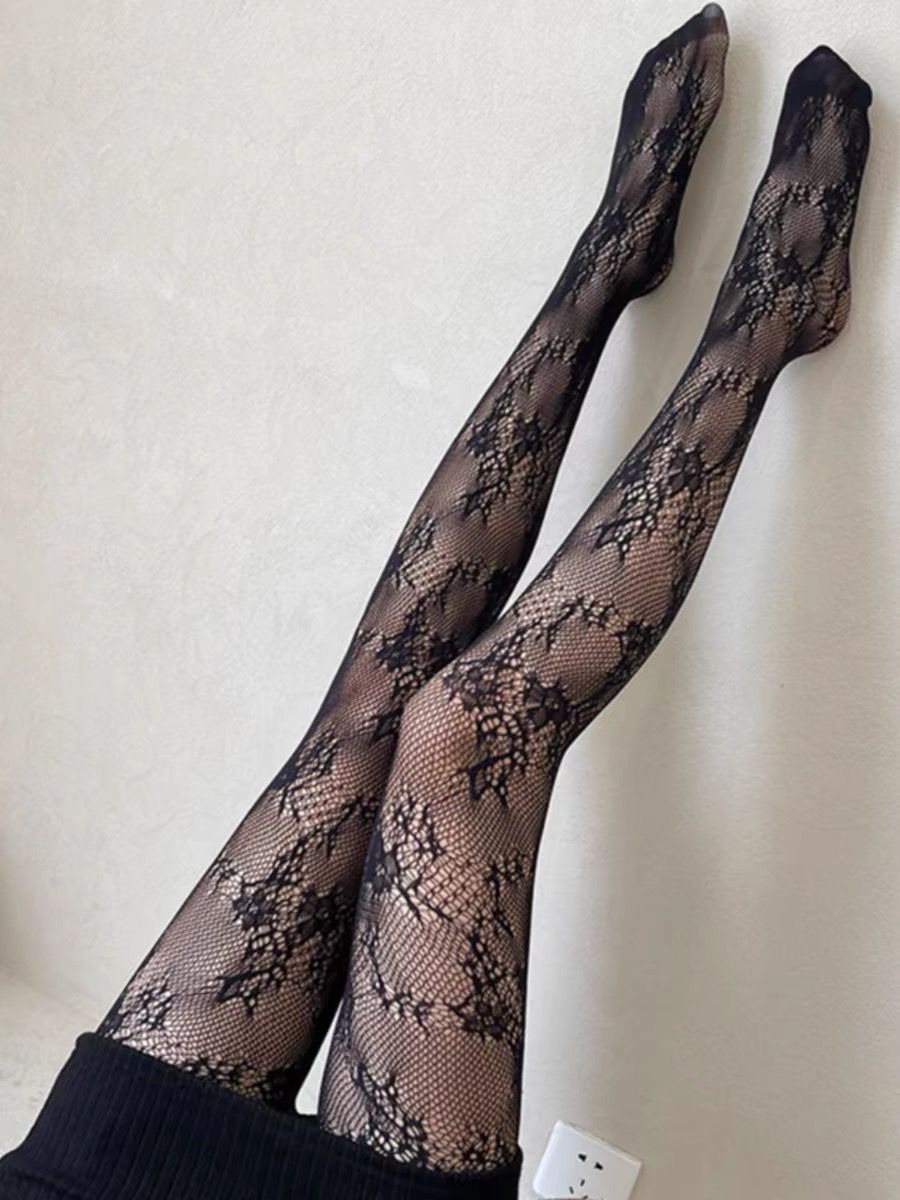 검은 물고기 스타킹 여성의 얇은 섹시한 꽃 덩굴 빈 블랙 실크 순수 Jk 그리드 로즈 문 레오파드 무늬 팬티 스타킹스토어 가기