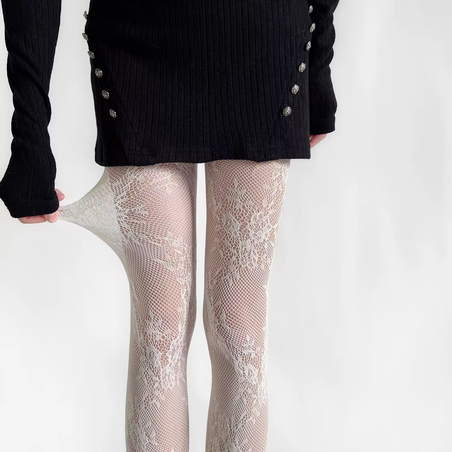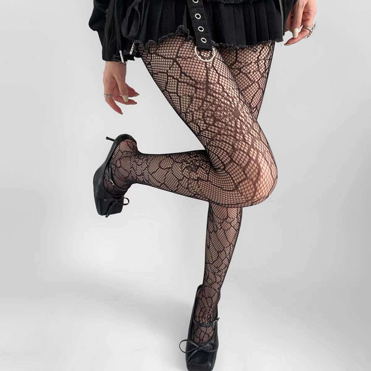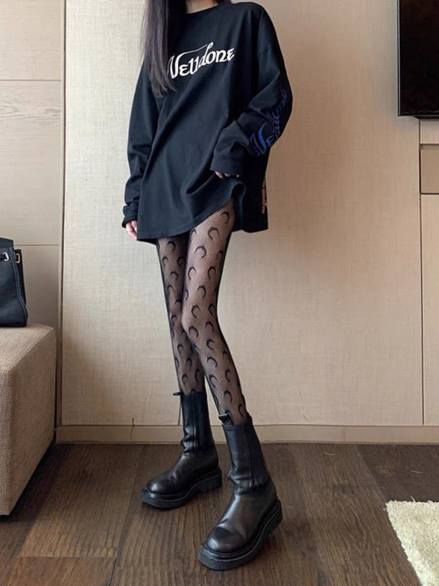 검은 물고기 스타킹 여성의 얇은 섹시한 꽃 덩굴 빈 블랙 실크 순수 Jk 그리드 로즈 문 레오파드 무늬 팬티 스타킹스토어 가기
