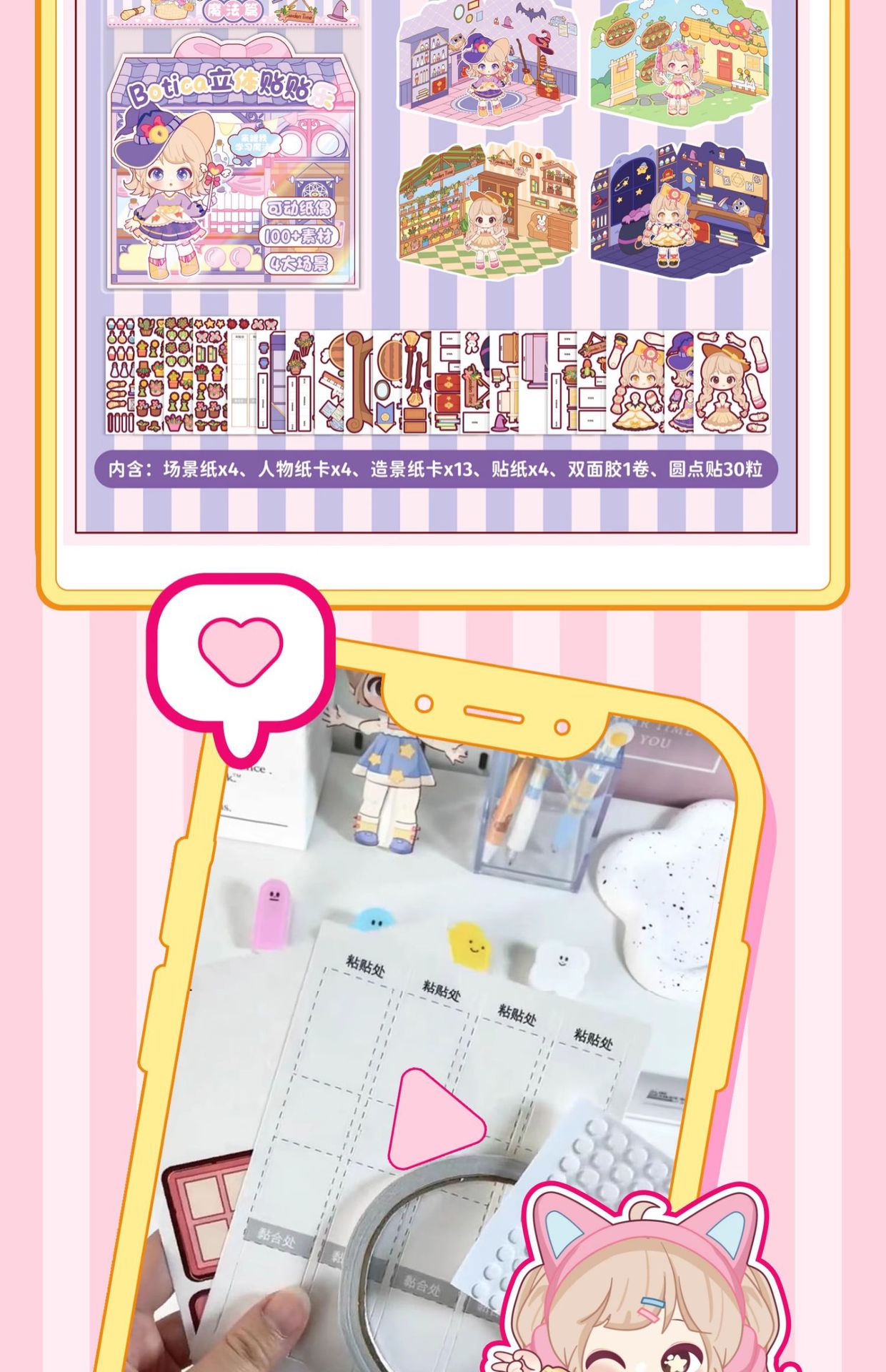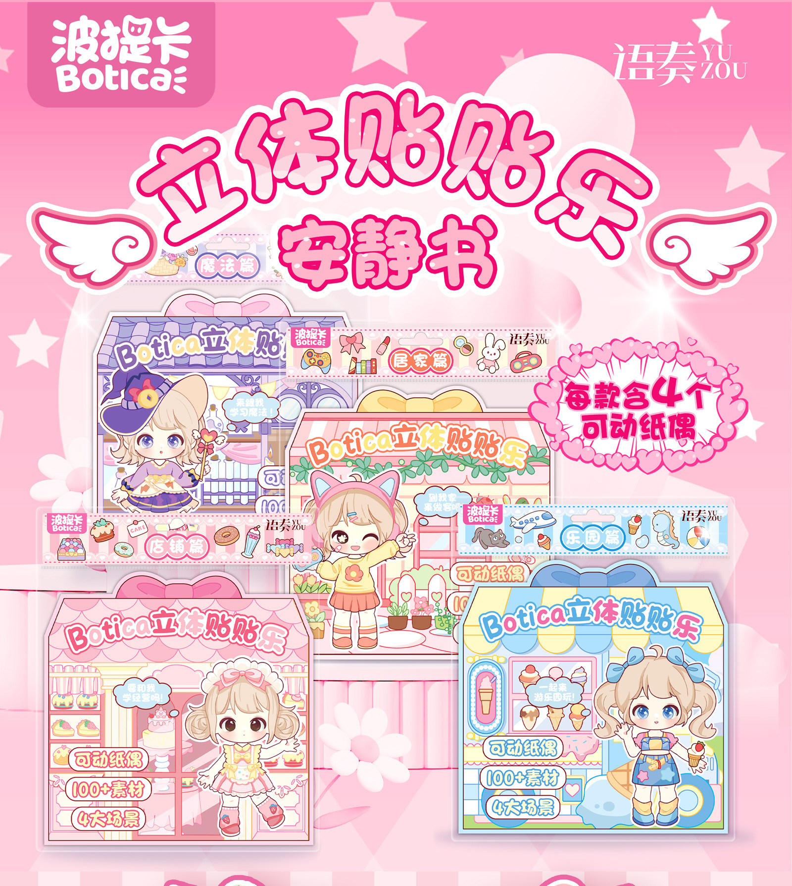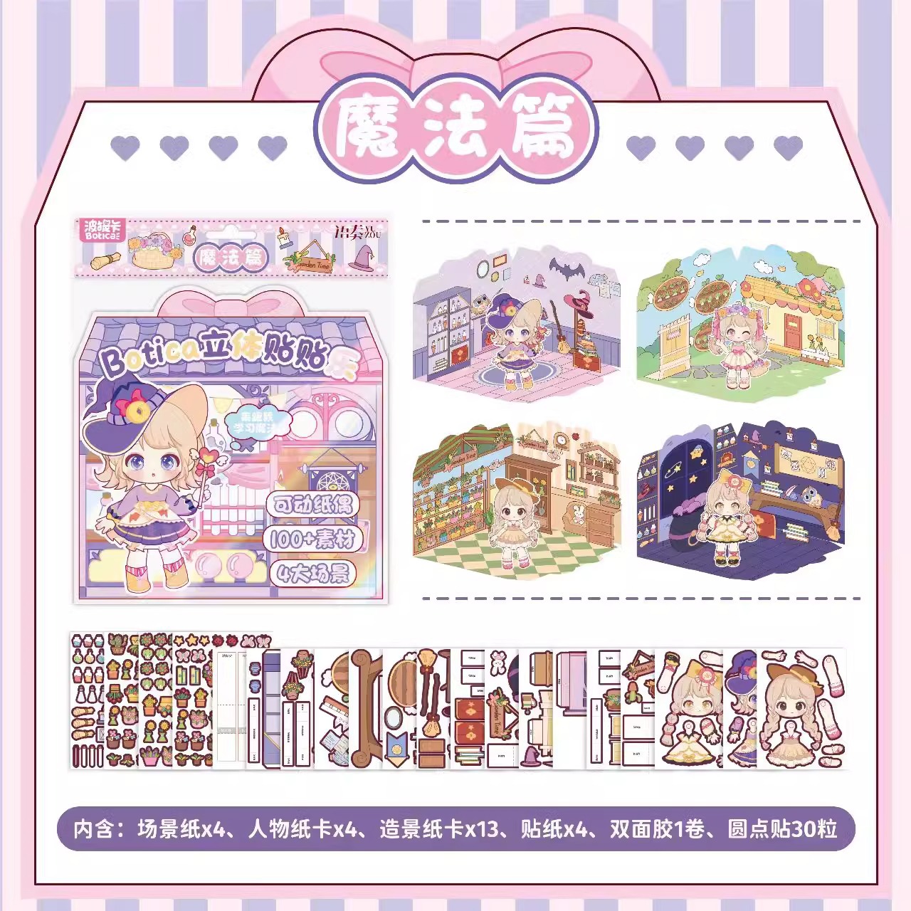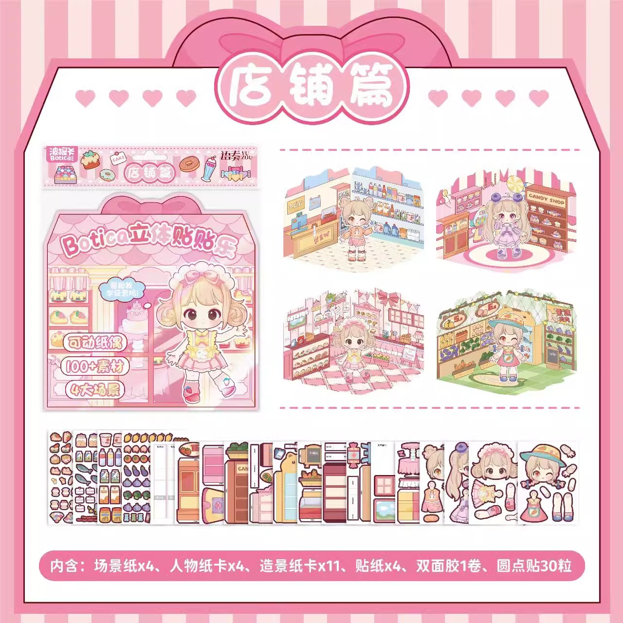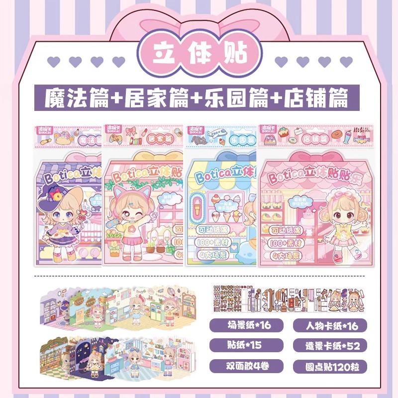 Potika 3D 수제 3 차원 DIY 조용한 책 스티커 르 움직일 수있는 종이 인형 종이 남자 소녀 어린이 장난감스토어 가기