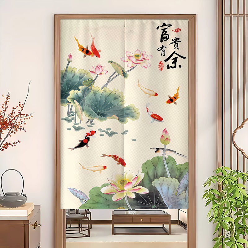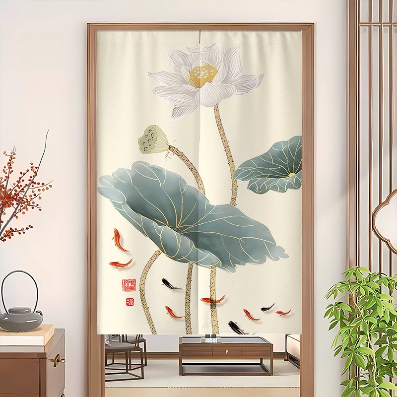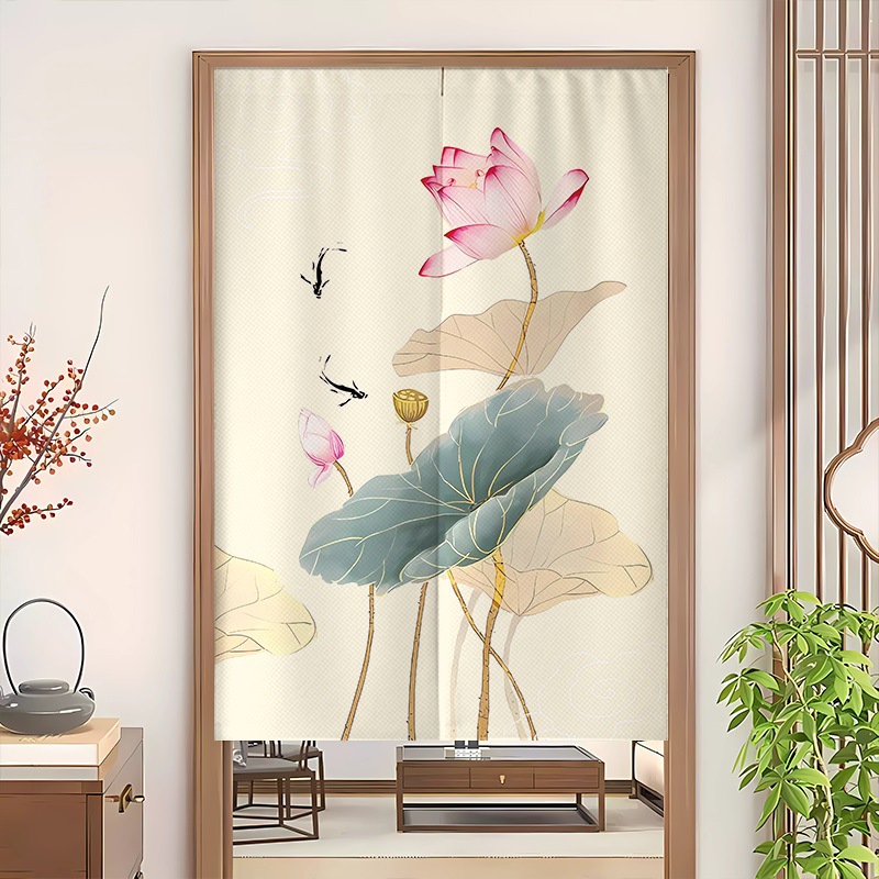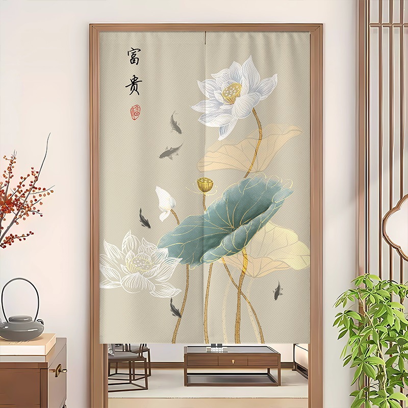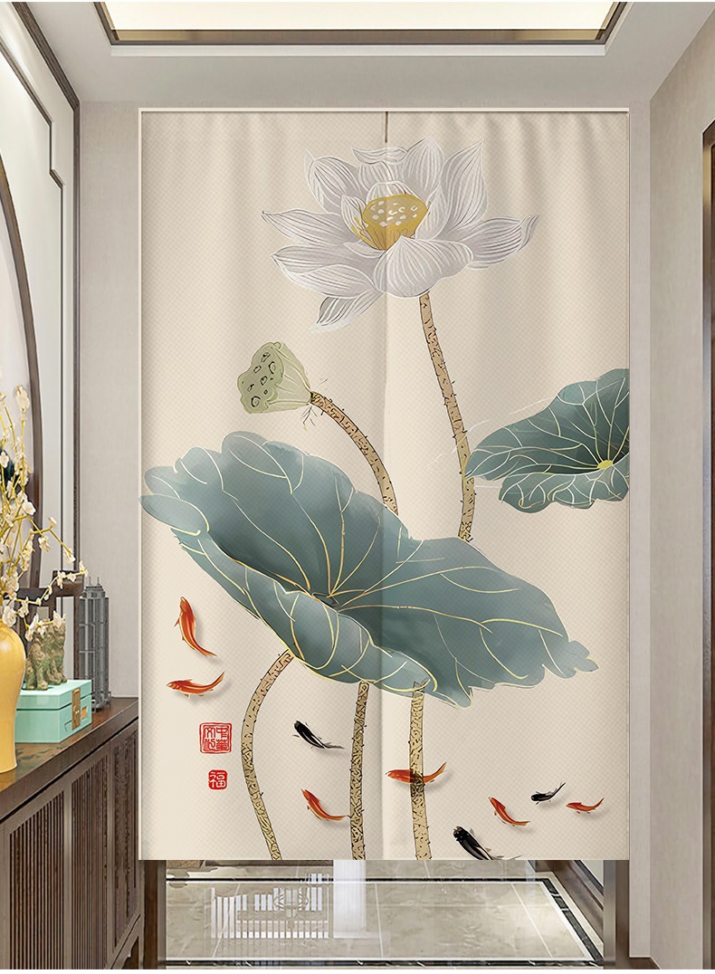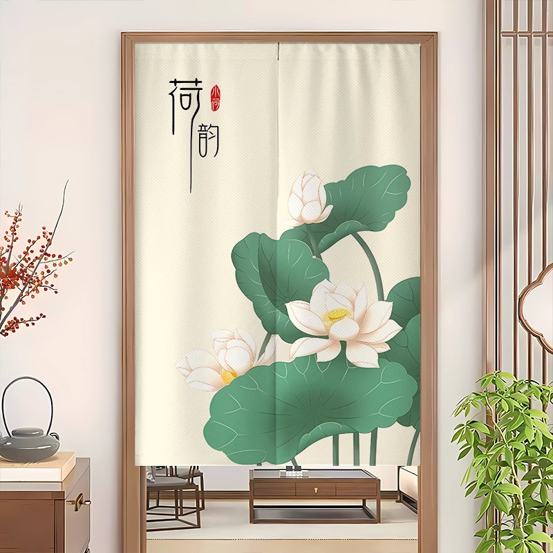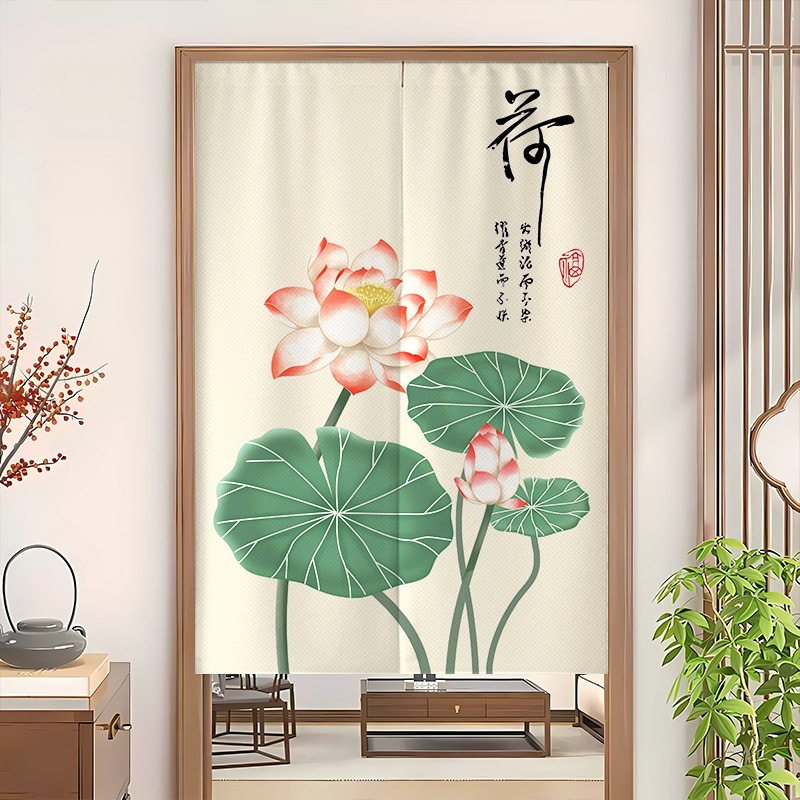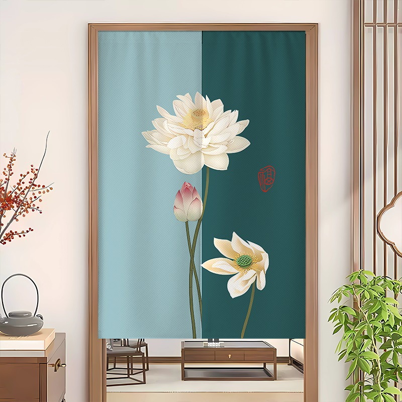 중국 스타일의 연꽃 문 커튼 욕실 파티션 커튼 화장실 연꽃 비 천공 반 커튼 풍수 대피소 커튼 절반 커튼