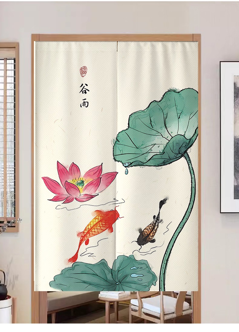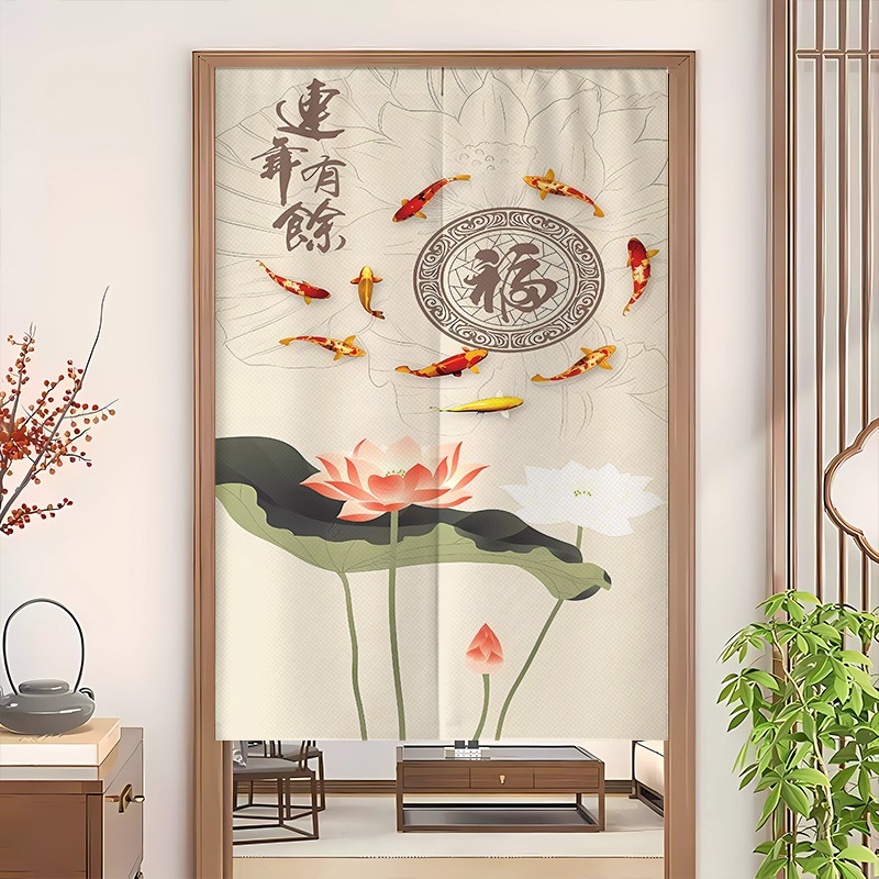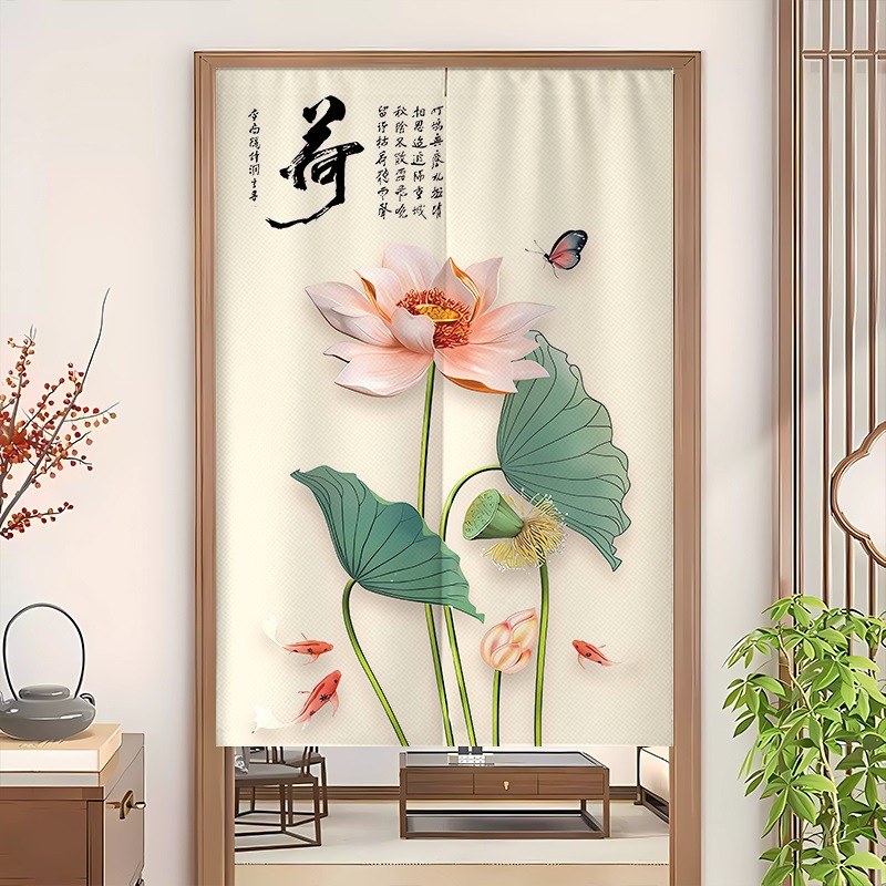 중국 스타일의 연꽃 문 커튼 욕실 파티션 커튼 화장실 연꽃 비 천공 반 커튼 풍수 대피소 커튼 절반 커튼스토어 가기