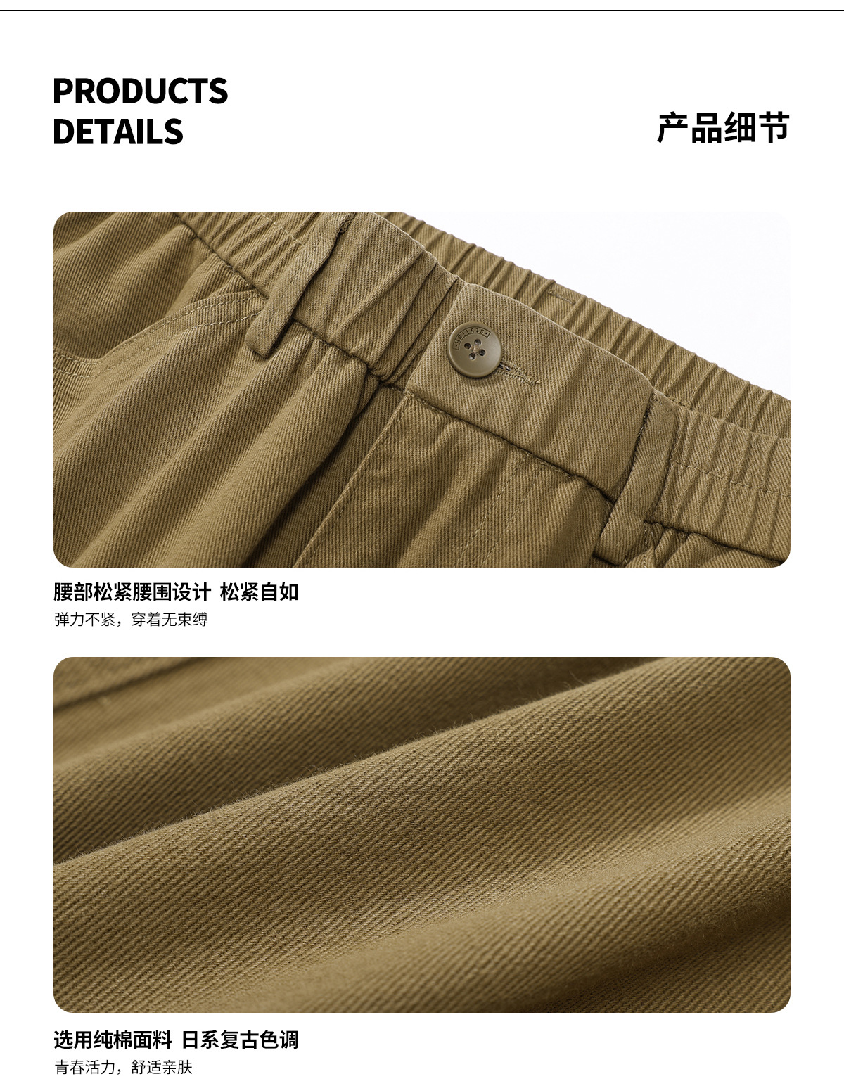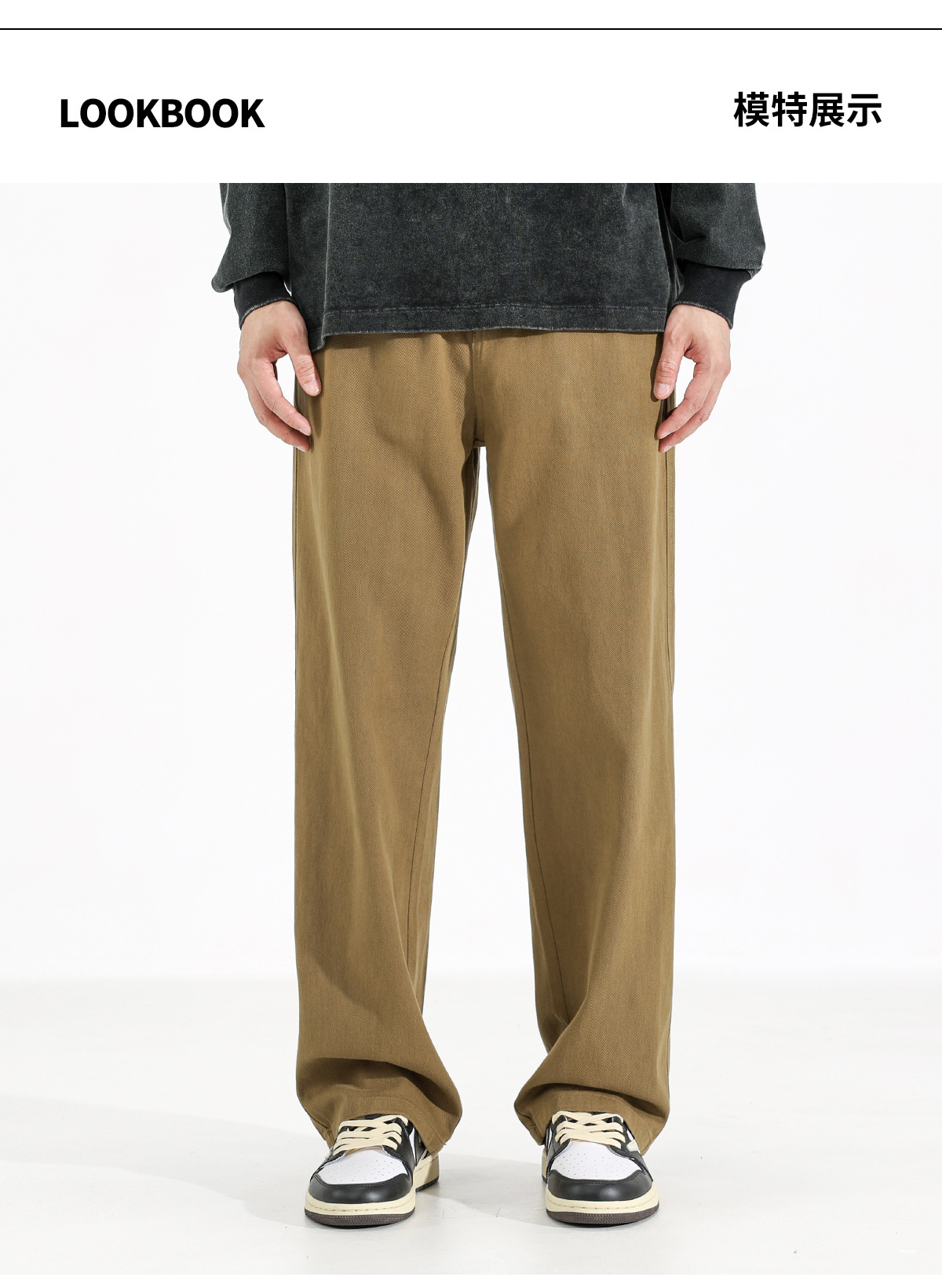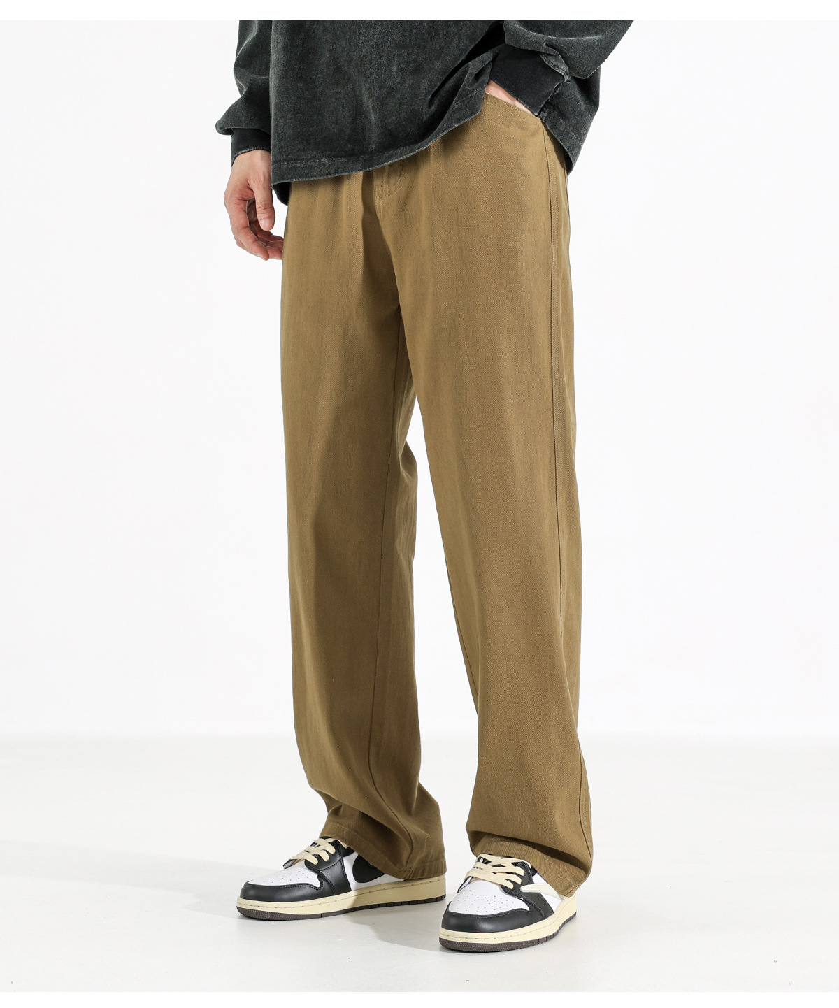 Ceecuz 무거운 무게 투약 느슨한 스트레이트 긴 바지 남성 봄과 가을 일본 스타일 빈티지 사용 작업복 캐주얼 바지