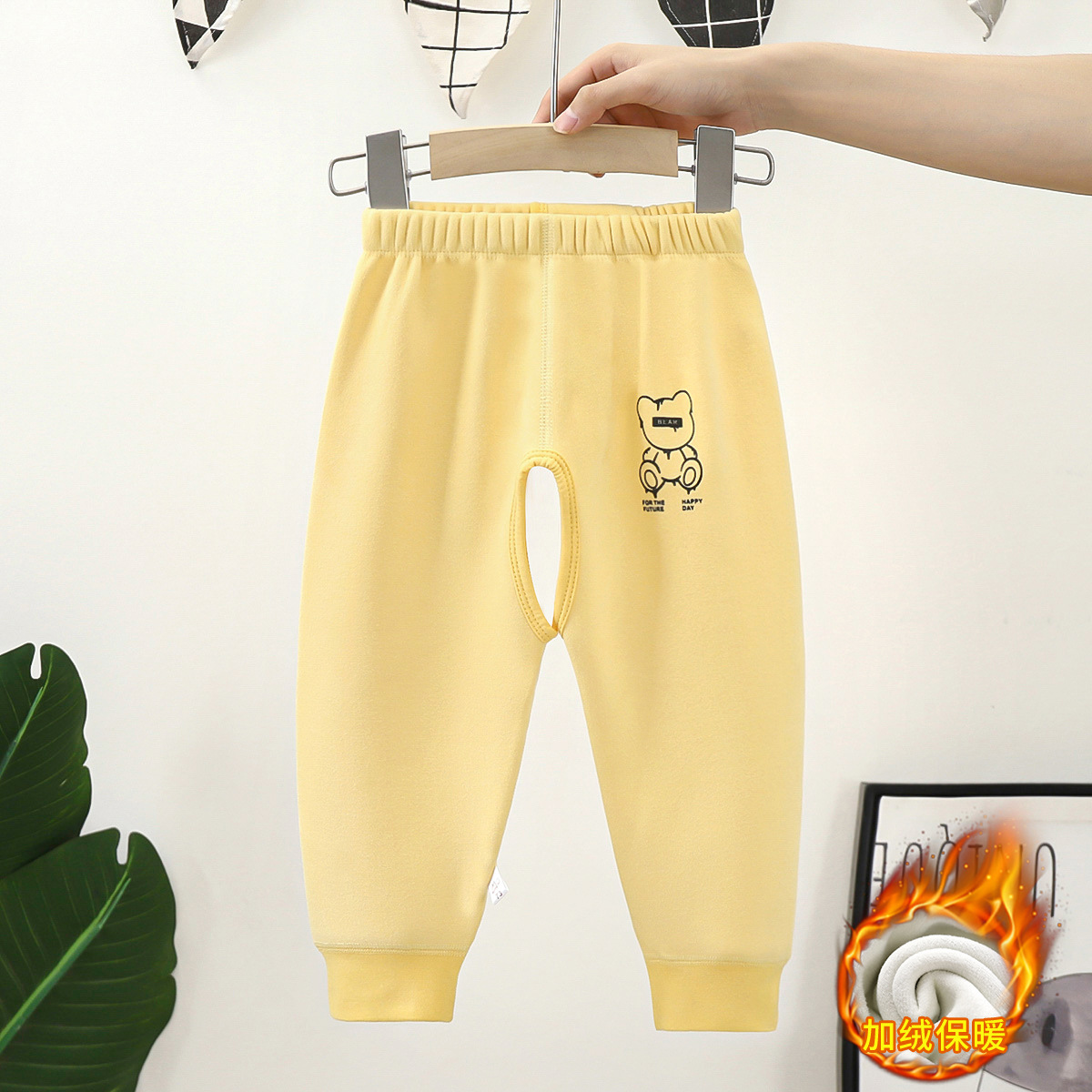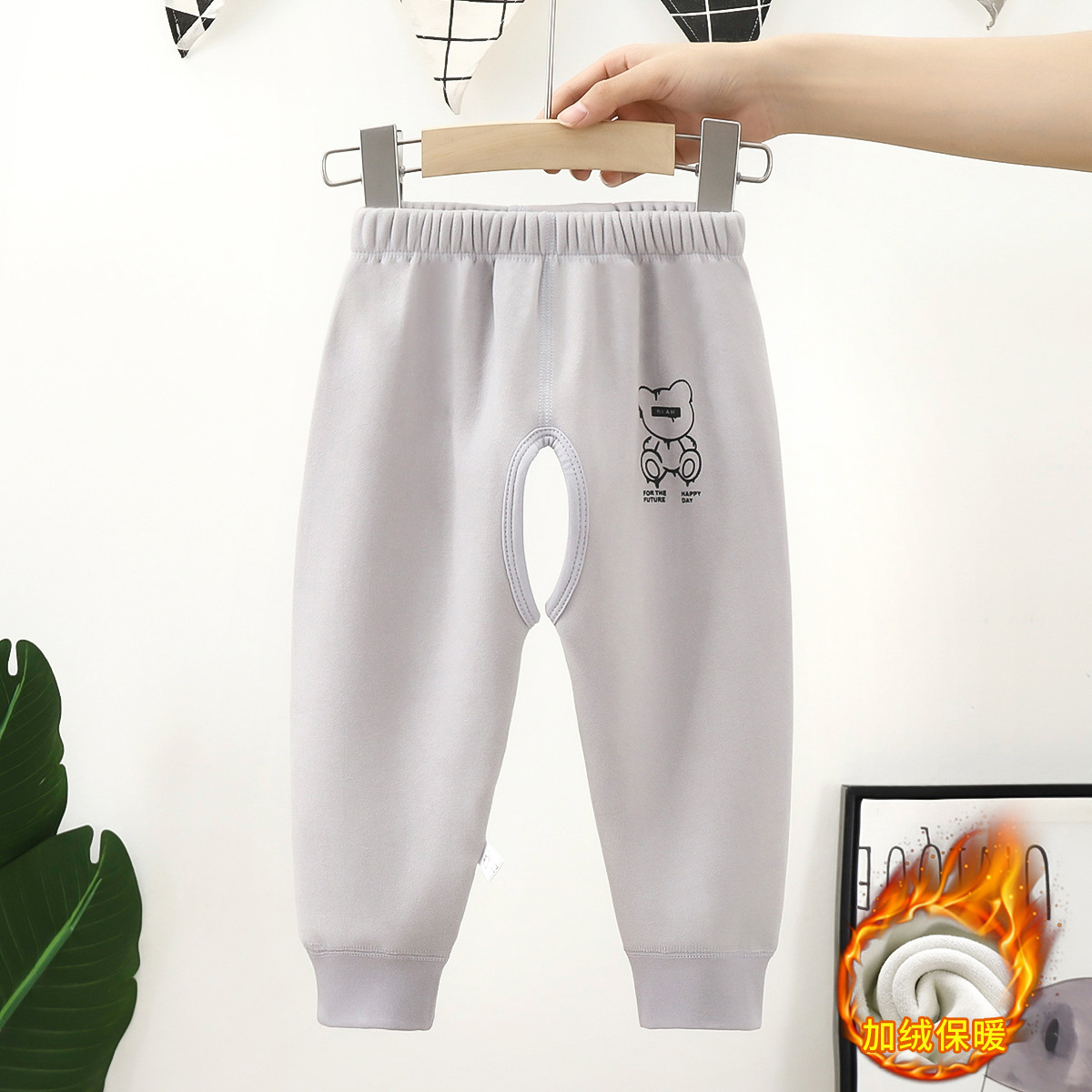 봄 가을과 겨울 남성과 여성 아기 크로스 크로트 기모 따뜻한 바지 외부 착용 유아 오픈 크로트 바지 기저귀 프리 바지