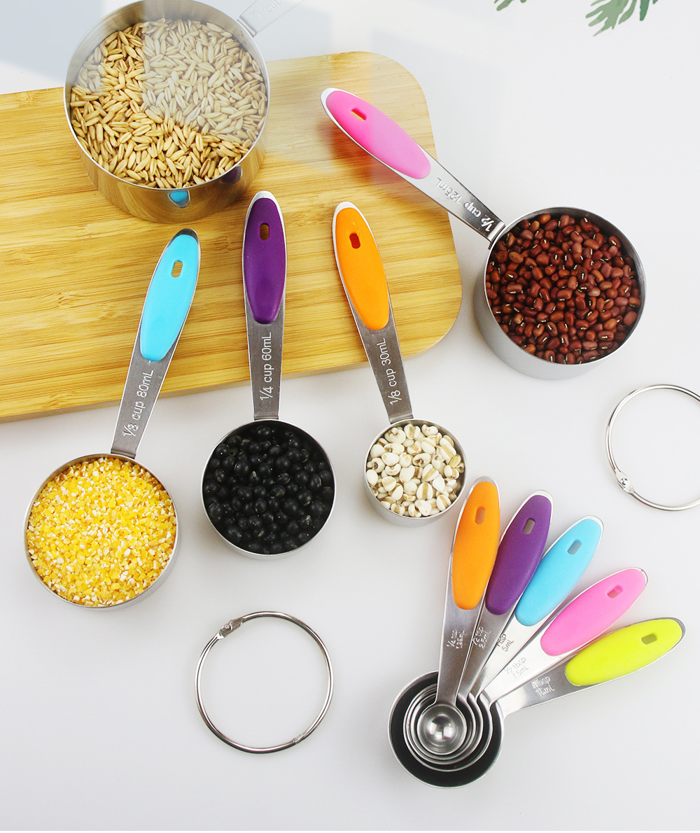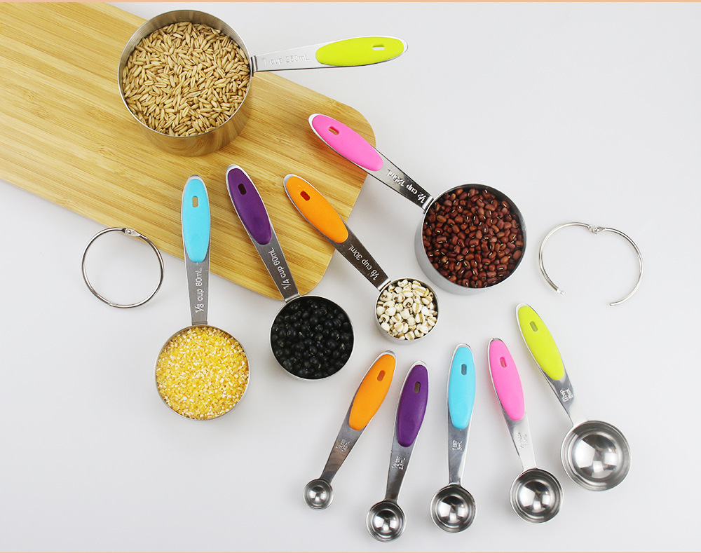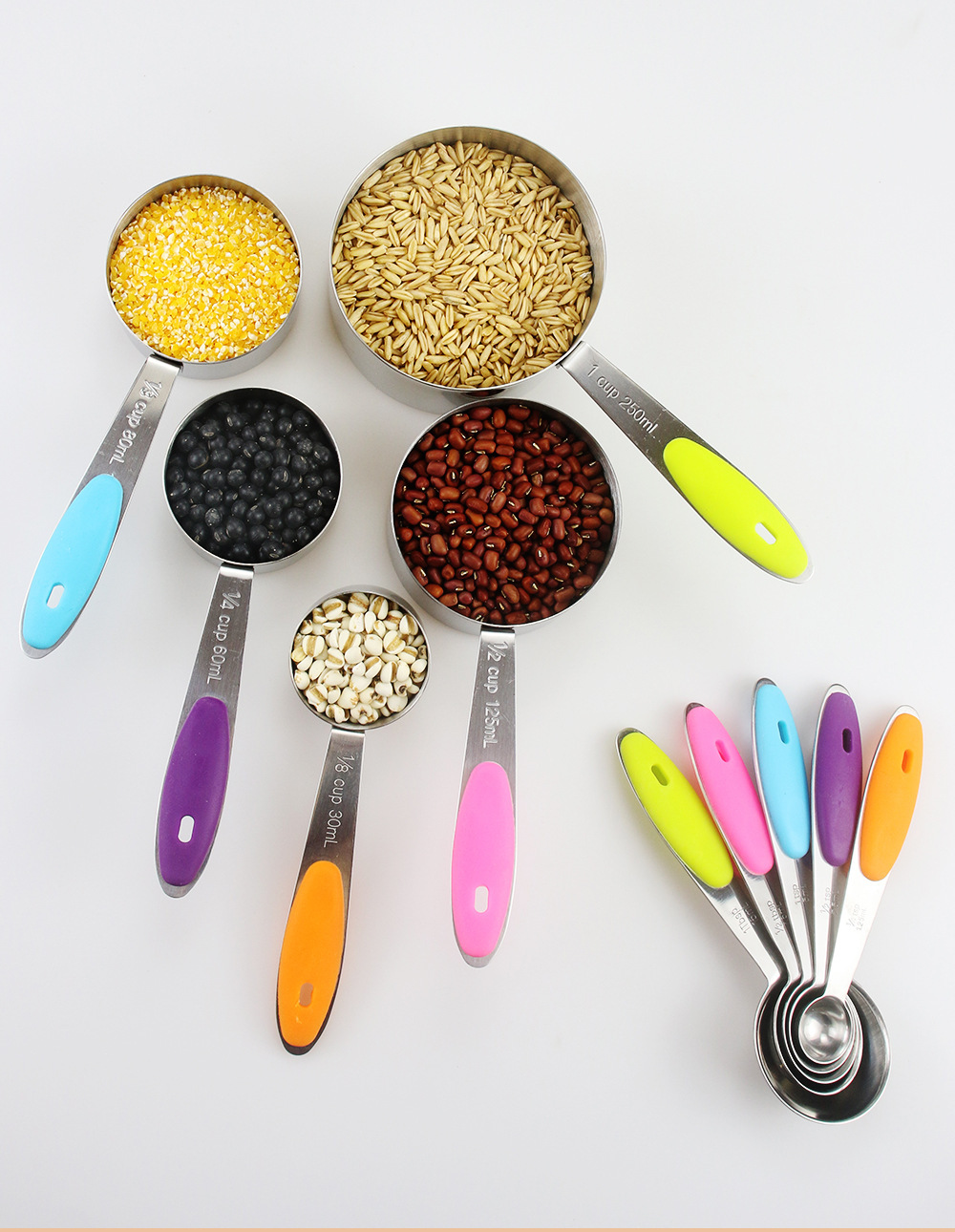 스테인레스 스틸 측정 컵 측정 숟가락 10 조각 세트 크로스 테두리 베이킹 측정 스푼 세트
