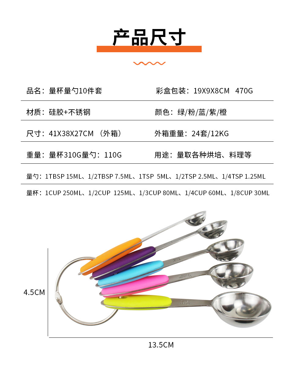 스테인레스 스틸 측정 컵 측정 숟가락 10 조각 세트 크로스 테두리 베이킹 측정 스푼 세트스토어 가기