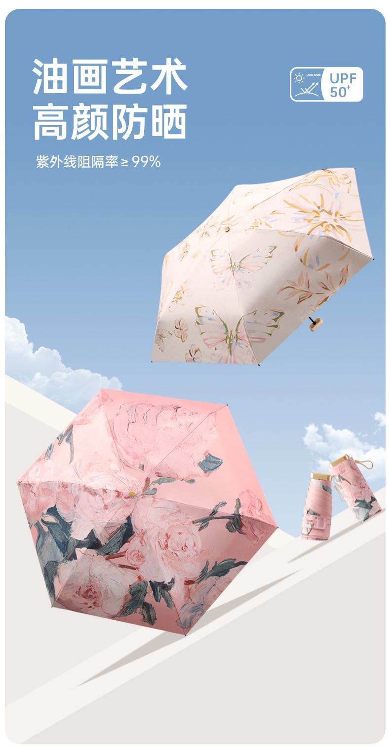 유화 우산 미니 우산 5 배 우산 휴대용 양산 선 스크린 캡슐 우산 자외선 보호 태양 우산 접히는 우산