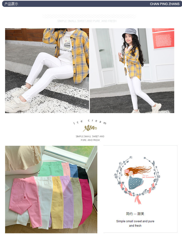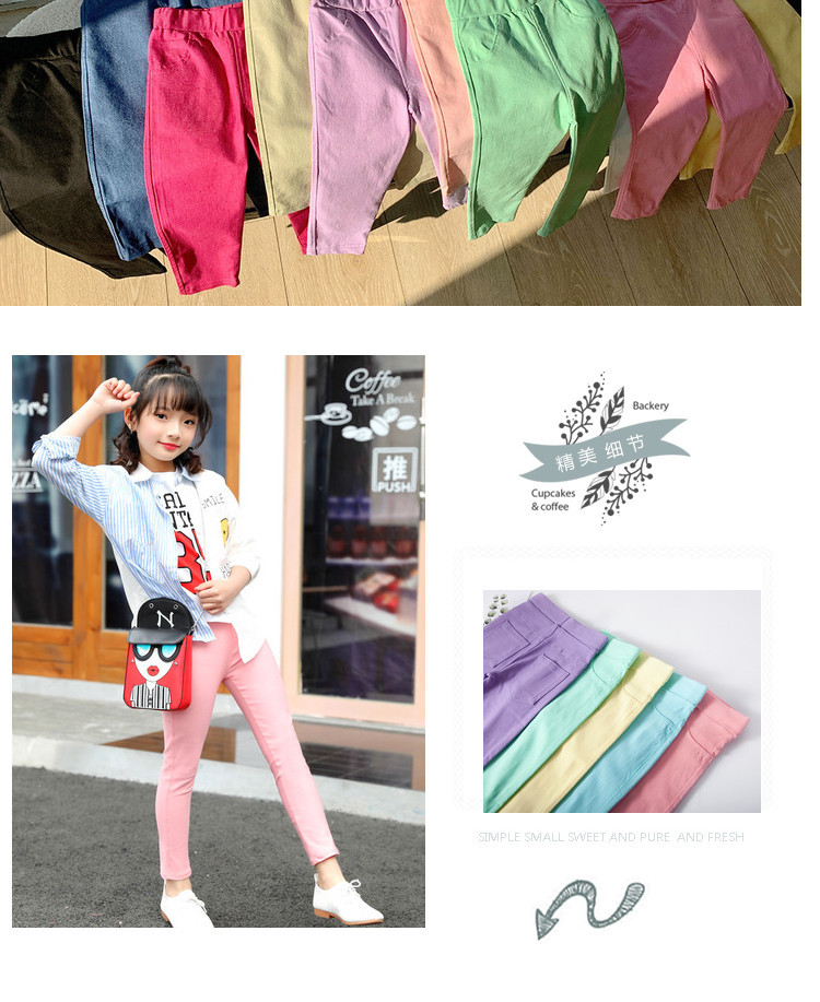 소녀의 연필 바지 어린이 레깅스 아기의 슬림 핏 스트레치 올 매치 연필 바지 서양식 바지를 입고 대형 어린이 외부 바지