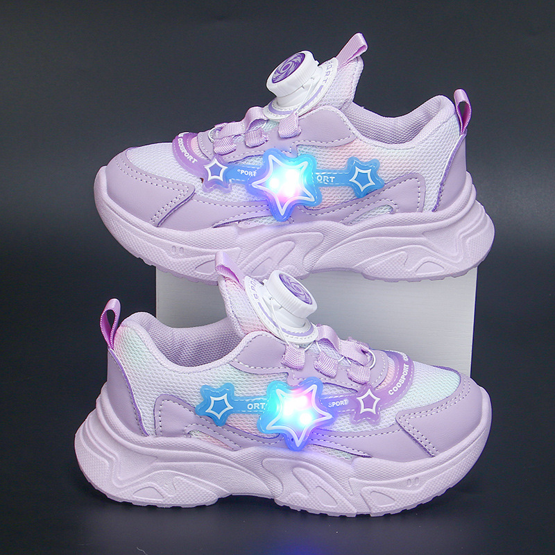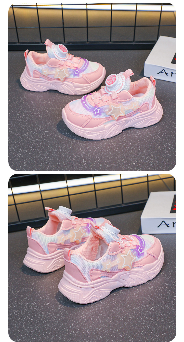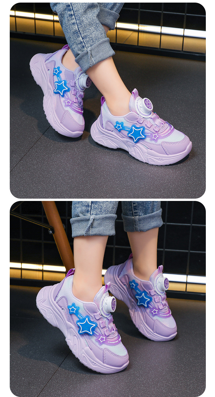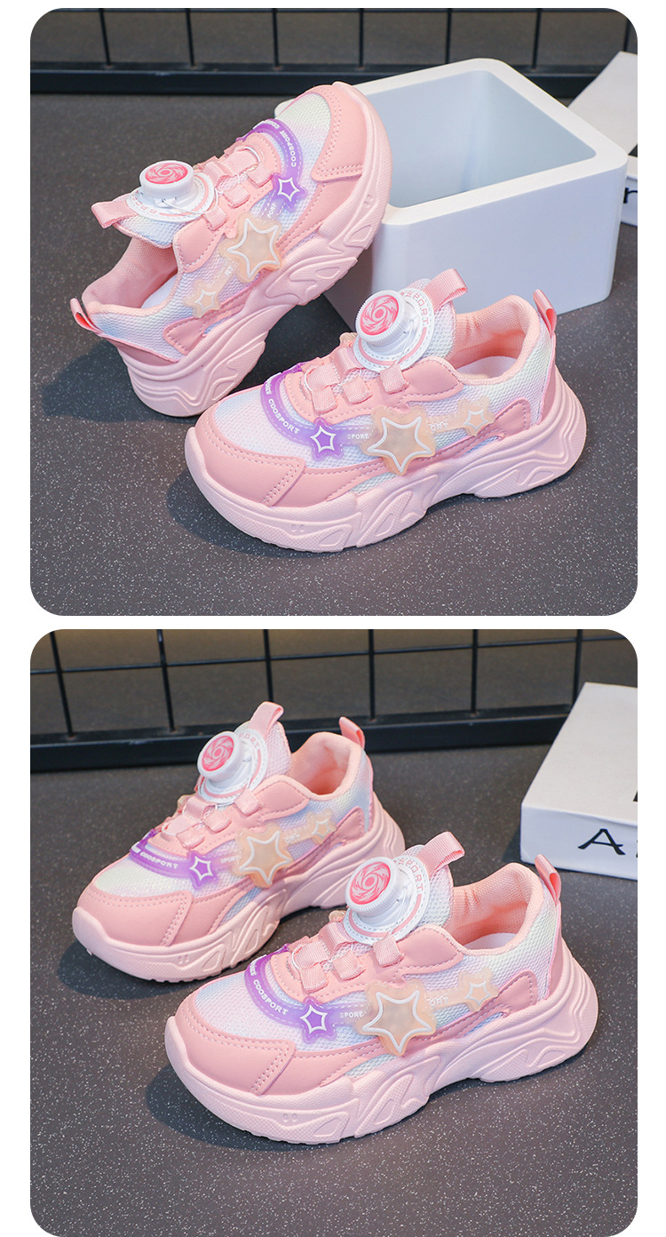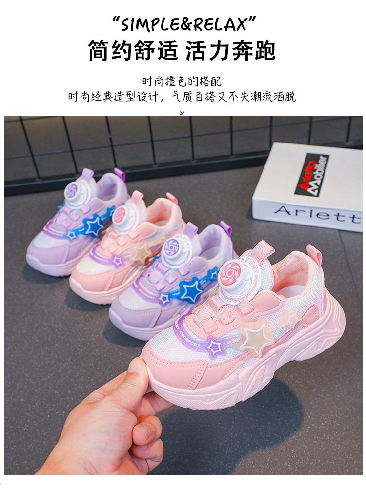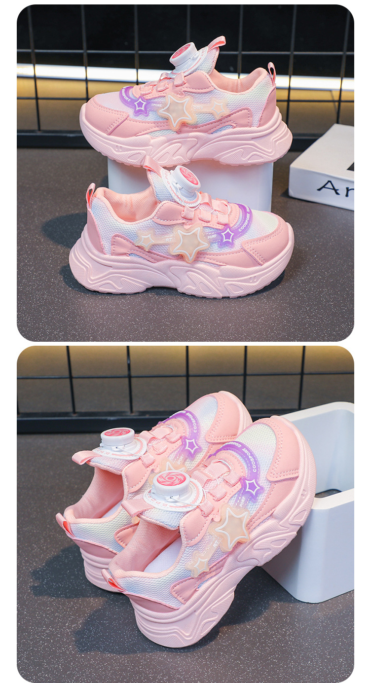 어린이 운동화 2024 봄과 가을 새로운 소녀 빛나는 빛 회전 버튼 토레 신발 어린 소녀 달리기 신발스토어 가기