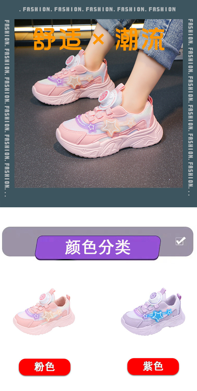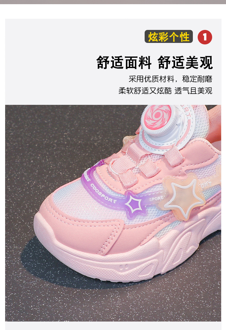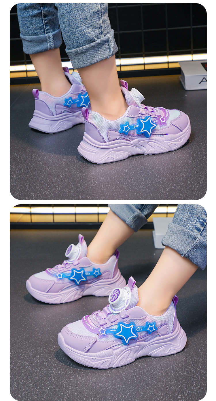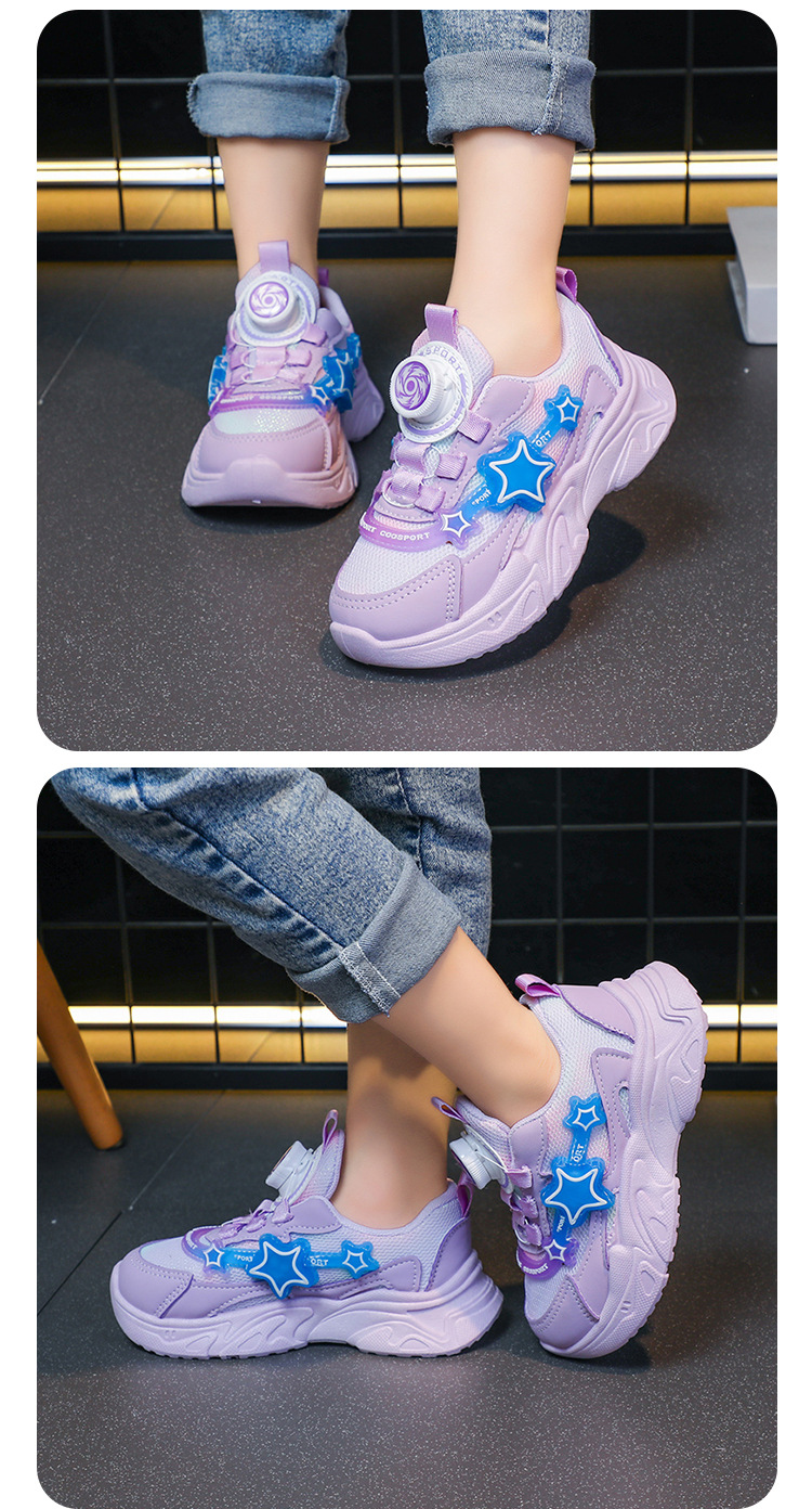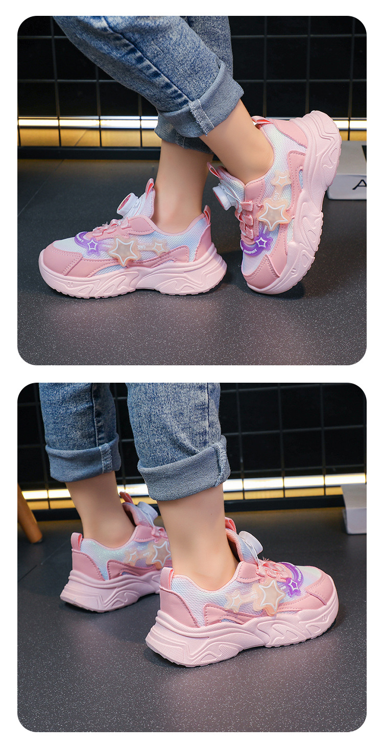 어린이 운동화 2024 봄과 가을 새로운 소녀 빛나는 빛 회전 버튼 토레 신발 어린 소녀 달리기 신발스토어 가기