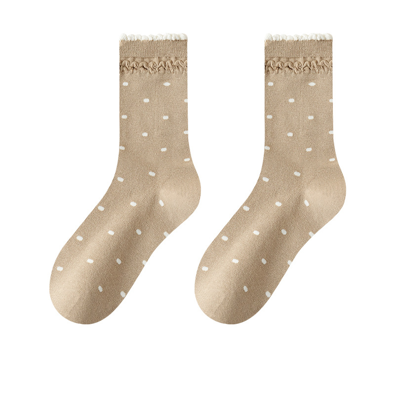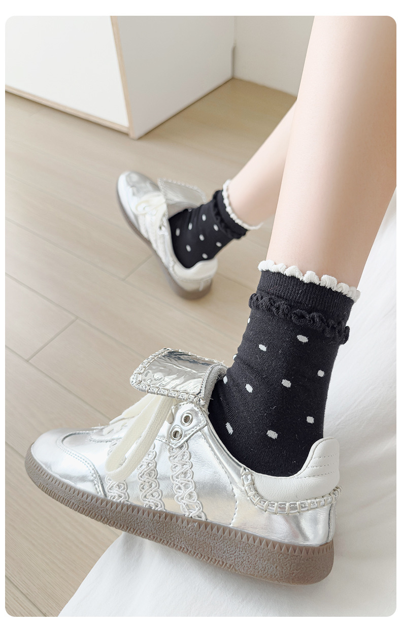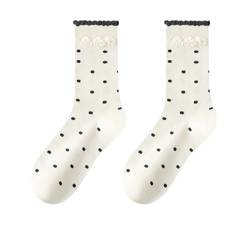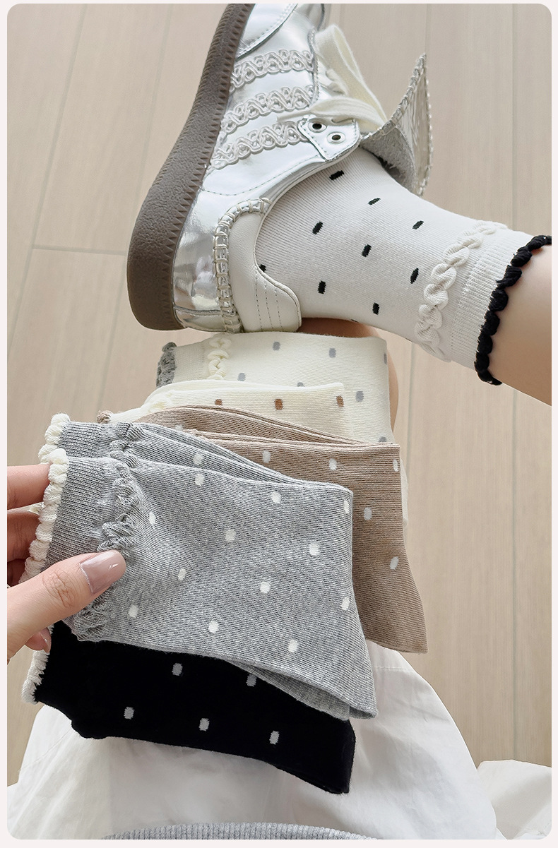 가을 새로운 레이스 양말 어린이 봄과 가을 중간 길이 양말 귀여운 일본 웨이브 도트는 양말 학생 양말 여성 면 양말