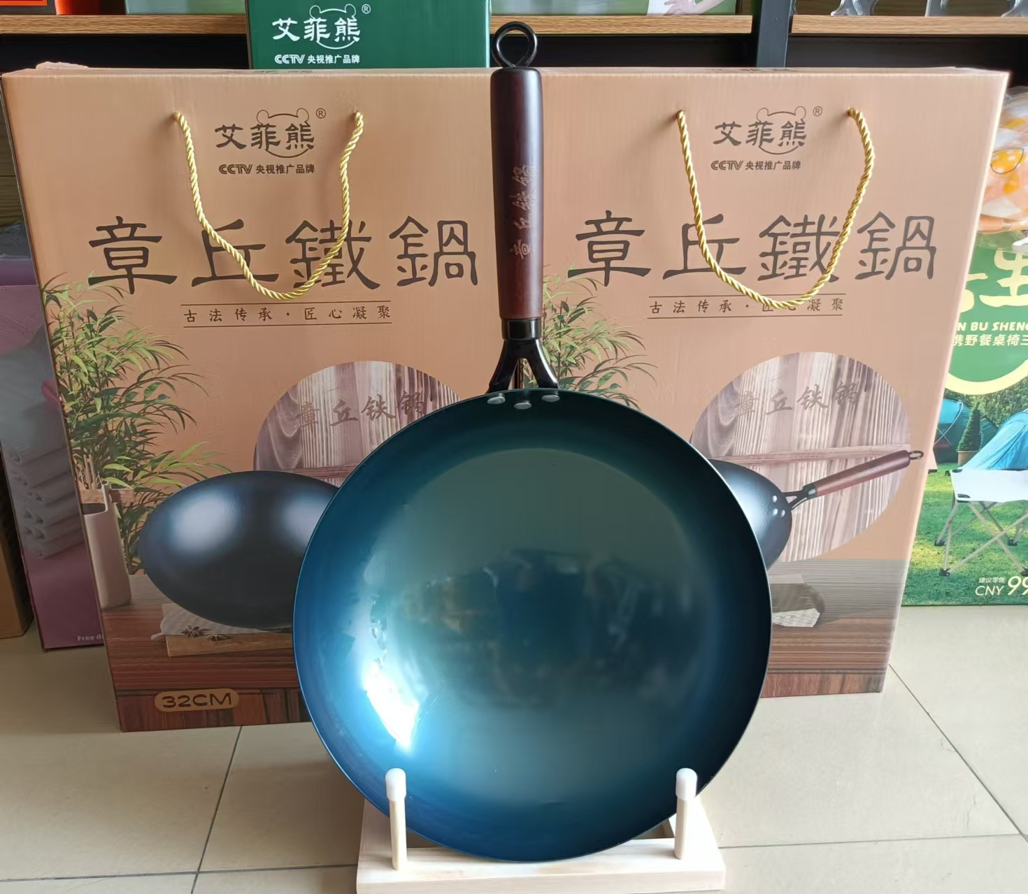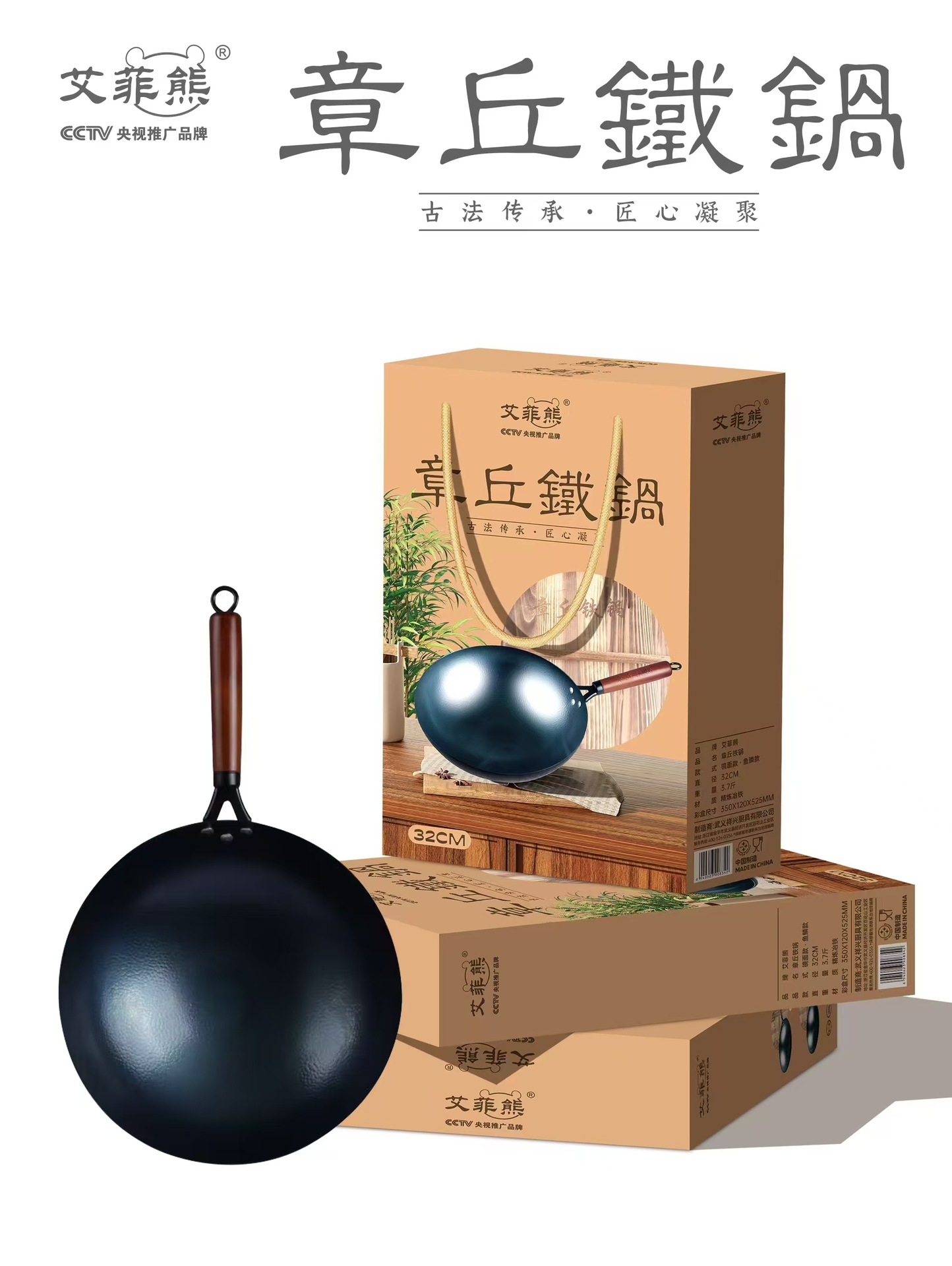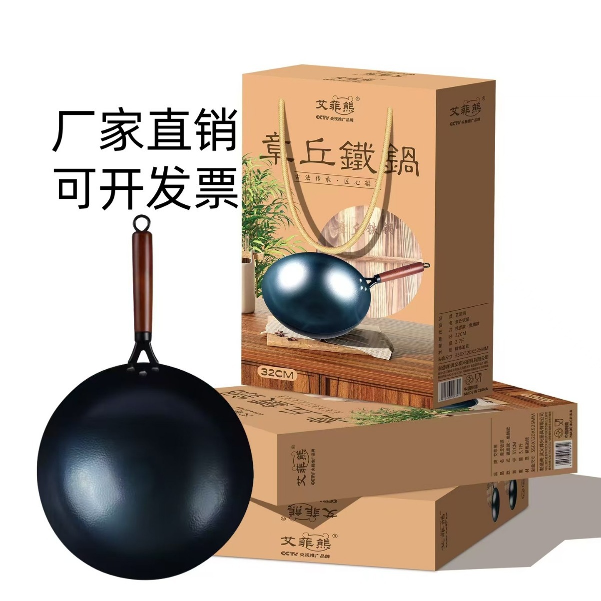 Zhangqiu Iron Pot Effie Bear 손으로 위조 된 Wok 위조되지 않은 가정용 라운드 하단 Smoothing 생선 비늘 건강한 단철