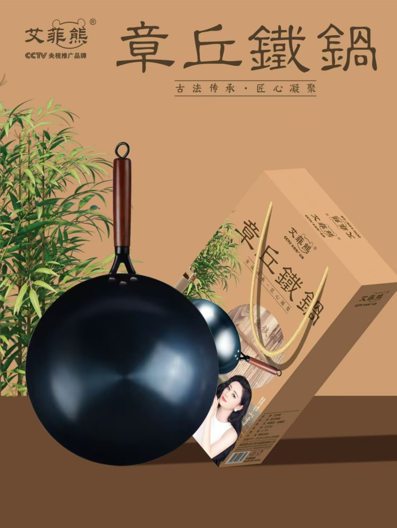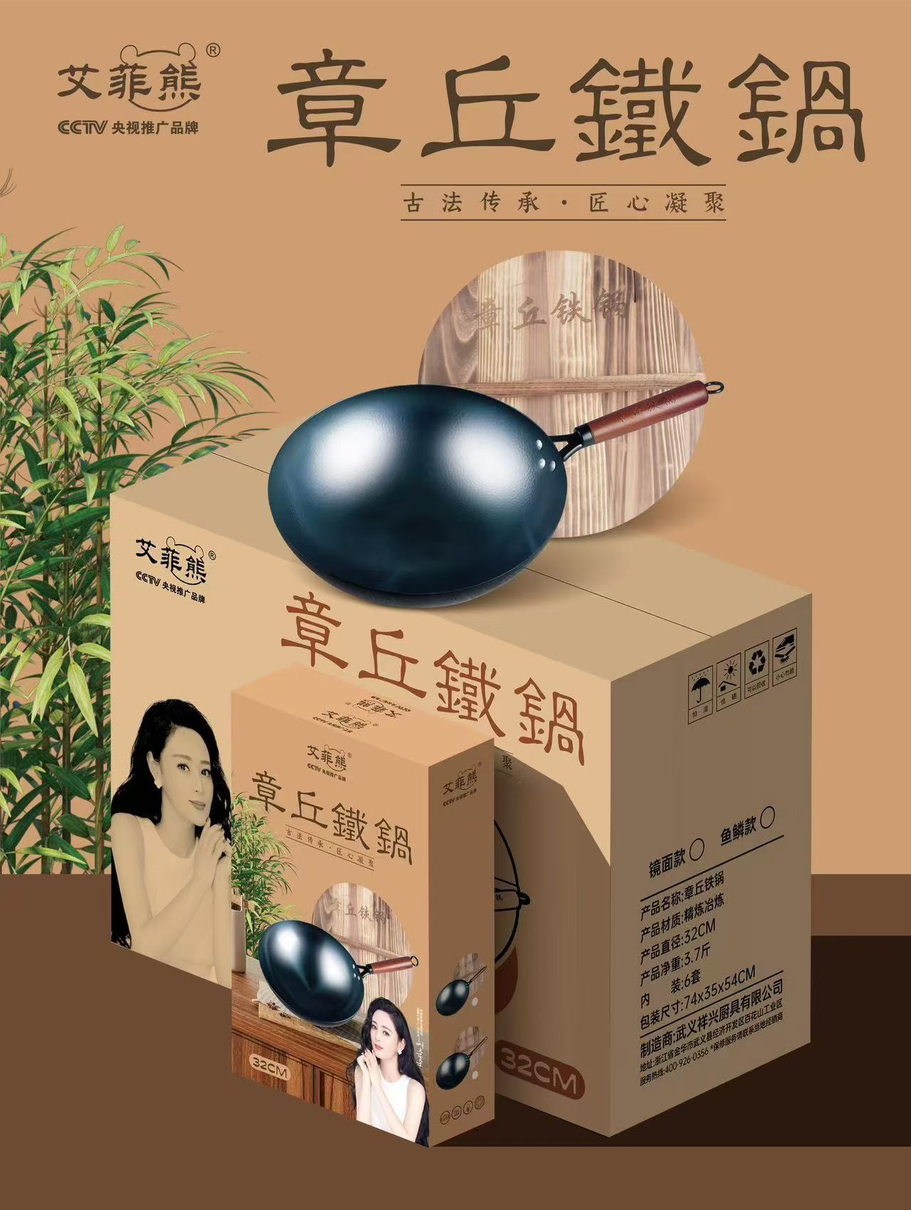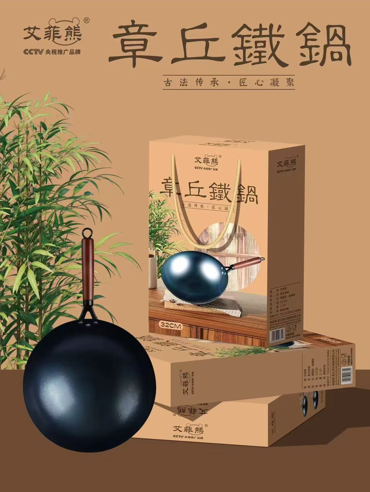Zhangqiu Iron Pot Effie Bear 손으로 위조 된 Wok 위조되지 않은 가정용 라운드 하단 Smoothing 생선 비늘 건강한 단철
