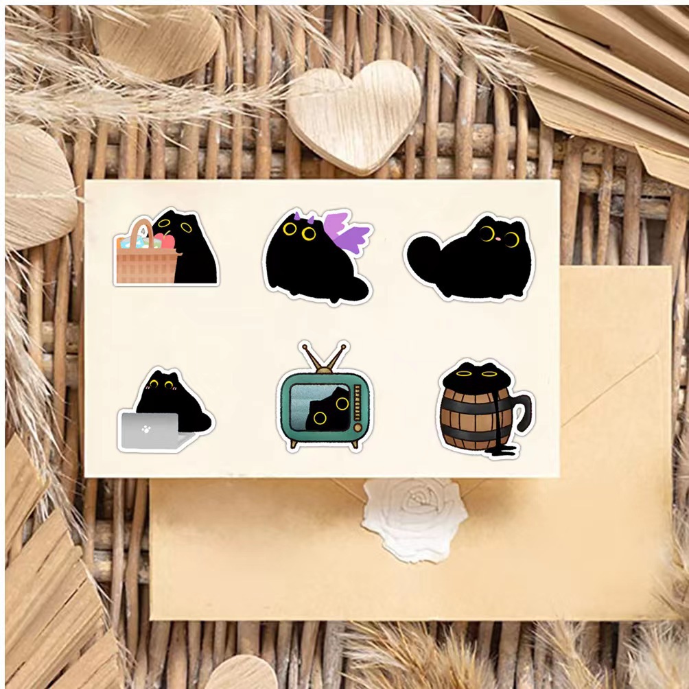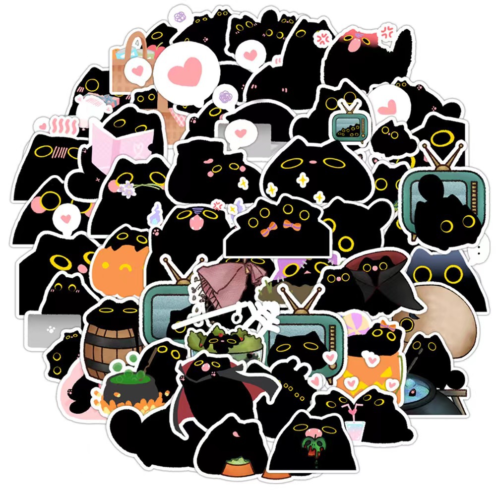 50 귀여운 작은 검은 고양이 고양이 새로운 스티커 방수 문구 노트북 컵 창조적 인 스티커 도매 국경