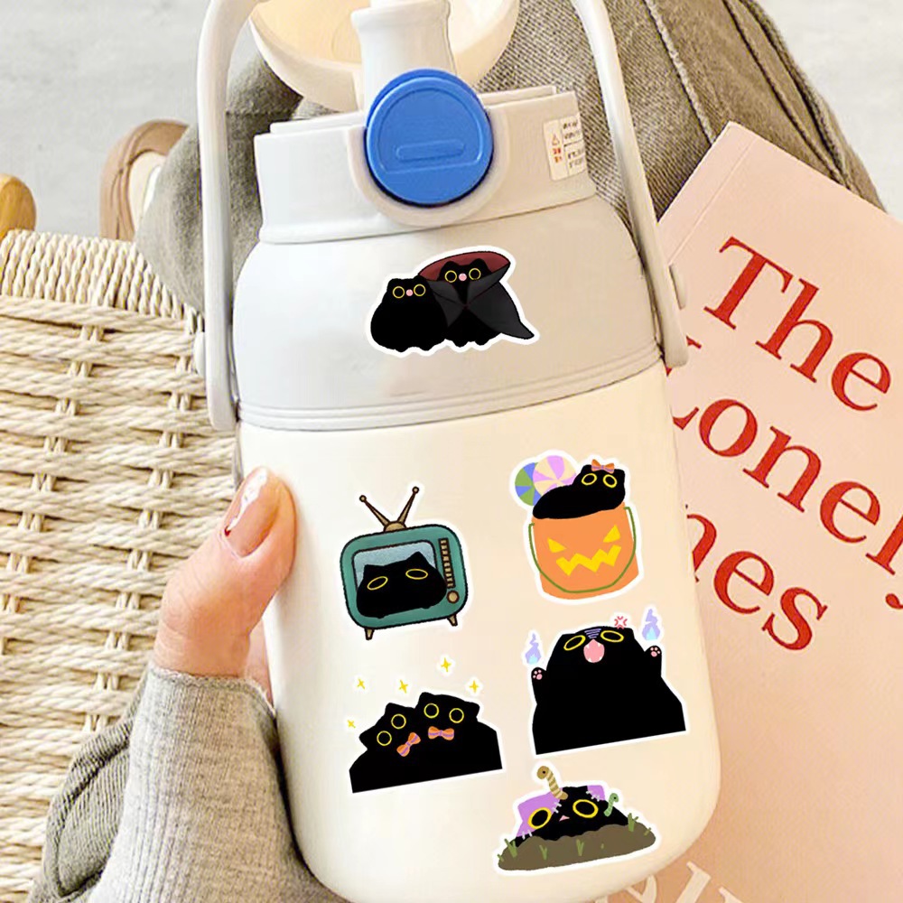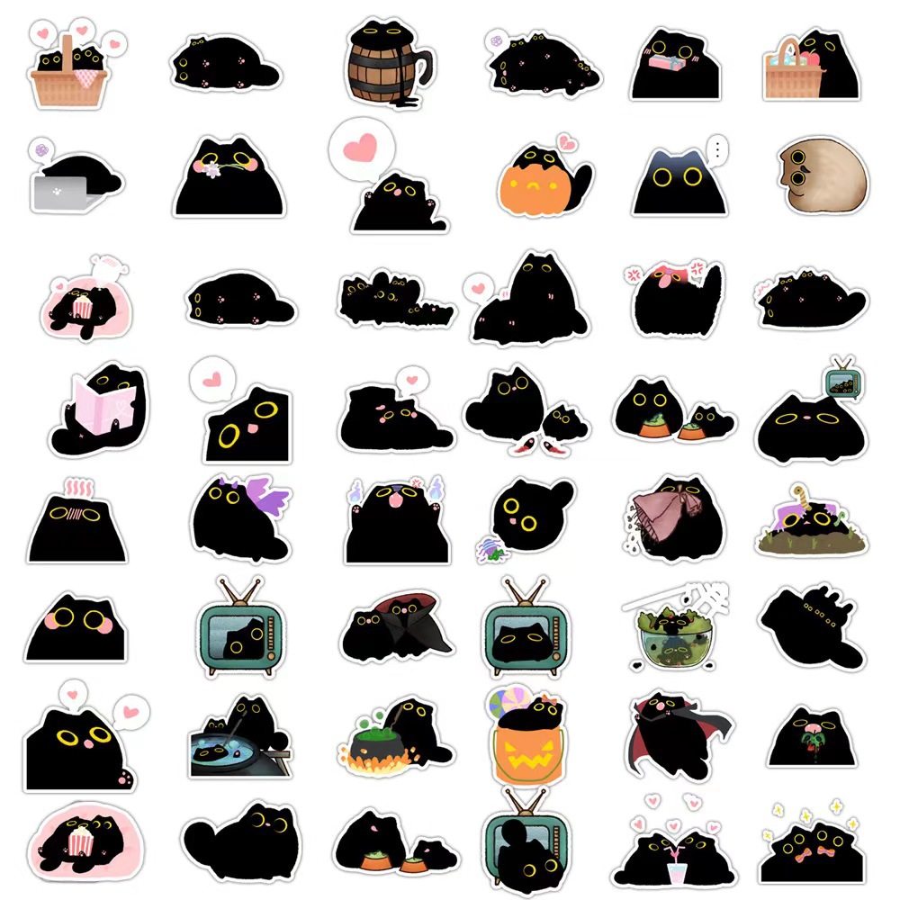 50 귀여운 작은 검은 고양이 고양이 새로운 스티커 방수 문구 노트북 컵 창조적 인 스티커 도매 국경스토어 가기