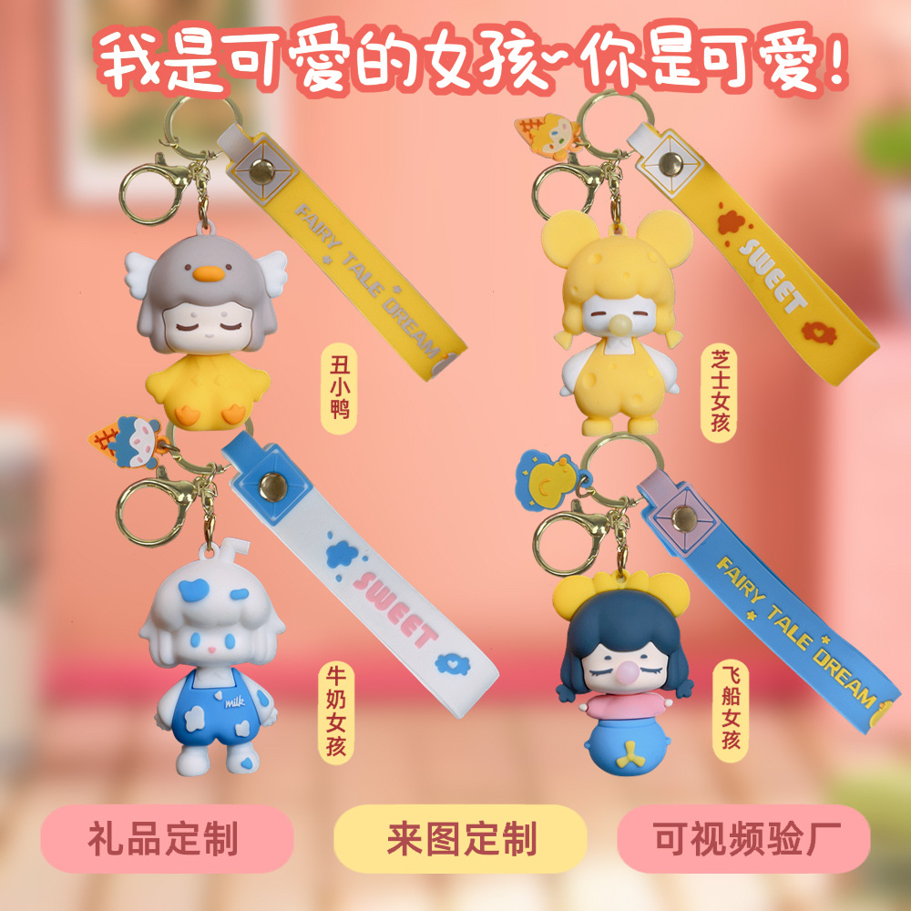 진짜 창조적 인 달콤한 귀여운 소녀 키 체인 도매 귀여운 만화 인터넷 인기있는 패션 가방 펜던트 인형스토어 가기